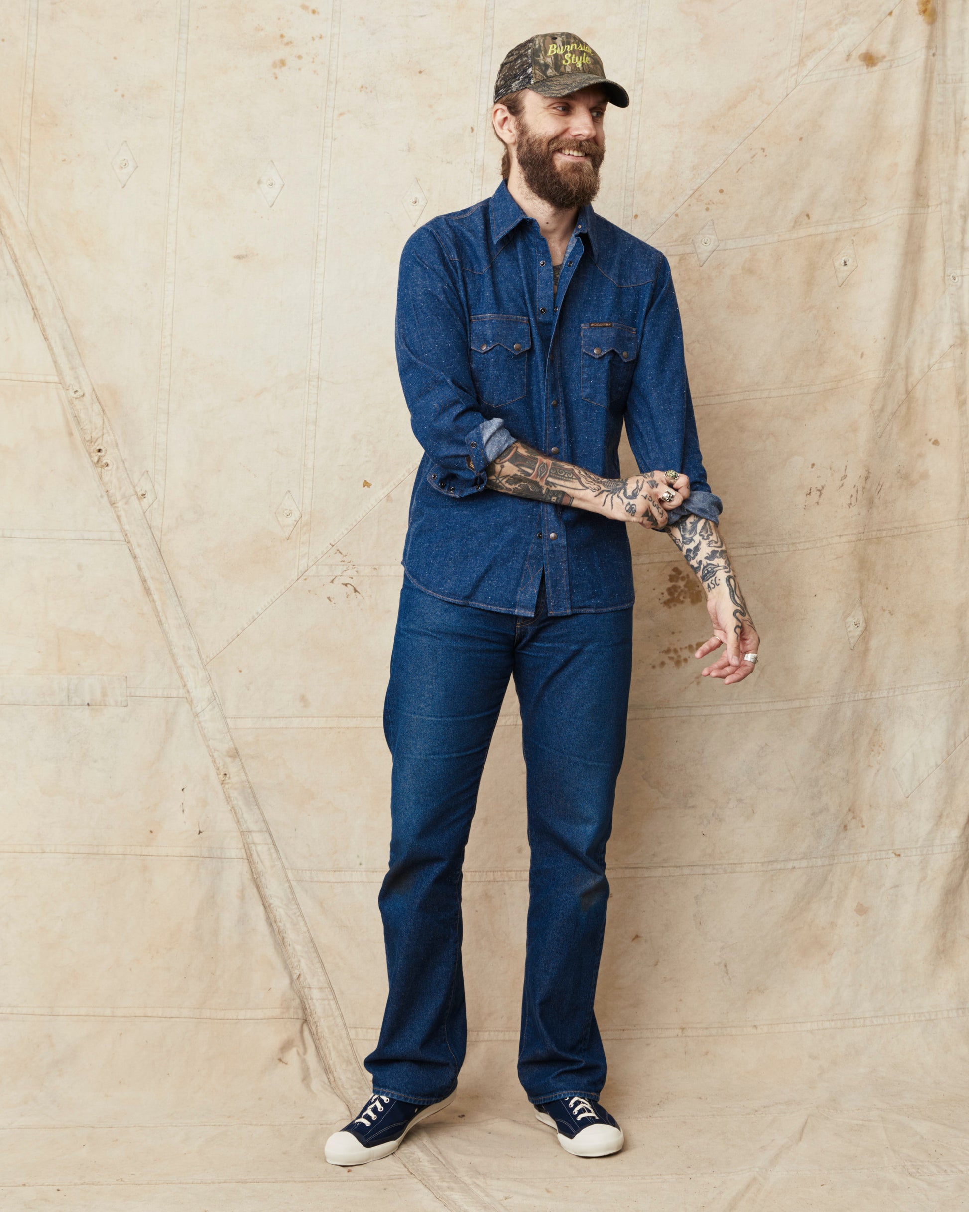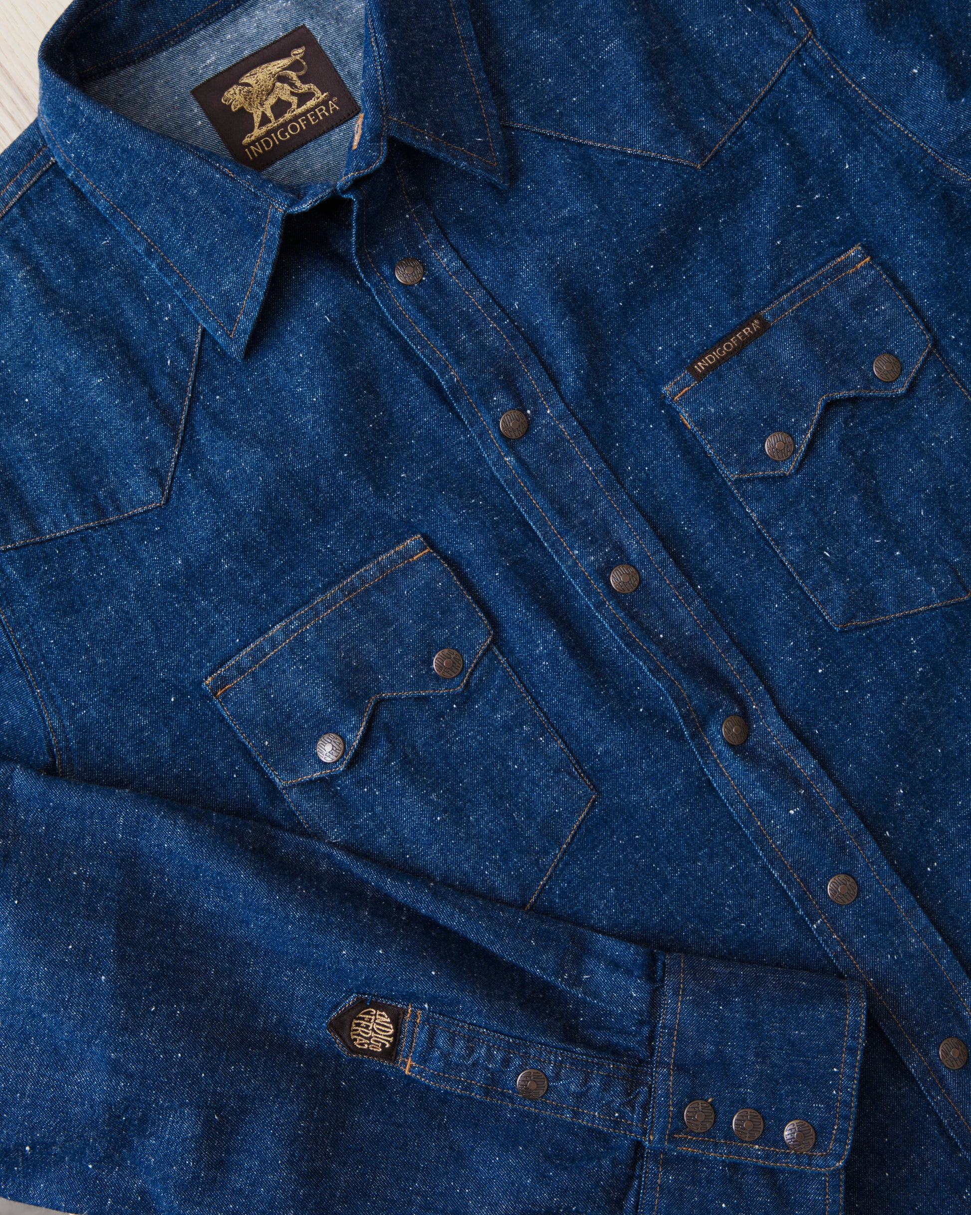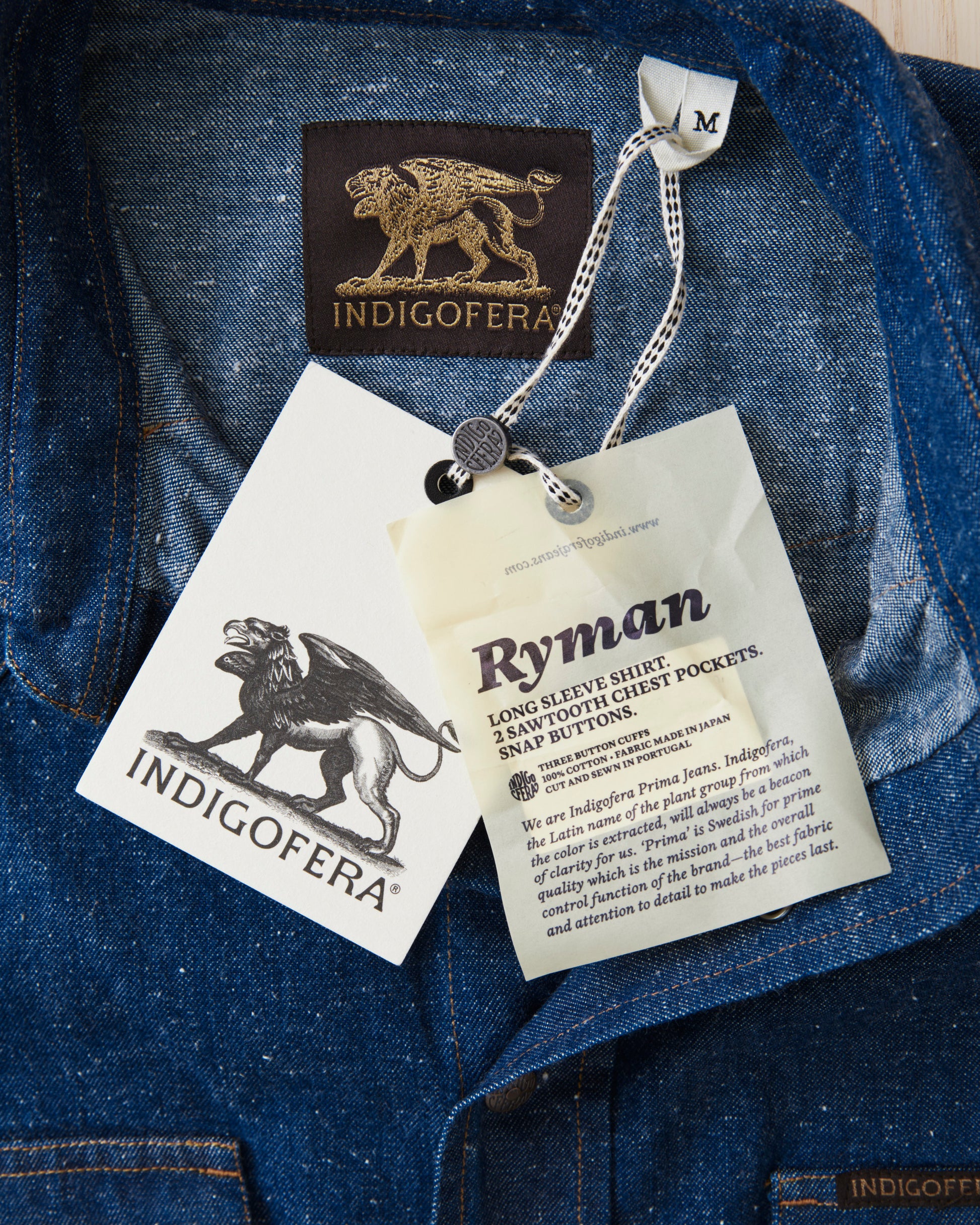 Ryman is a denim shirt made by Indigofera. The fit and the style is inspired by classic western shirts from the middle of the last century, featuring saw-tooth pocket flaps and snap buttons.