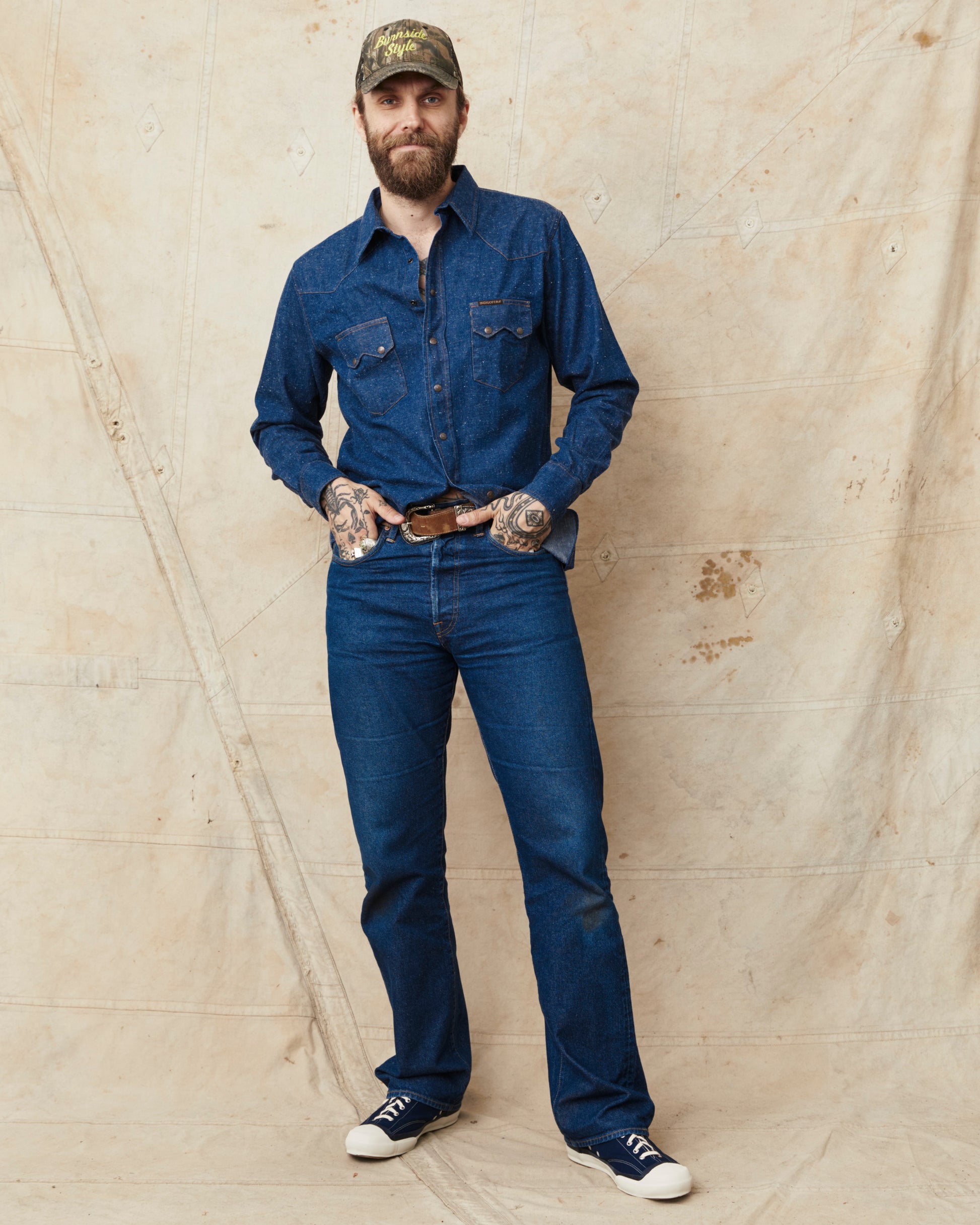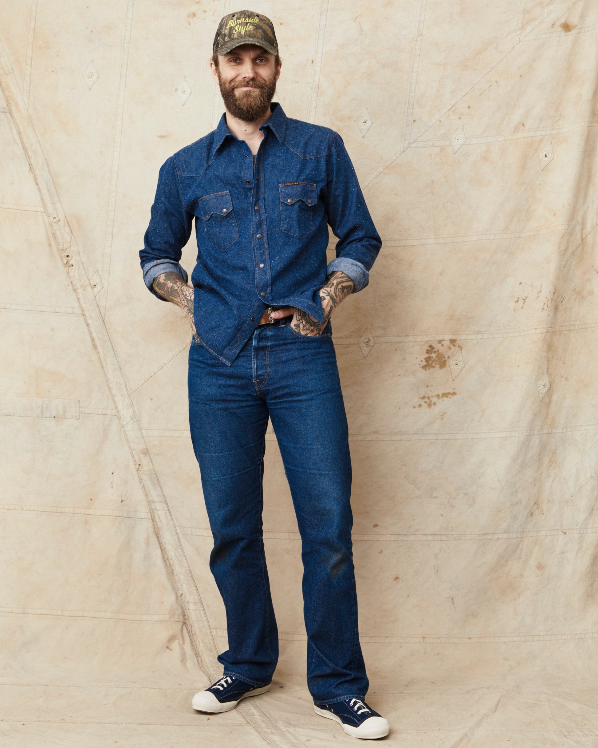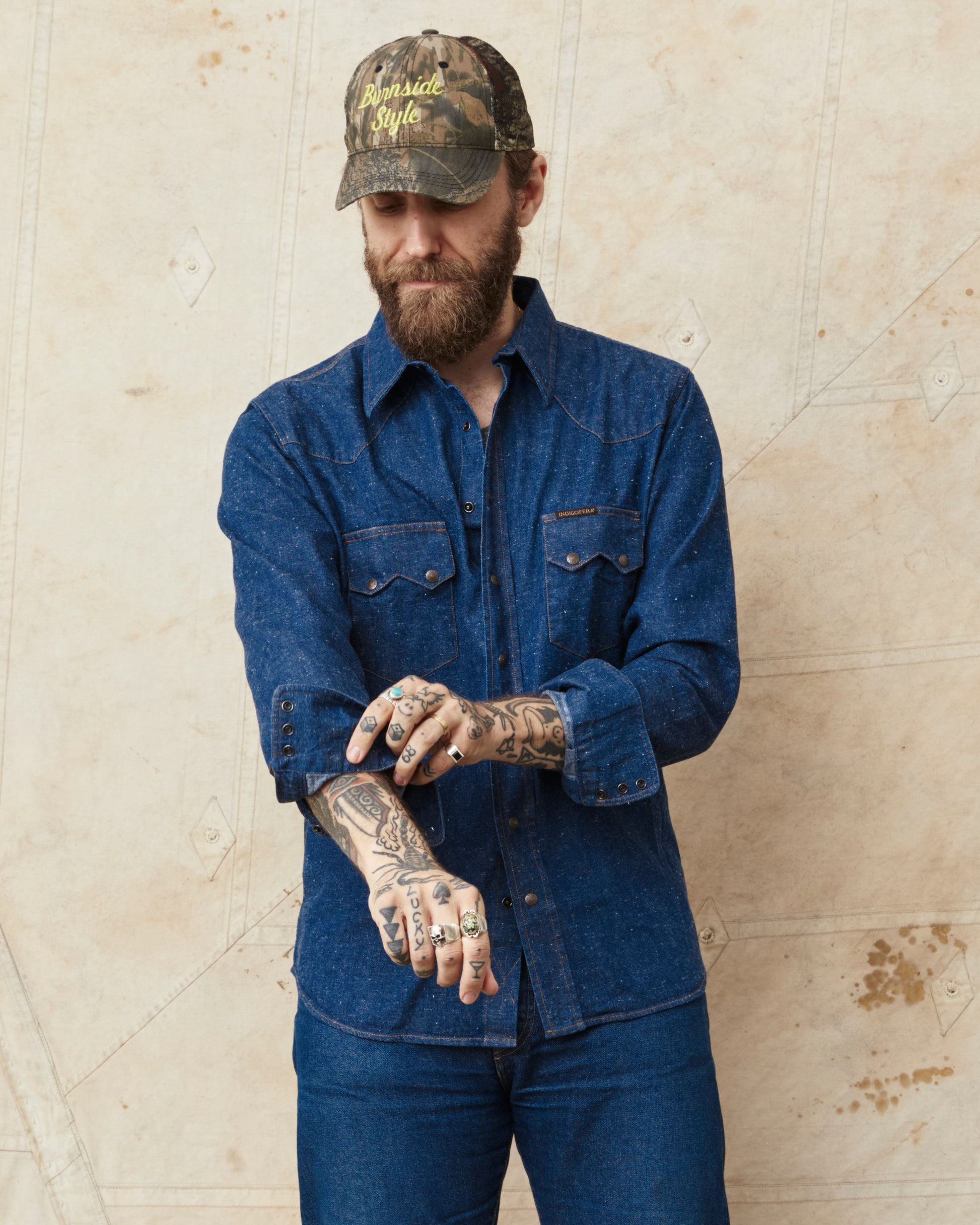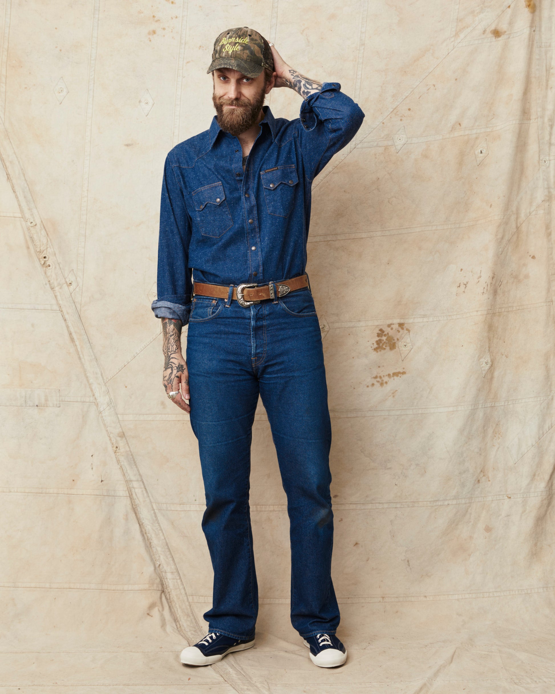 Ryman is a denim shirt made by Indigofera. The fit and the style is inspired by classic western shirts from the middle of the last century, featuring saw-tooth pocket flaps and snap buttons.
