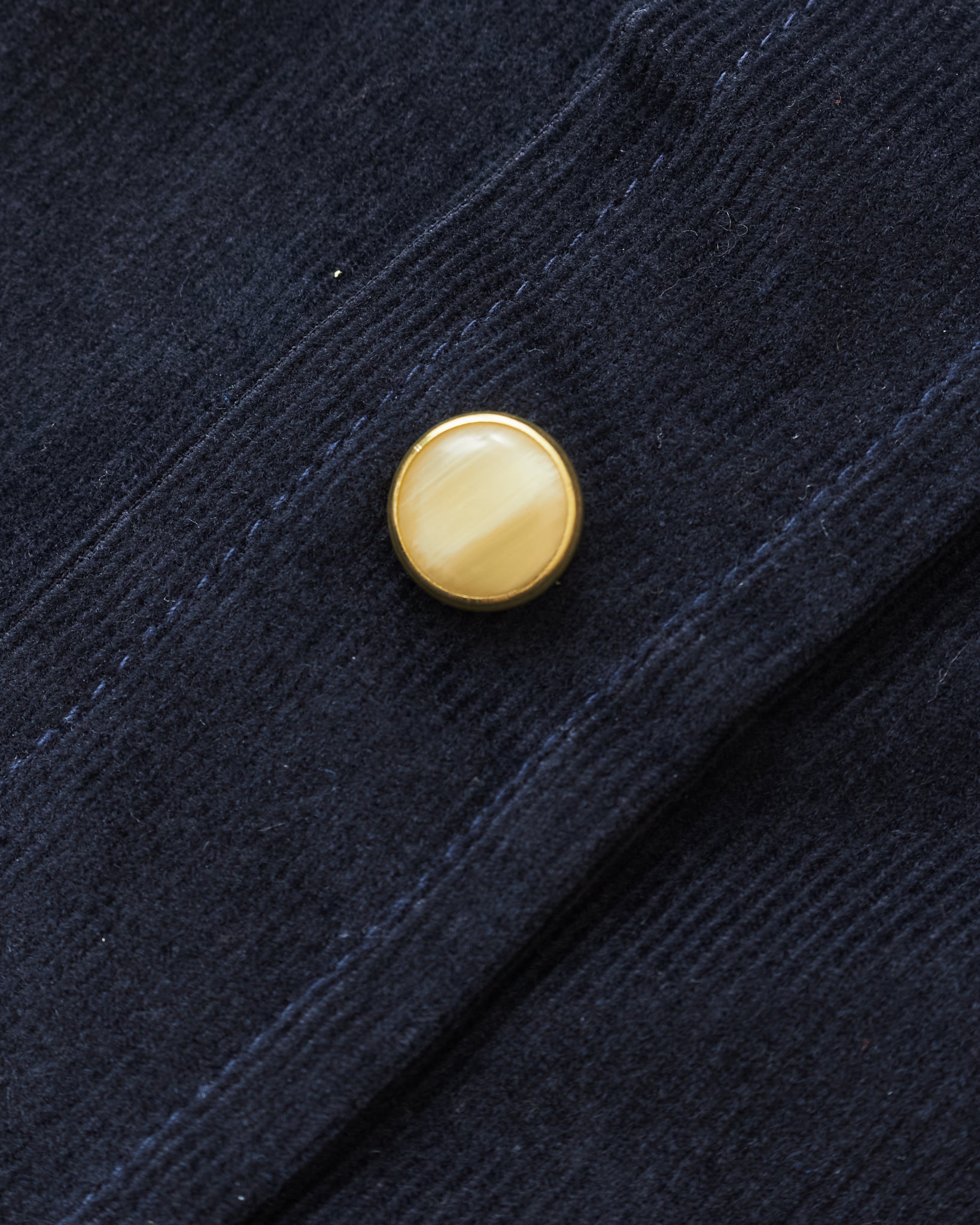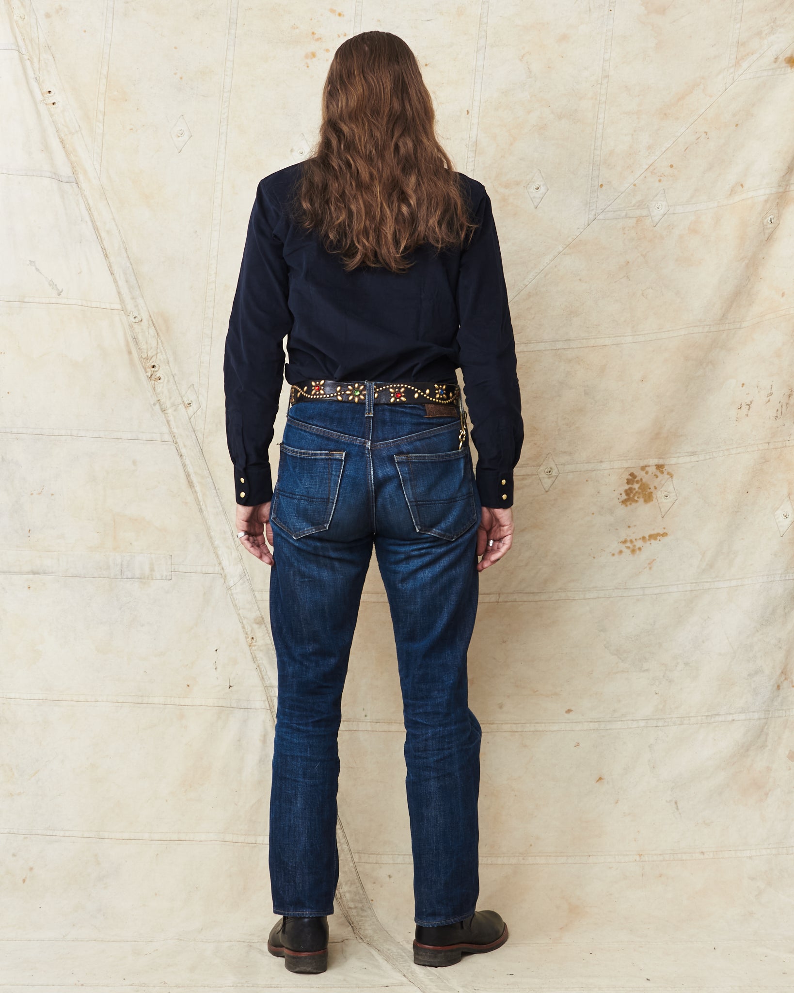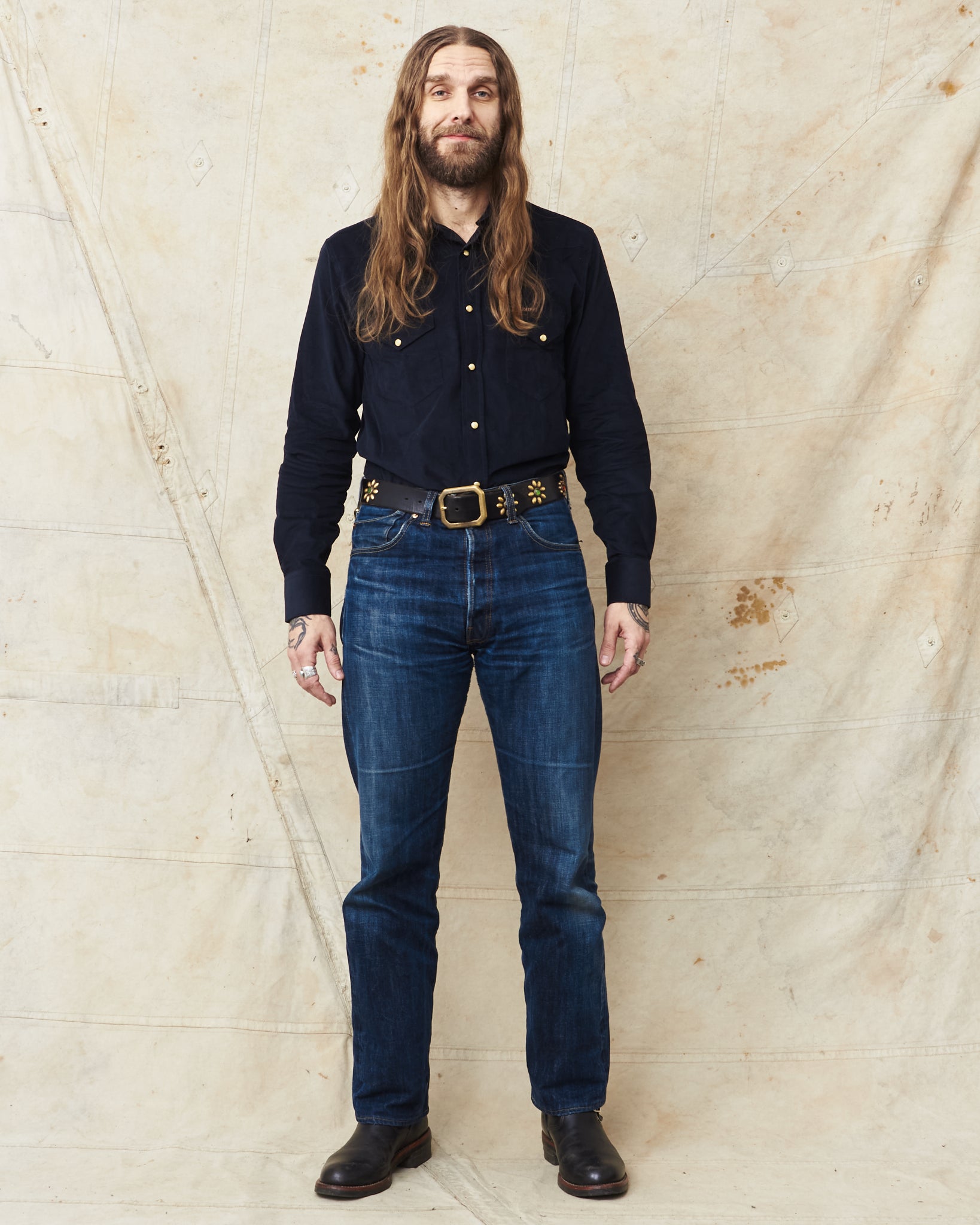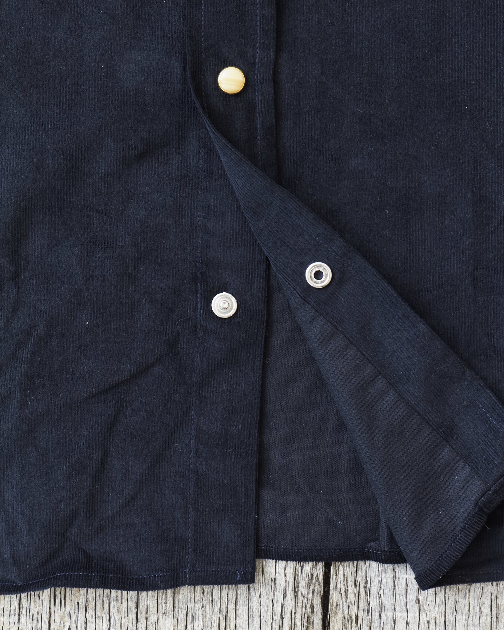 Sideras is a shirt from our friends at Indigofera. It´s truly a good looking western shirt with all the good details, western yoke, pearl snap buttons & a great look. This one is made out of a fine corduroy in a quite thin material. Very nice to wear. The fit is normal with a classic long tail, perfect to tuck into your pants. The color is called Navy and it´s a very dark, almost black color.