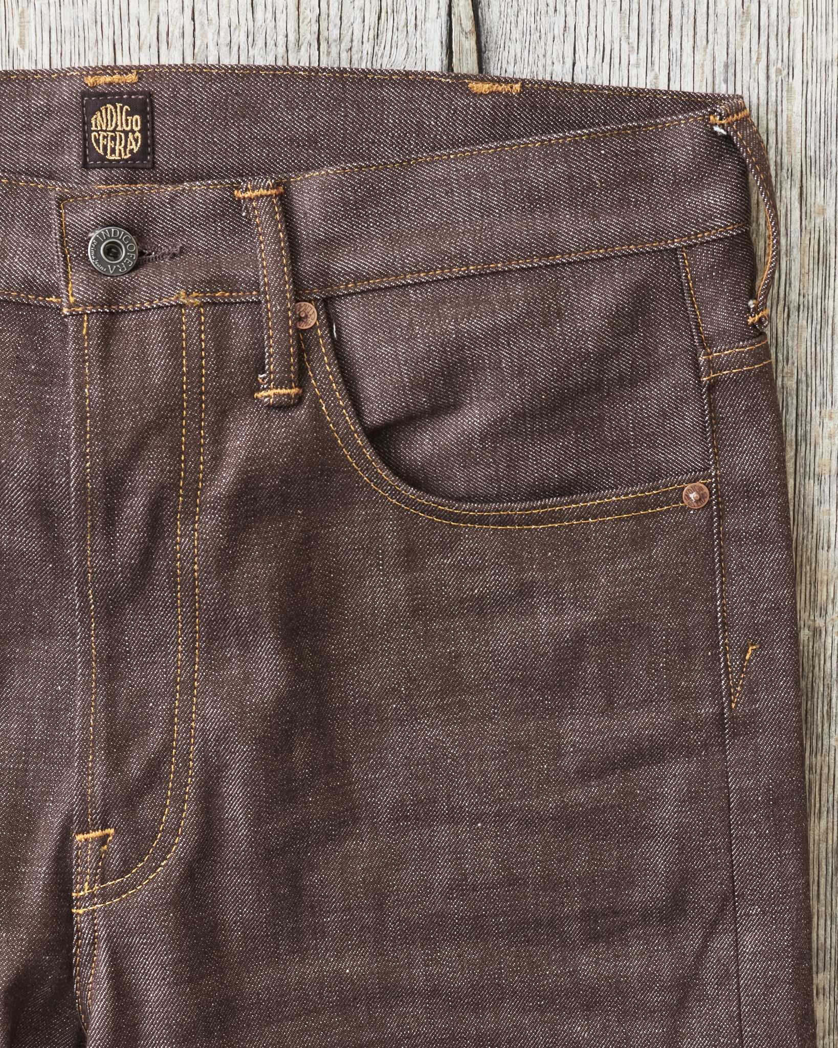 This is a reintroduction of a bootcut model by Indigofera. Wyatt is the predecessor of Hawk and the new version is with a higher waist, triple stitch decoration and a new leather patch on the rear pocket.