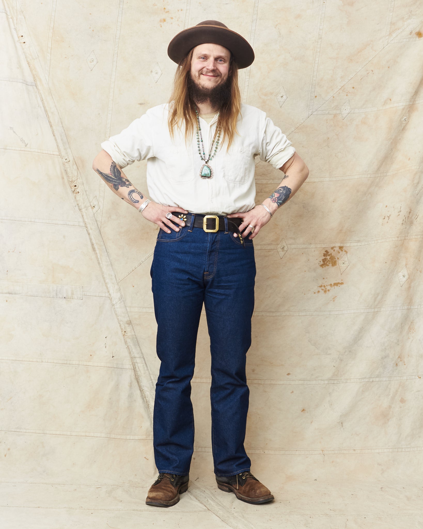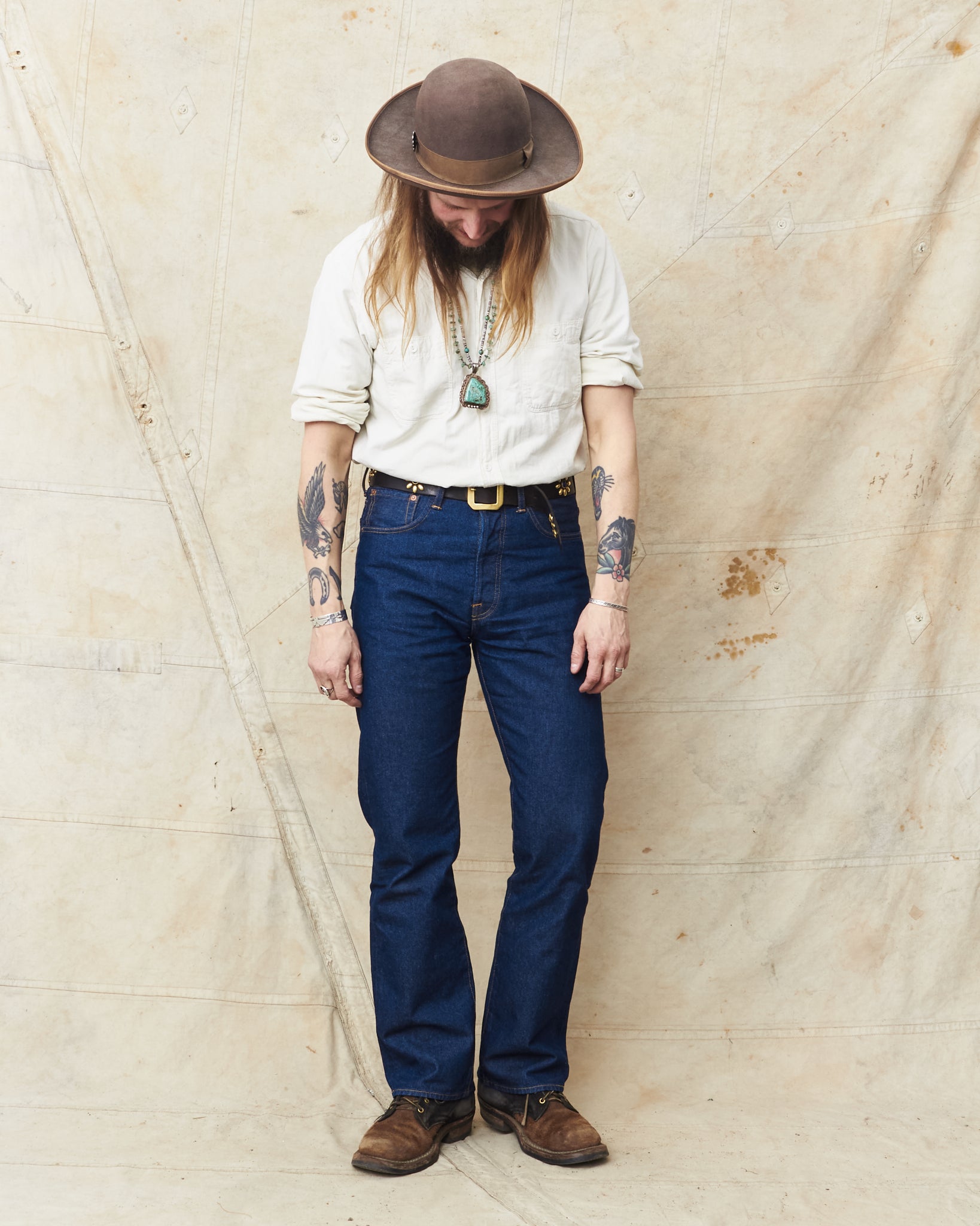 This version of Wyatt is made out of a 14 oz broken twill denim that has been rinsed. Soft to the feel yet rugged to wear! This Wyatt has been slightly updated with a somewhat tilted waist and a higher back pocket placement. A much welcomed update if you ask us!