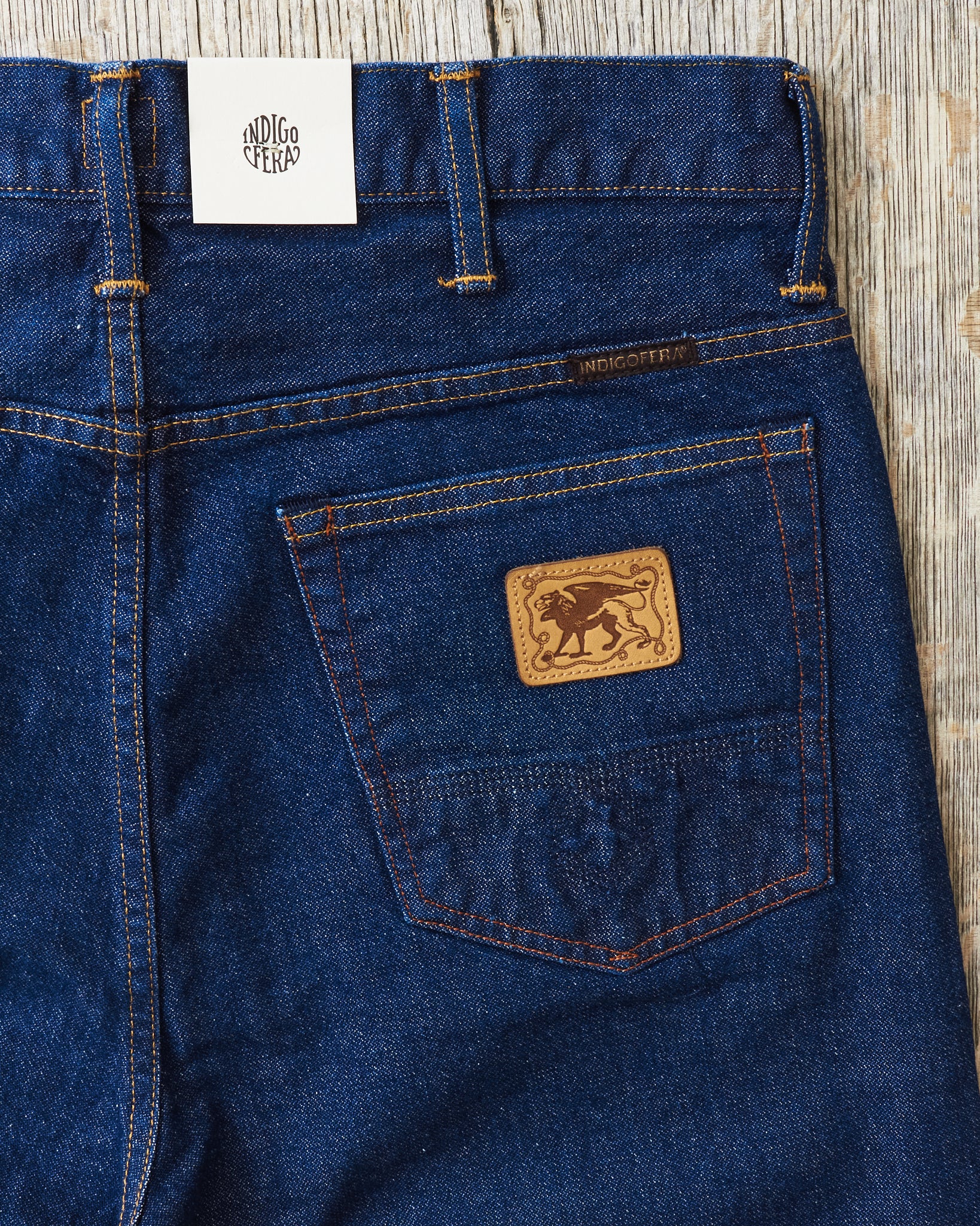 - Leather patch on rear pocket
