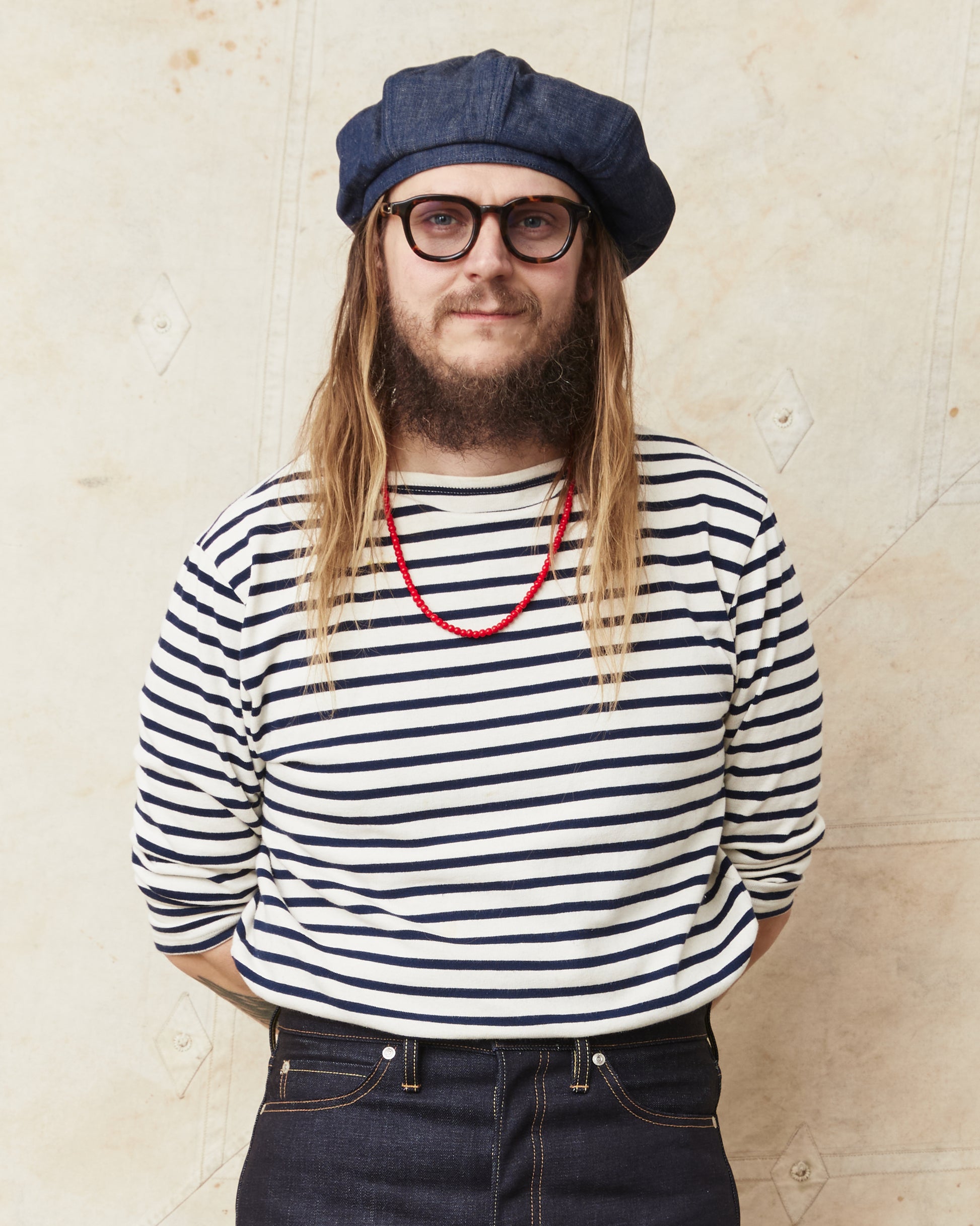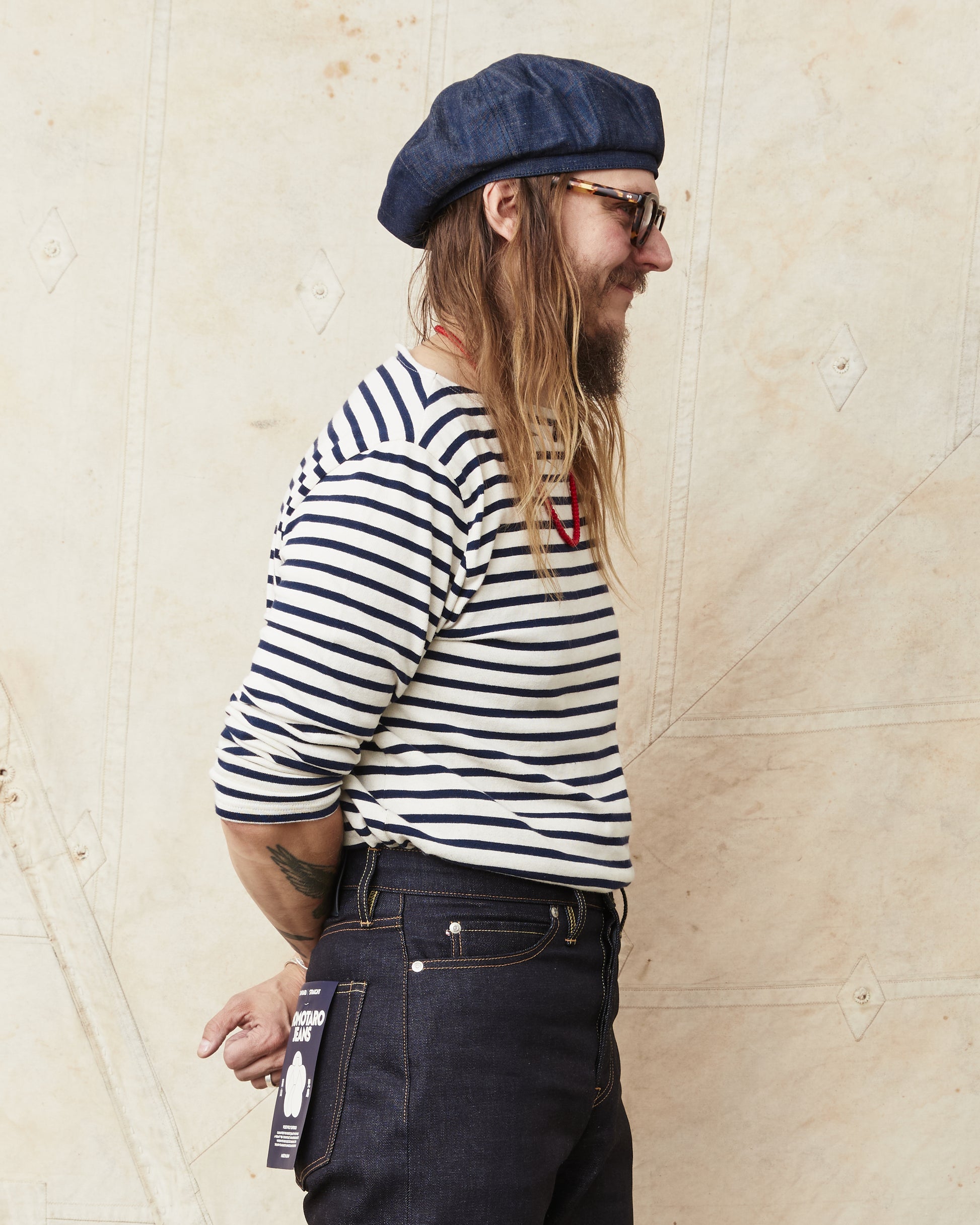 This is a Denim Beret made by Japan Blue. It has a classic beret design and it is made out of a 10oz Military Denim. The weft thread is khaki dyed, giving the fabric a vintage feel.