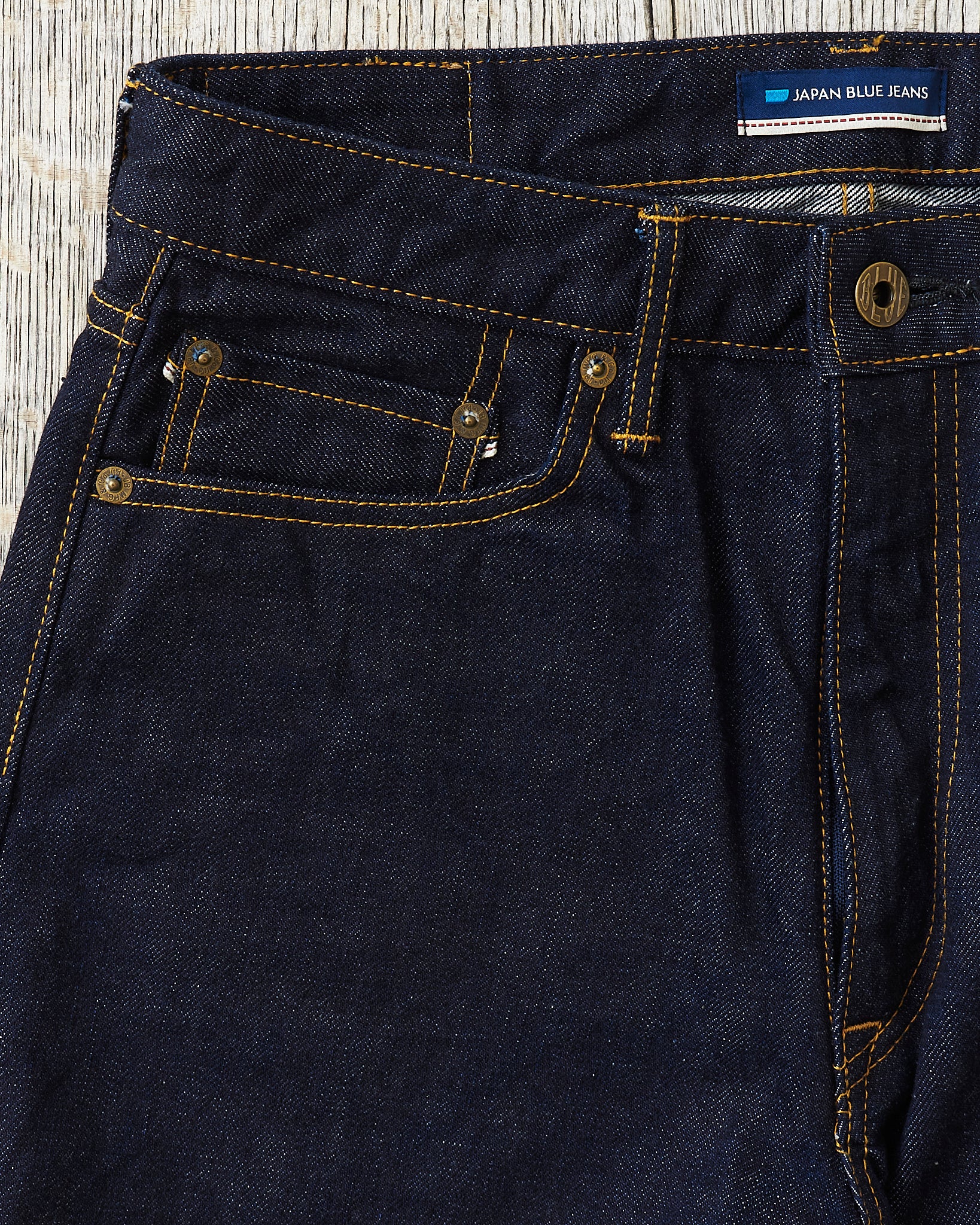 Japan blue's own line of denim is all about the material. These jeans are made from a denim woven in Japan on a vintage shuttle loom using American cotton, resulting in a most wonderful denim fabric fabric. The JBJE1501A fit from Japan Blue has a high rise and a wide straight leg. Comfortable, durable and sharp looking!