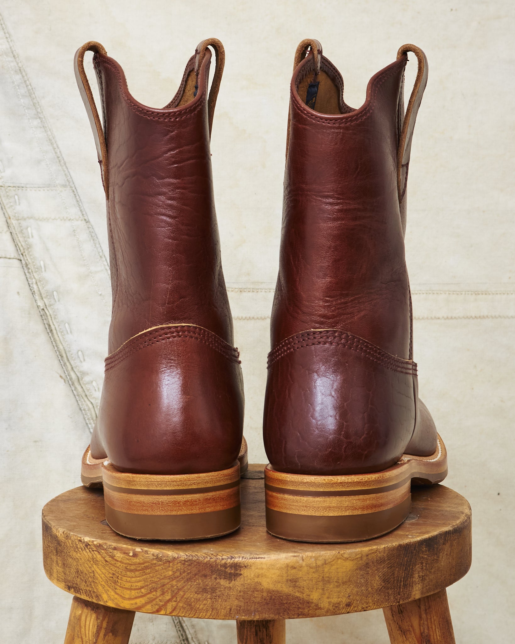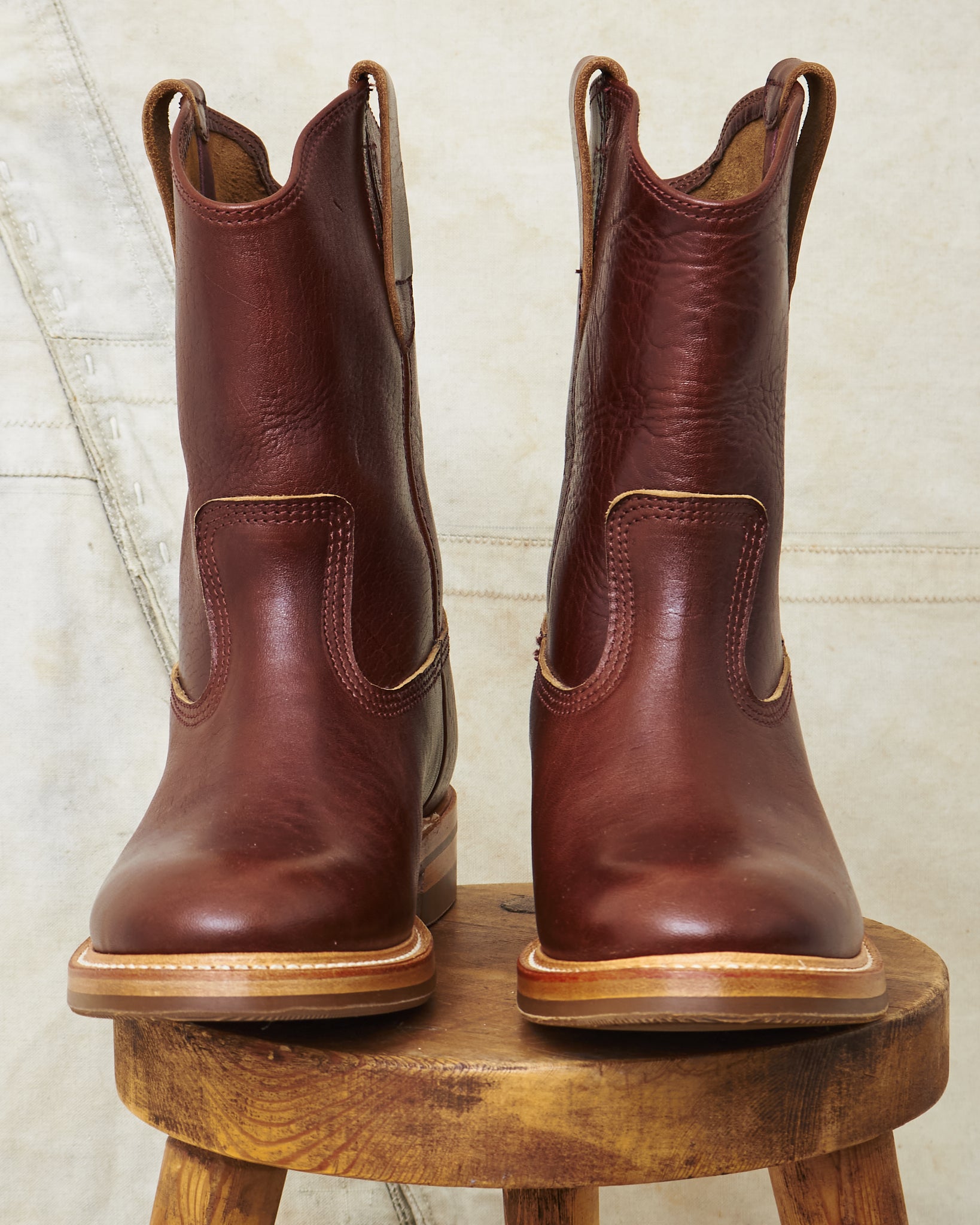 John Lofgren's Duke Roper Boots are inspired by two dukes. One being an American icon and the other one being the duke of Wellington. The latter Duke wore Hessian boots, which were military-issued footwear worn by British troops. The boots were known for having a short heel, pointed toes, tassel decorated tops, and for their ease of getting in and out of stirrups. The Duke of Wellington commissioned a shoemaker to modify his personal Hessian boots to create a boot with a one inch heel and a mid-calf shaft. Those boots are thought to be directly linked to modern day ropers. And like so many things in fashion, the origins are of course, military.