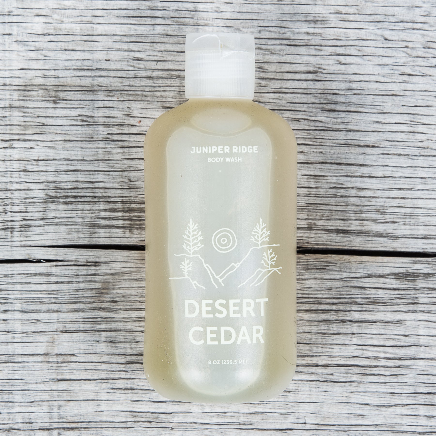 - Juniper Ridge Organic Body Wash Desert Cedar 8oz- Ingredients- Organic coconut- Sunflower seed oil- Vegetable glycerin- Distilled essential oils- Rosemary flower extract- 236,5 ml- Made in USA