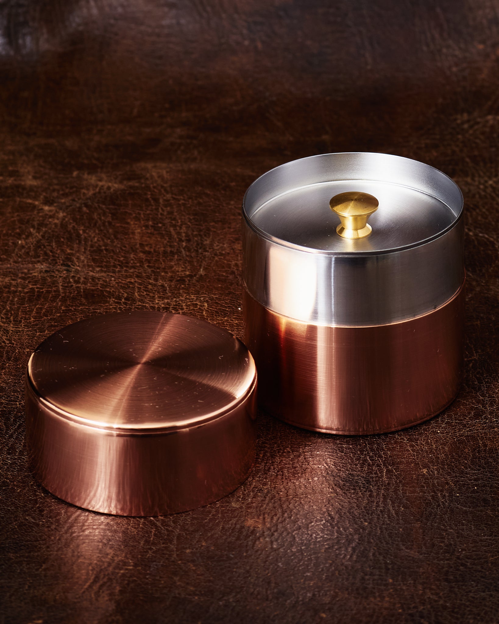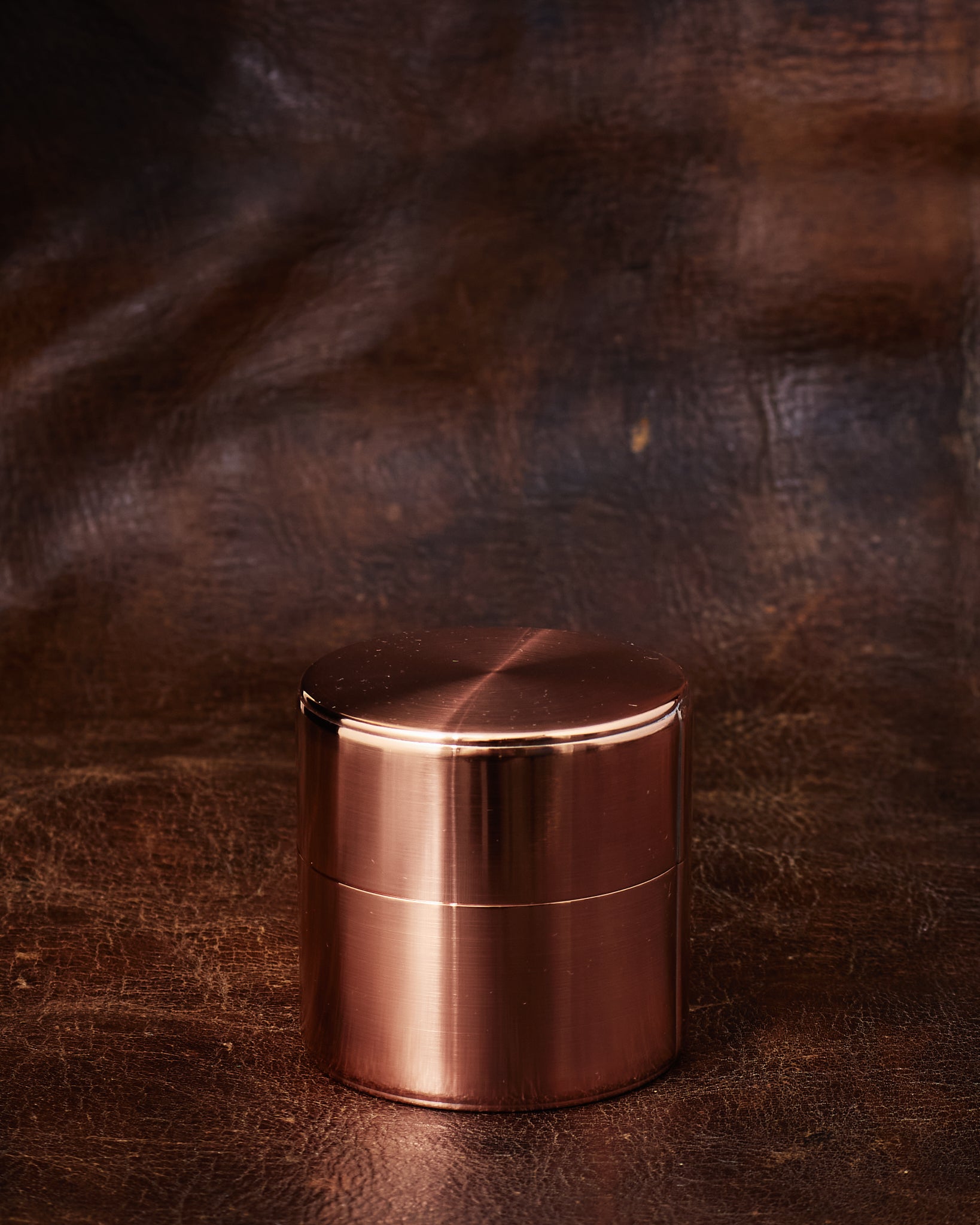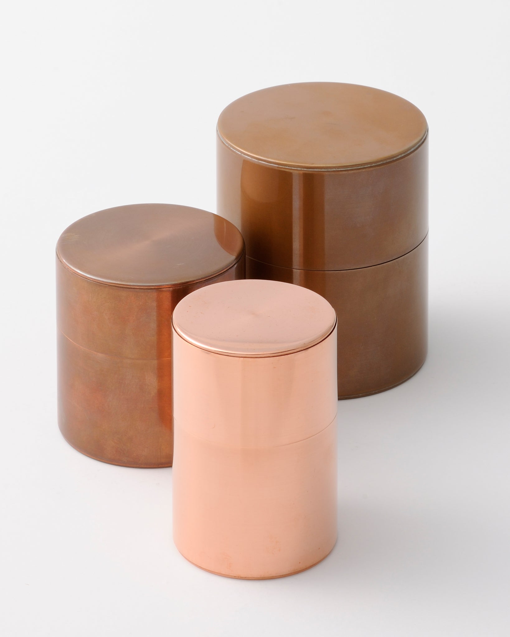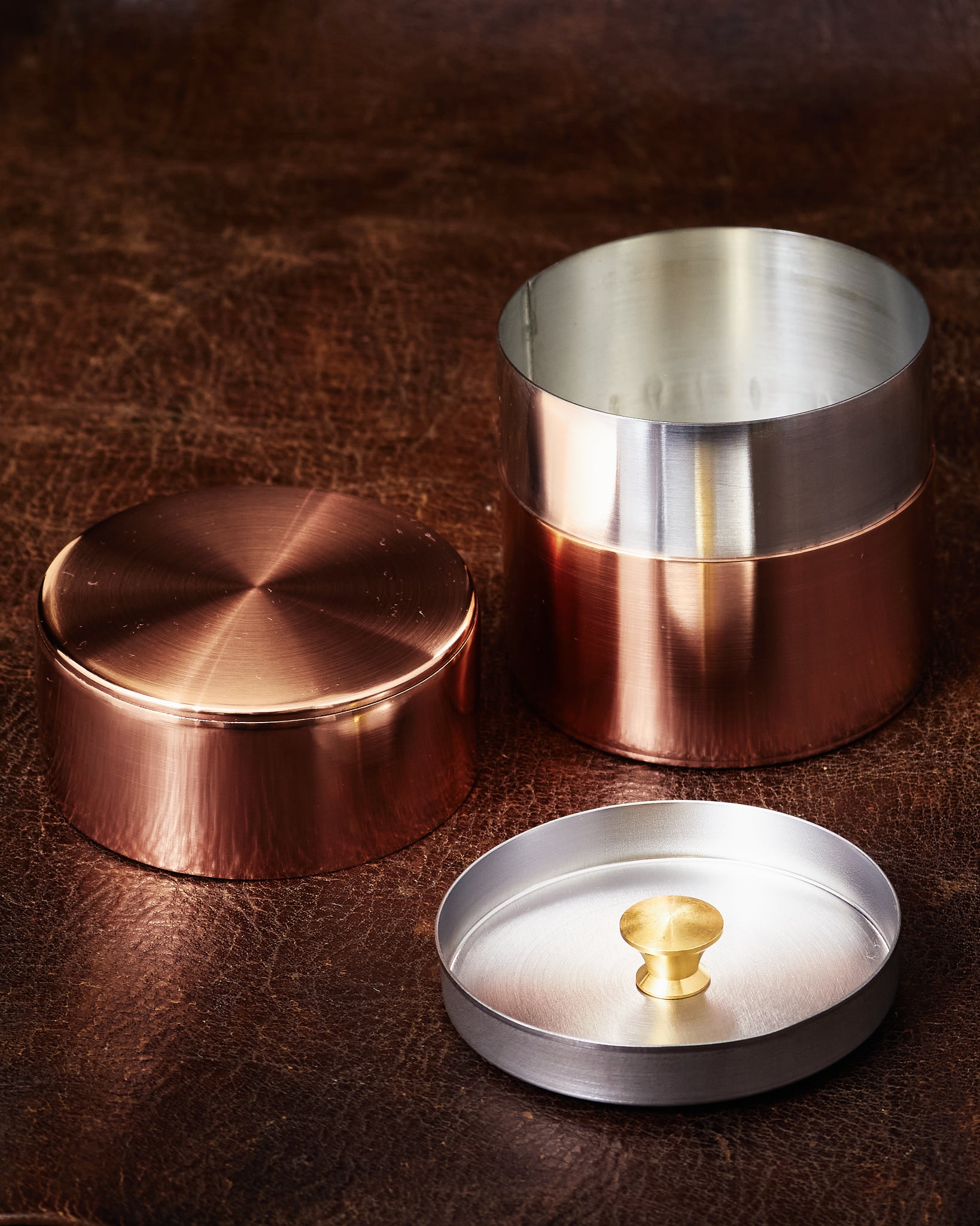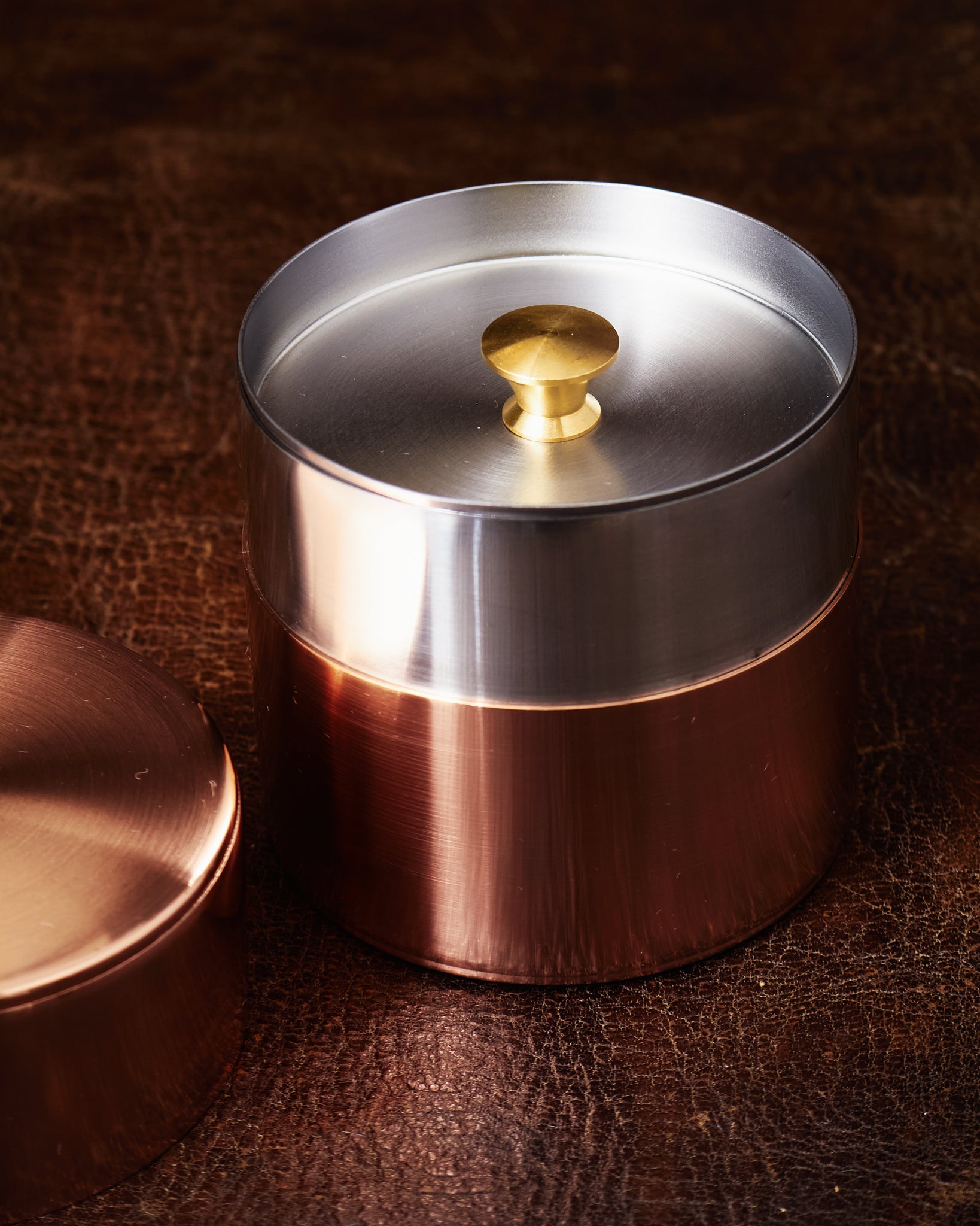 Based on the design from 1875, the Kaikado Tea Caddies have stood the test of time. The materials are chosen for their aging qualities and watching the metal change color over the years as the caddy is used is considered a great joy. The everyday use of the caddy leaves traces on its surface and tells the tale of your everyday life.