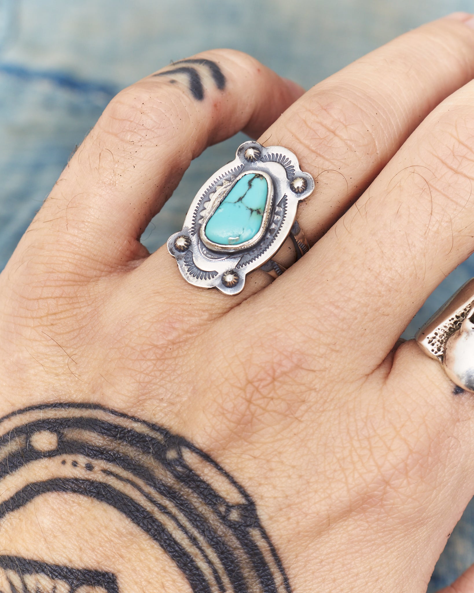- Larry Smith 4 Point Turquoise Ring RG-0065