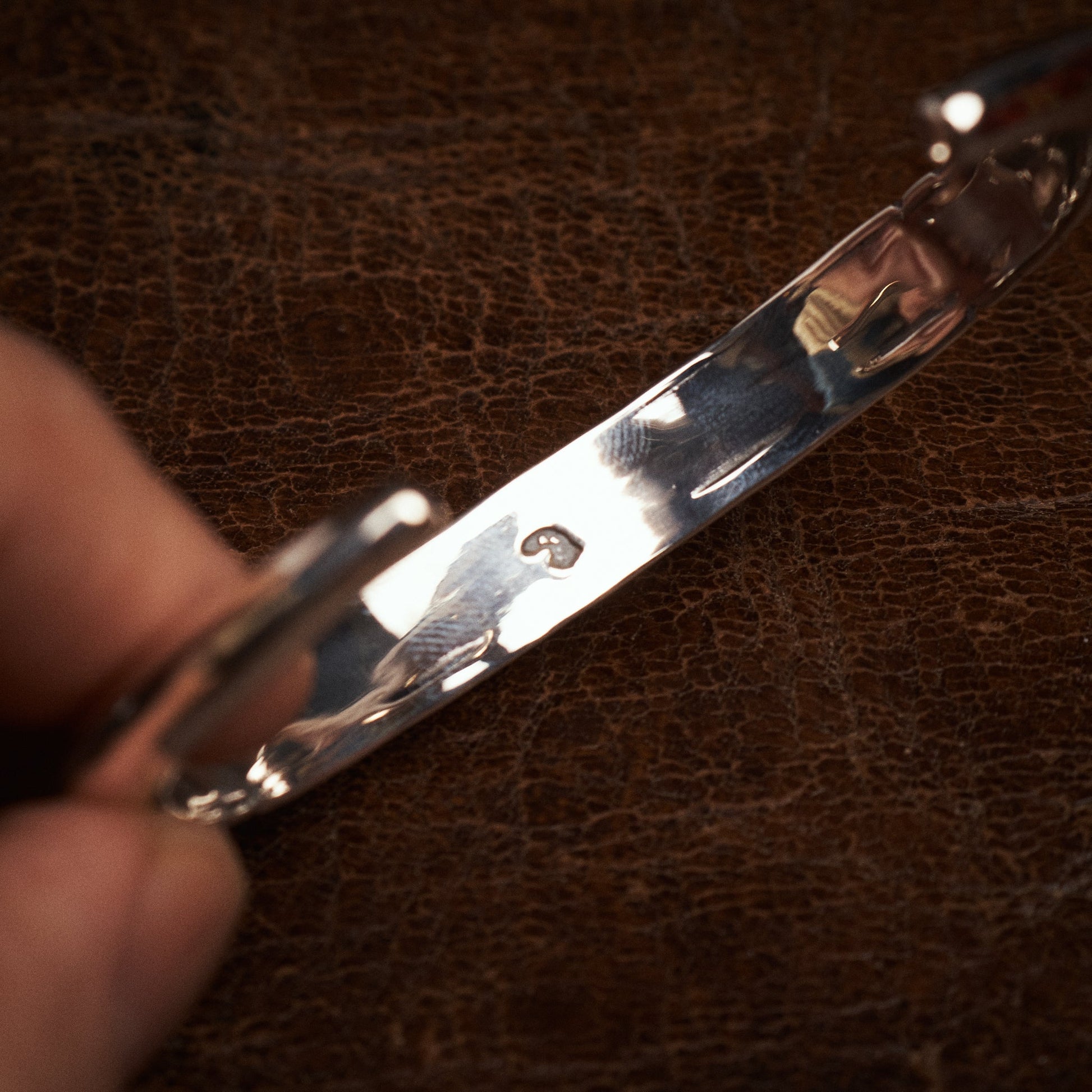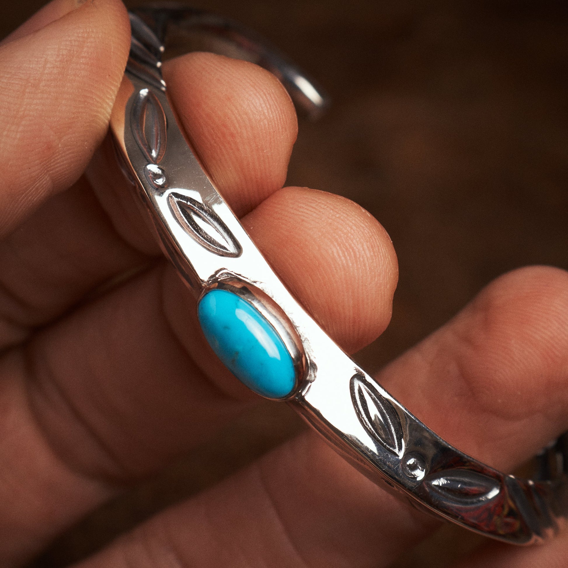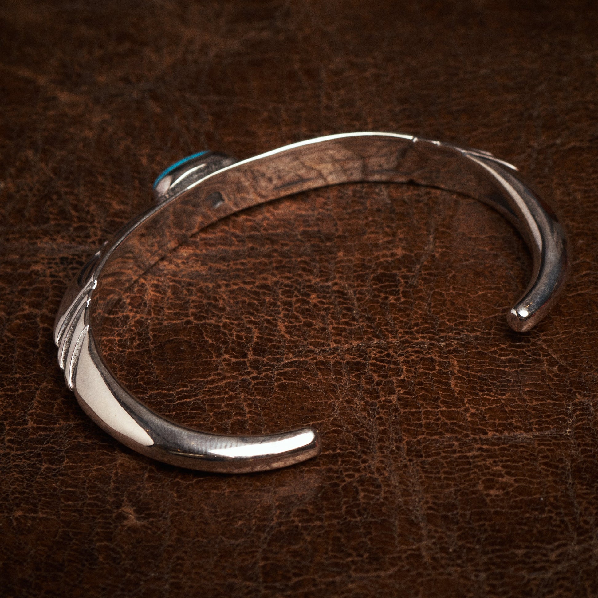 This silver bracelet is all handmade made by Larry Smith in Japan. Inspired by Native American jewelry from the so called Fred Harvey era dating back to the early 20th century. This thin bracelet looks great worn as it is or combined with other bracelets around you wrist.