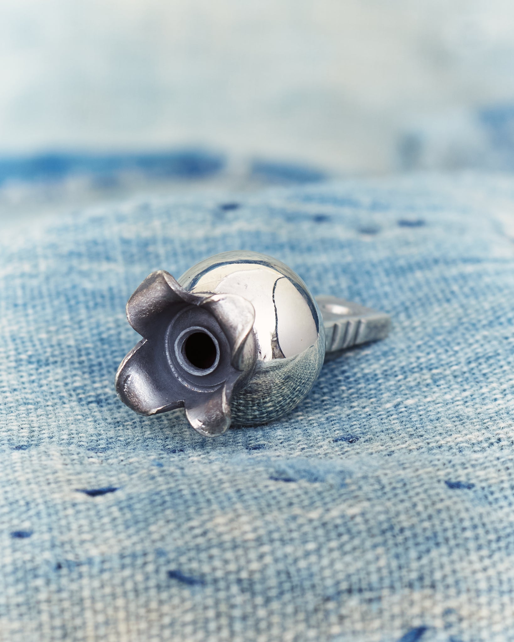 A Squash Blossom made by hand in Japan by Larry Smith. Inspired by Native American jewelry from the so called "Fred Harvey era" dating back to the early 20th century.