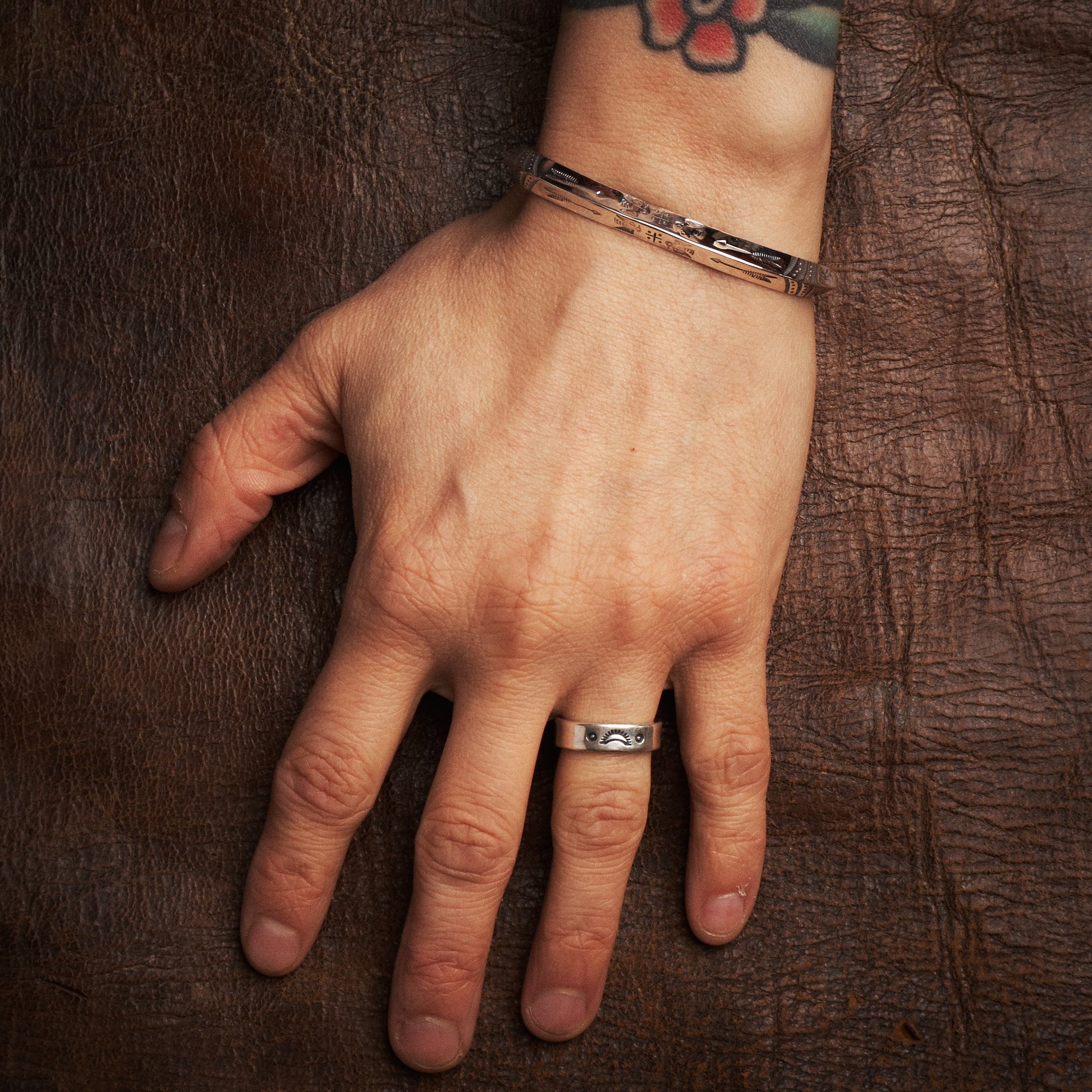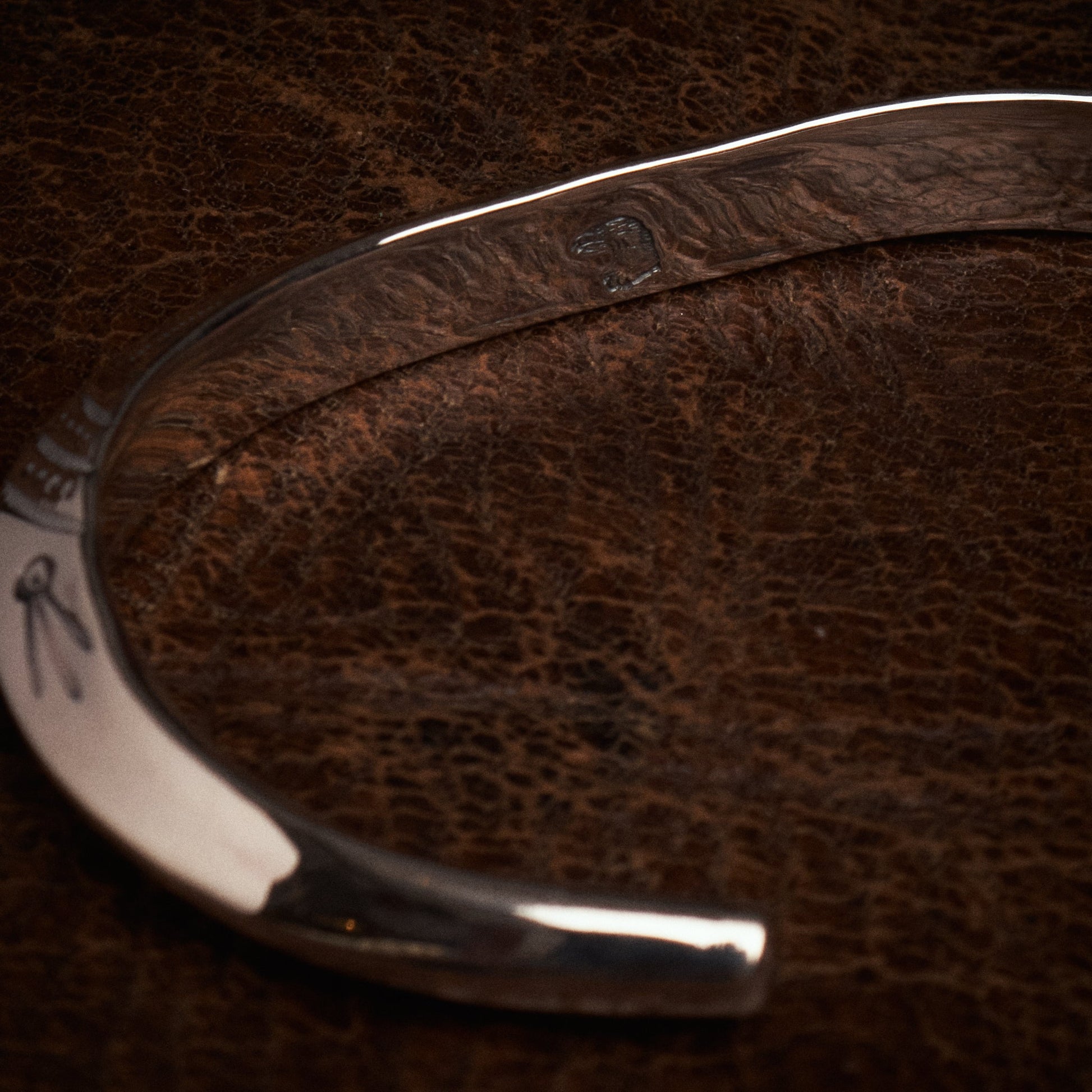 This silver bracelet is all handmade made by Larry Smith in Japan. Inspired by Native American jewelry from the so called Fred Harvey era dating back to the early 20th century. This thin bracelet looks great worn as it is or combined with other bracelets around you wrist.