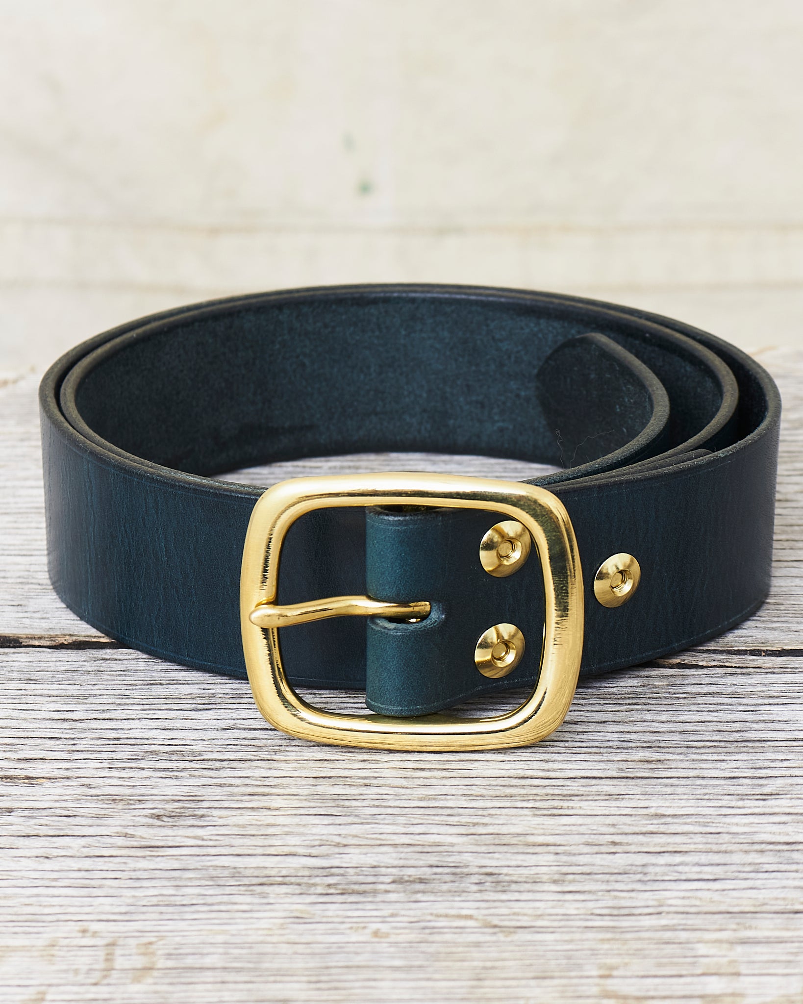 Lone Wolf Leather Belt Tärnsjö Dark Green Veg Tanned Oblong Buckle