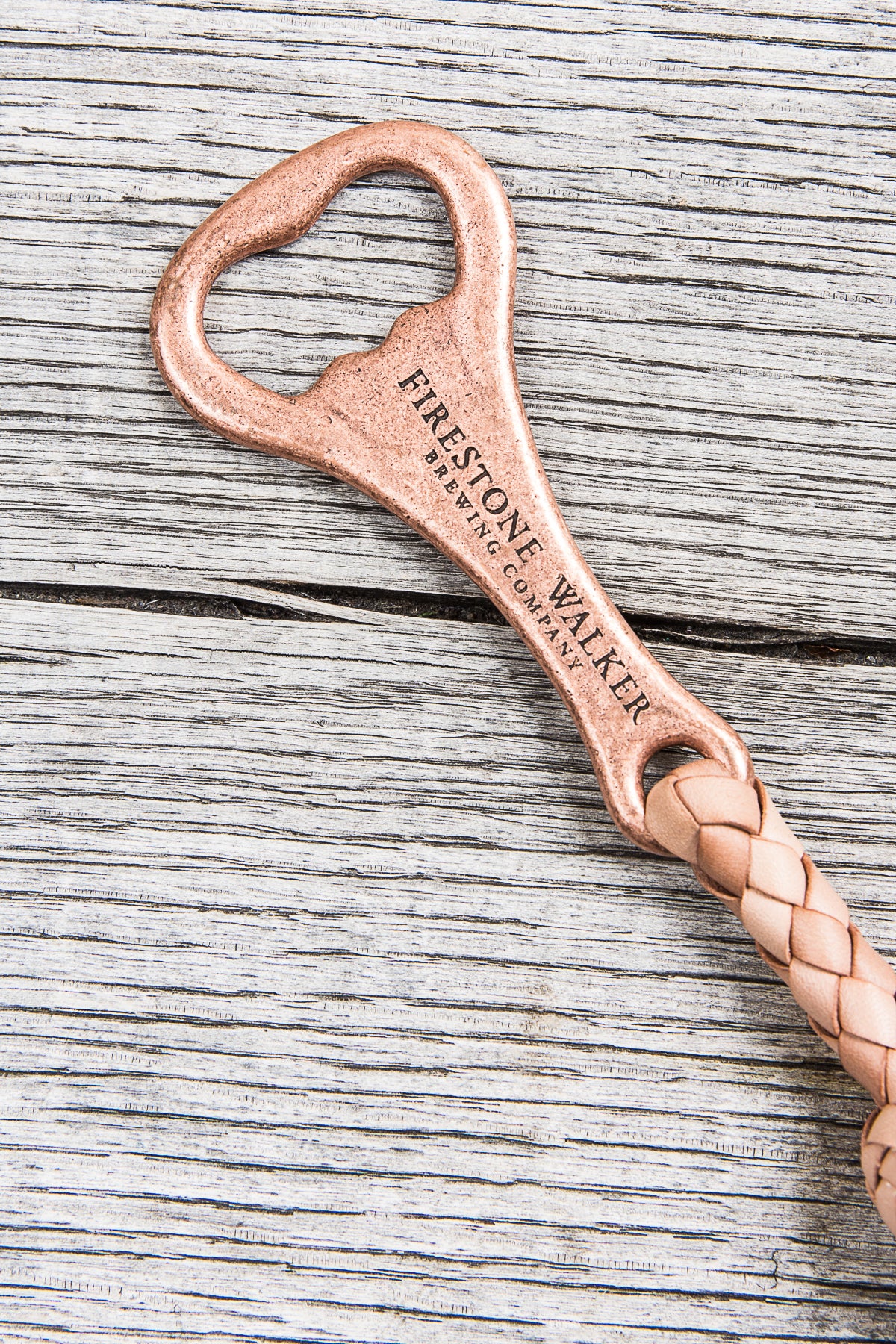This copper bottle opener from Firestone Walker Brewery, Los Angeles has been decorated with a Tärnsjö veg tanned leather braid to easier keep track off it.