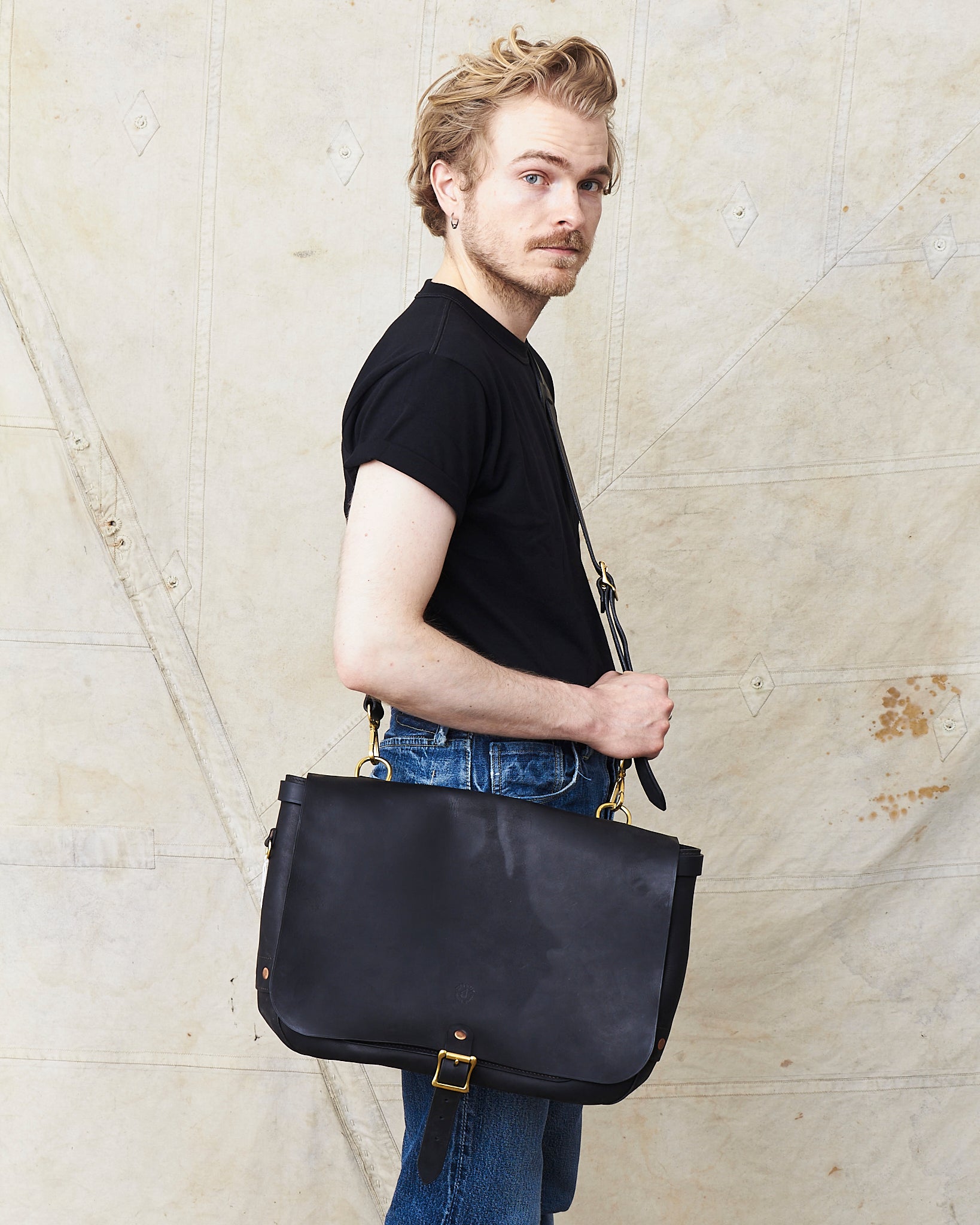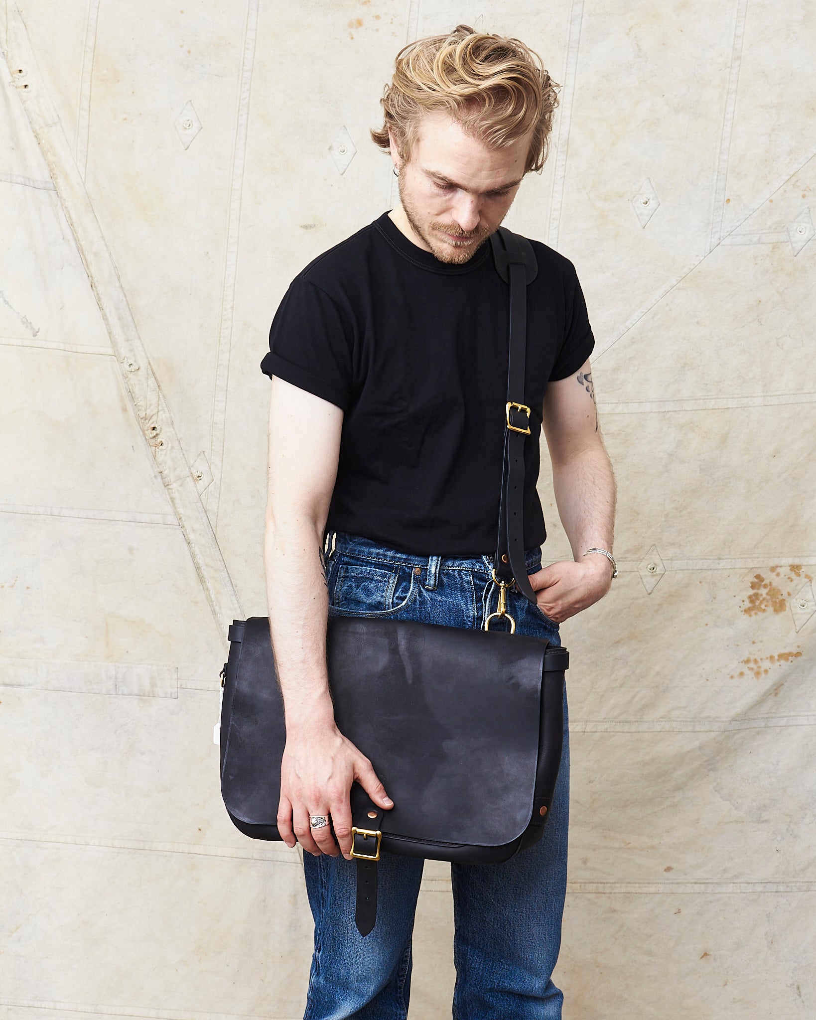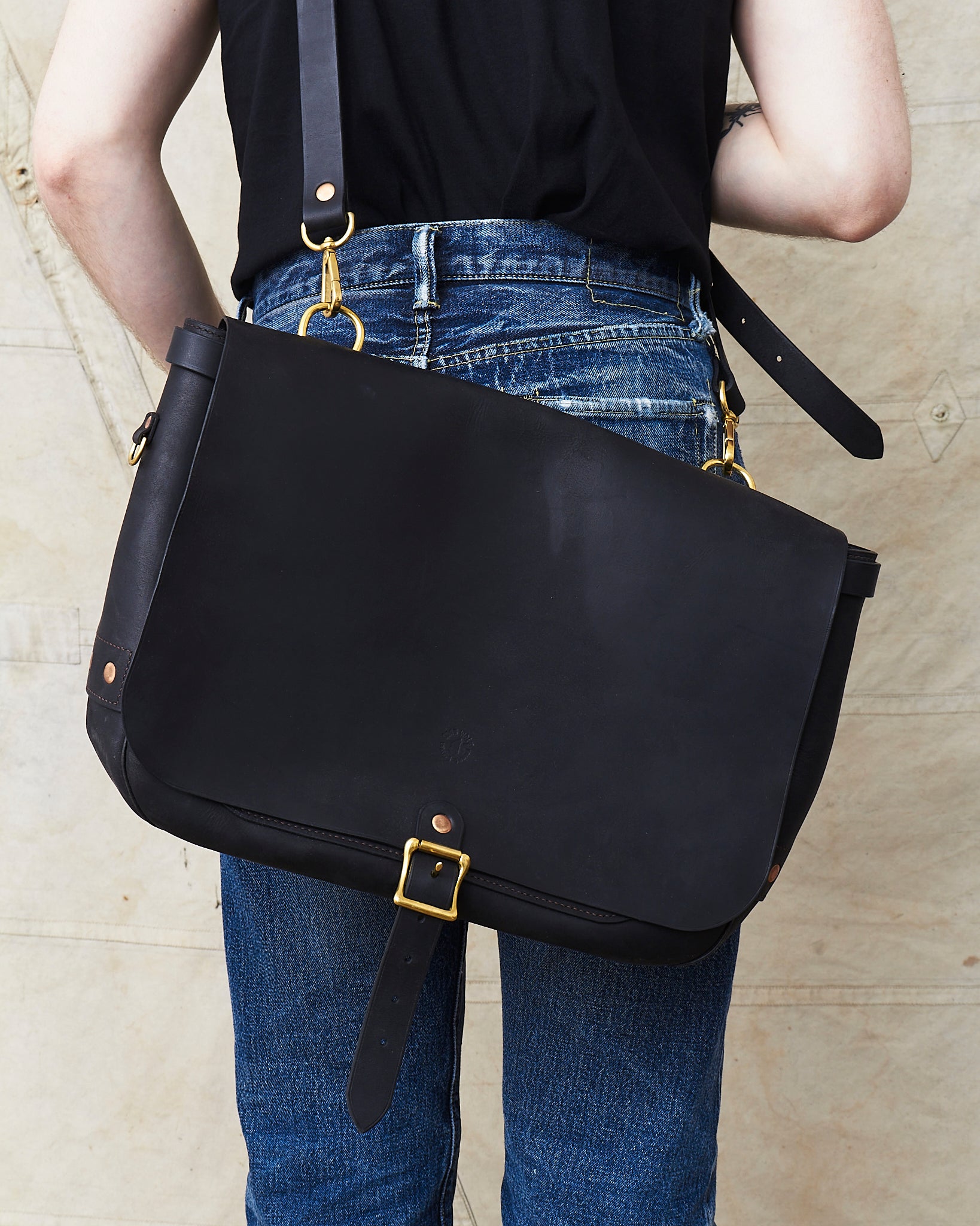 Lone Wolf Leather Messenger Bag Black Oiled & Waxed Tärnsjö Veg Tanned Leather