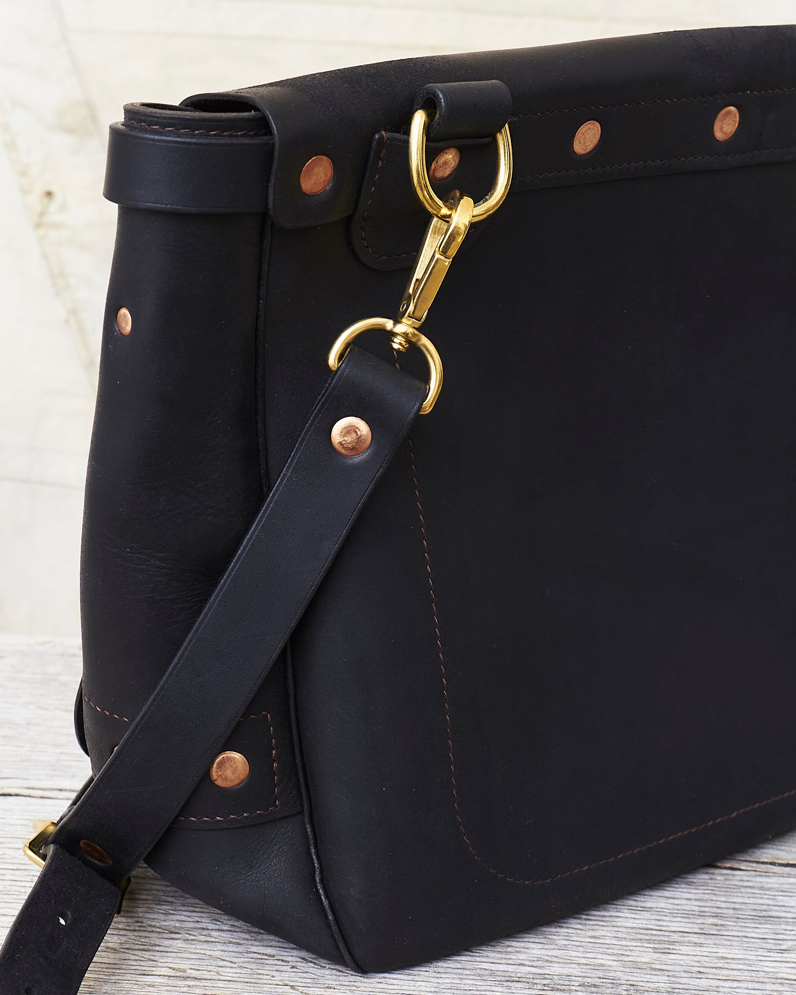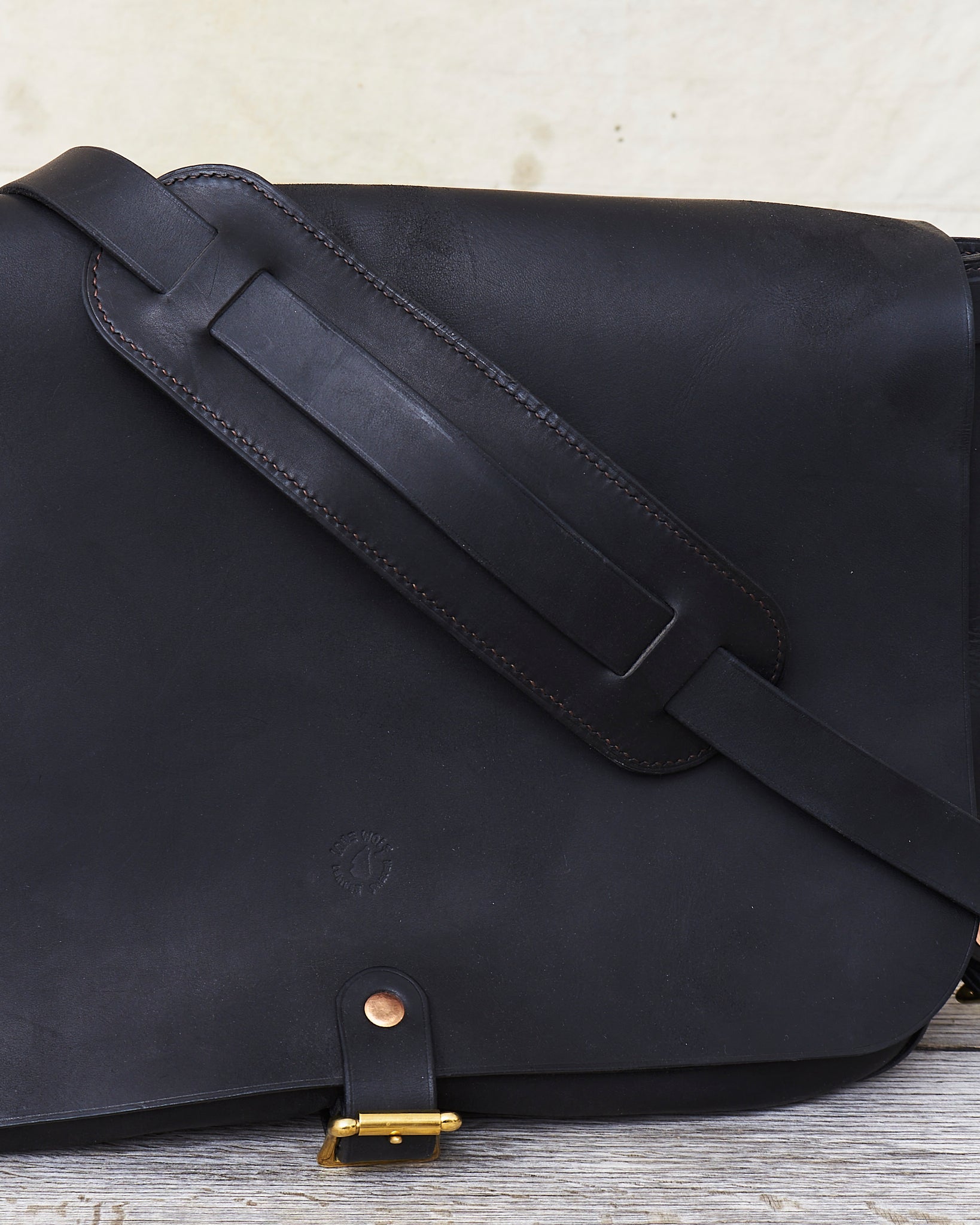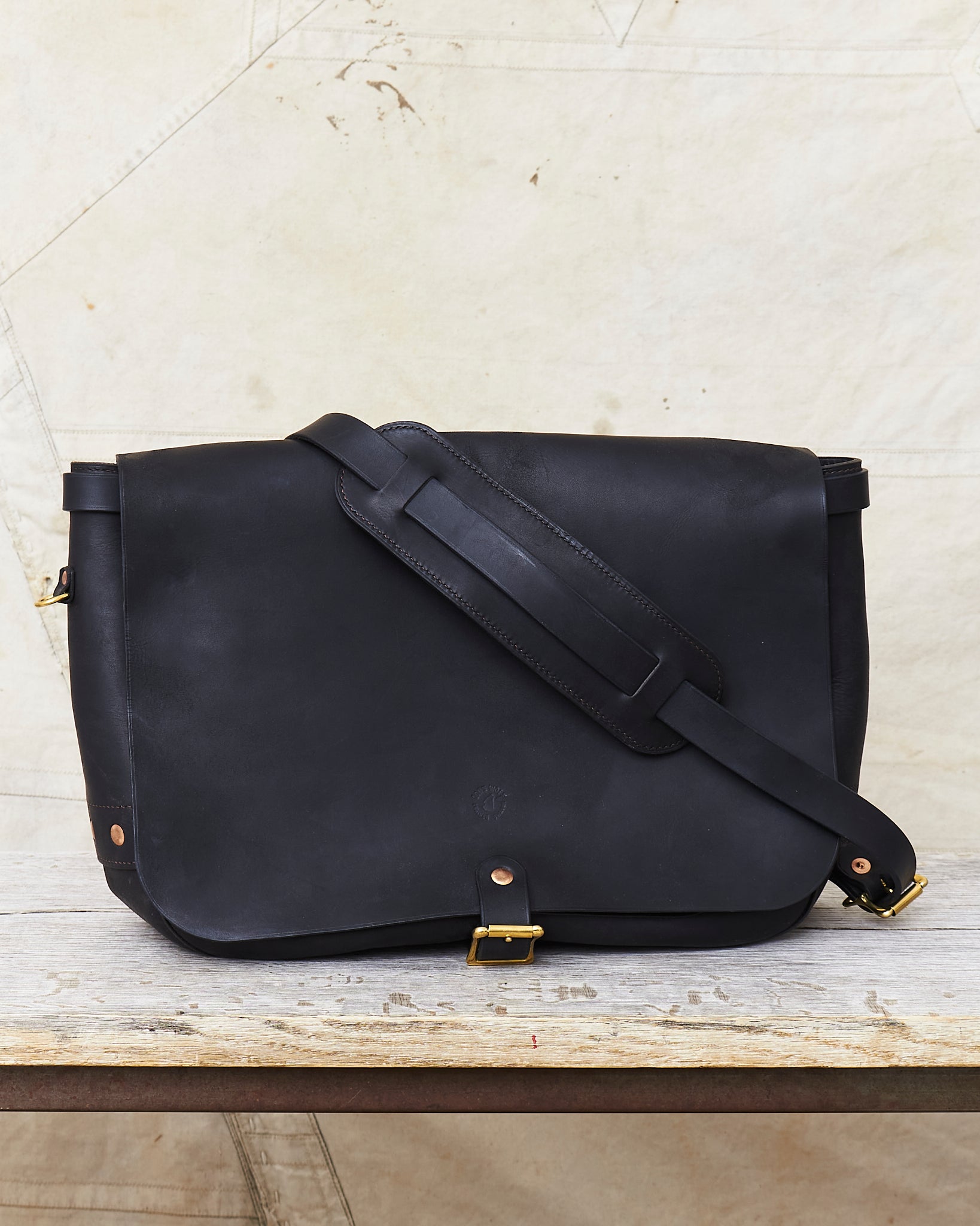 Lone Wolf Leather Messenger Bag Black Oiled & Waxed Tärnsjö Veg Tanned Leather
