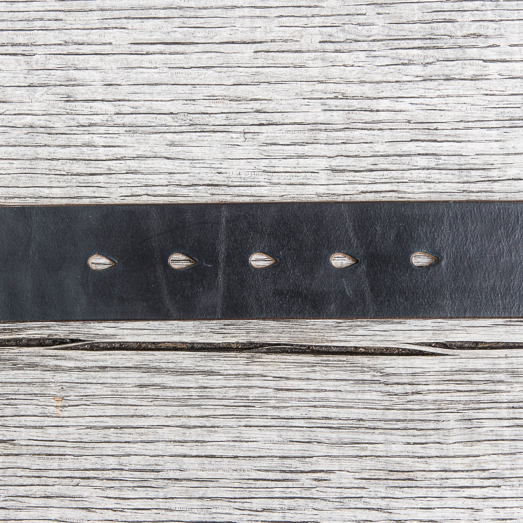 This beautiful belt is handmade in Sweden by Lone Wolf Leathers. The material used is Horween Chromeexcel, this American tannery is known today for making some of the finest leathers in the world! The tanning recipe for Horweens Chromexcel is over one hundred years old. In fact it dates back to 1913. Chromexcell leather is first tanned with a mixture of chrome tanning (chrome salts) and thereafter the leather is retanned using a traditional veg tanning process (bark extracts). This gives Chromexcel leather the best qualities of both tanning processes. The soft, supple, and durable qualities of chrome tanned leather and the round and full qualities of veg tanned leather that patina well. After the tanning process the leather is "hot stuffed" with oils, greases and bees wax that give the leather its characteristic pull up. The leather is finally hand dyed using an aniline stain. The characteristic "tea core" patina will show after use when the top stain wares off and the underlying leather color becomes visible.