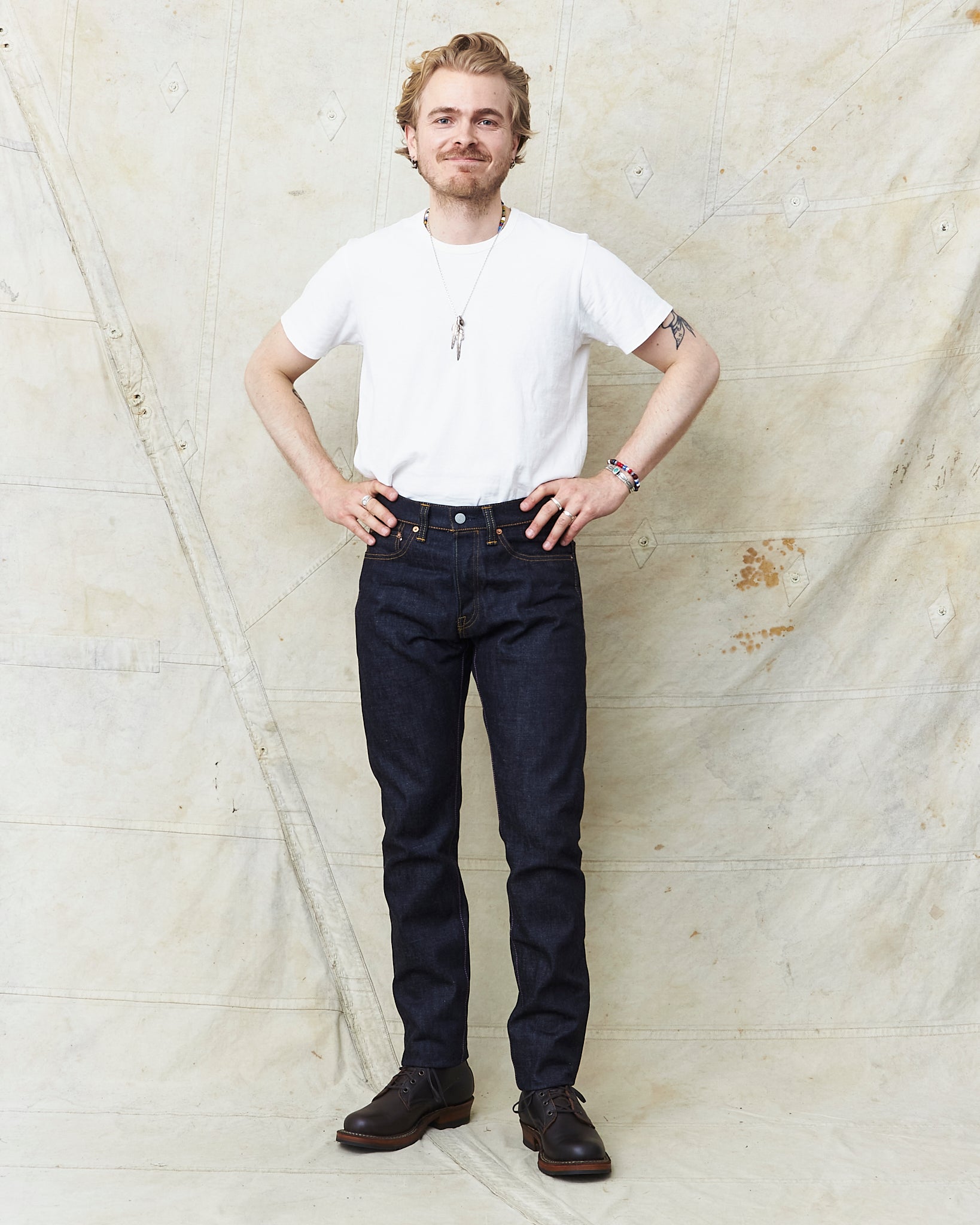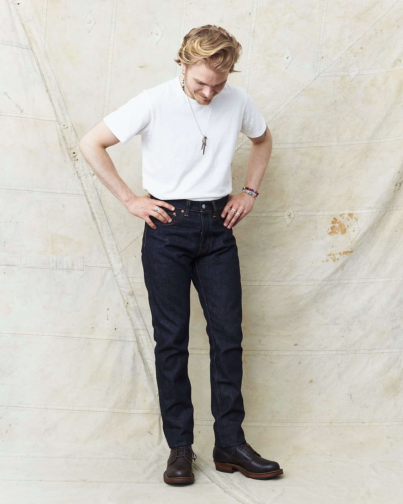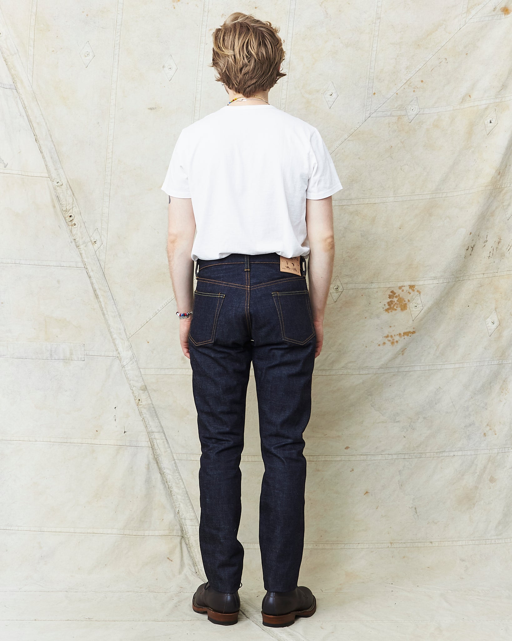 Lot 0405-V made by Momotaro is a pair of jeans with a regular waist and a tapered leg. They are inspired by the quality of vintage jeans from the middle of the last century but with a fit that makes them contemporary and great to wear for everyday use. The fabric in the Momotaro jeans is woven by their in-house weaving company named Collect which enables control of the quality from cotton fibre to finished products.