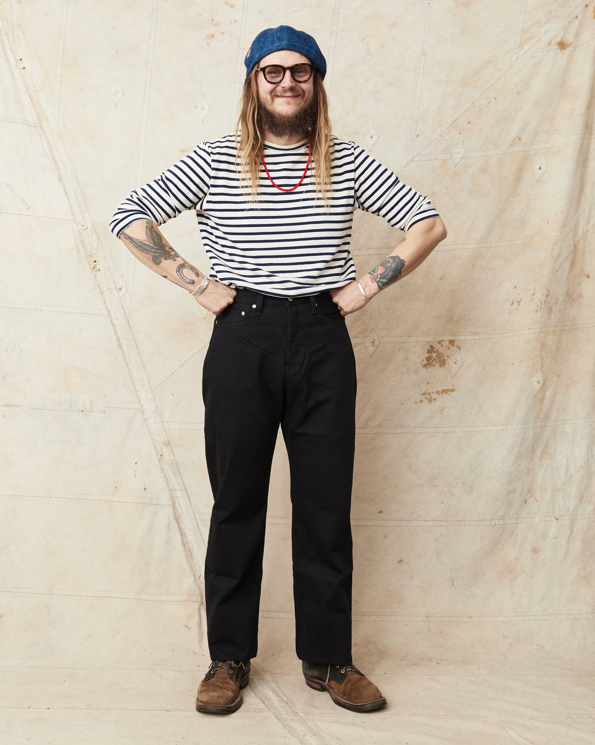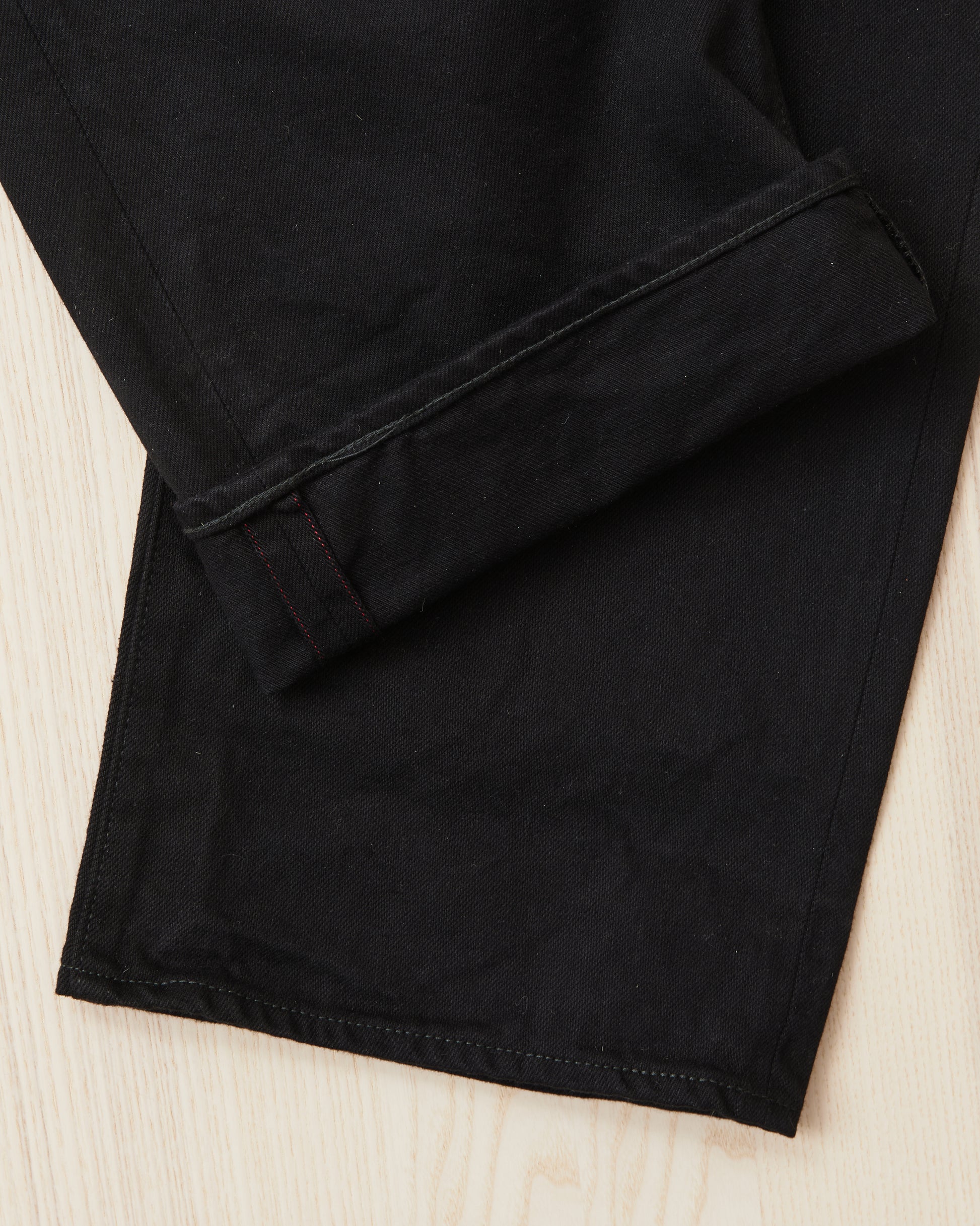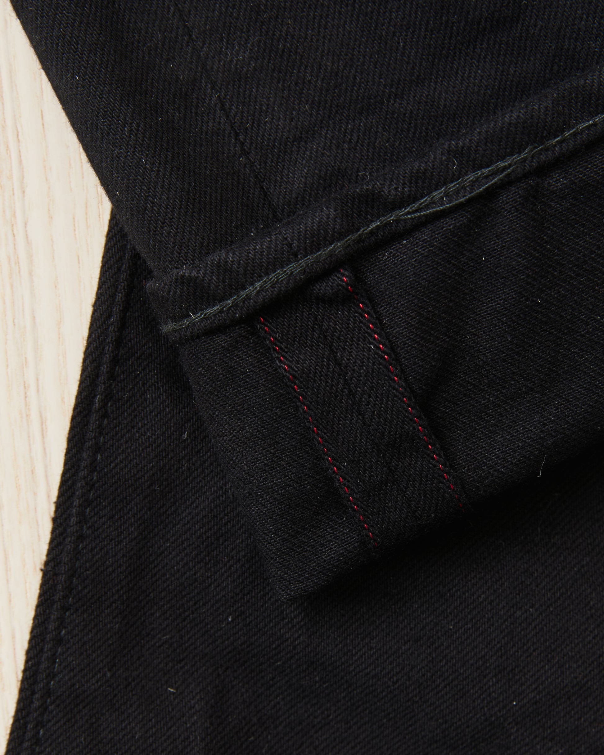 This version comes in Kyotomontsuki Dyed black selvedge fabric. Kyoto Montsuki is a dye house that has over 100 years of history. Their speciality is Montsuki dye, which is used for black ceremonial wear. They use their Shinkuro Deep Black Dying technique. This gives a exceptionally dark black hue.