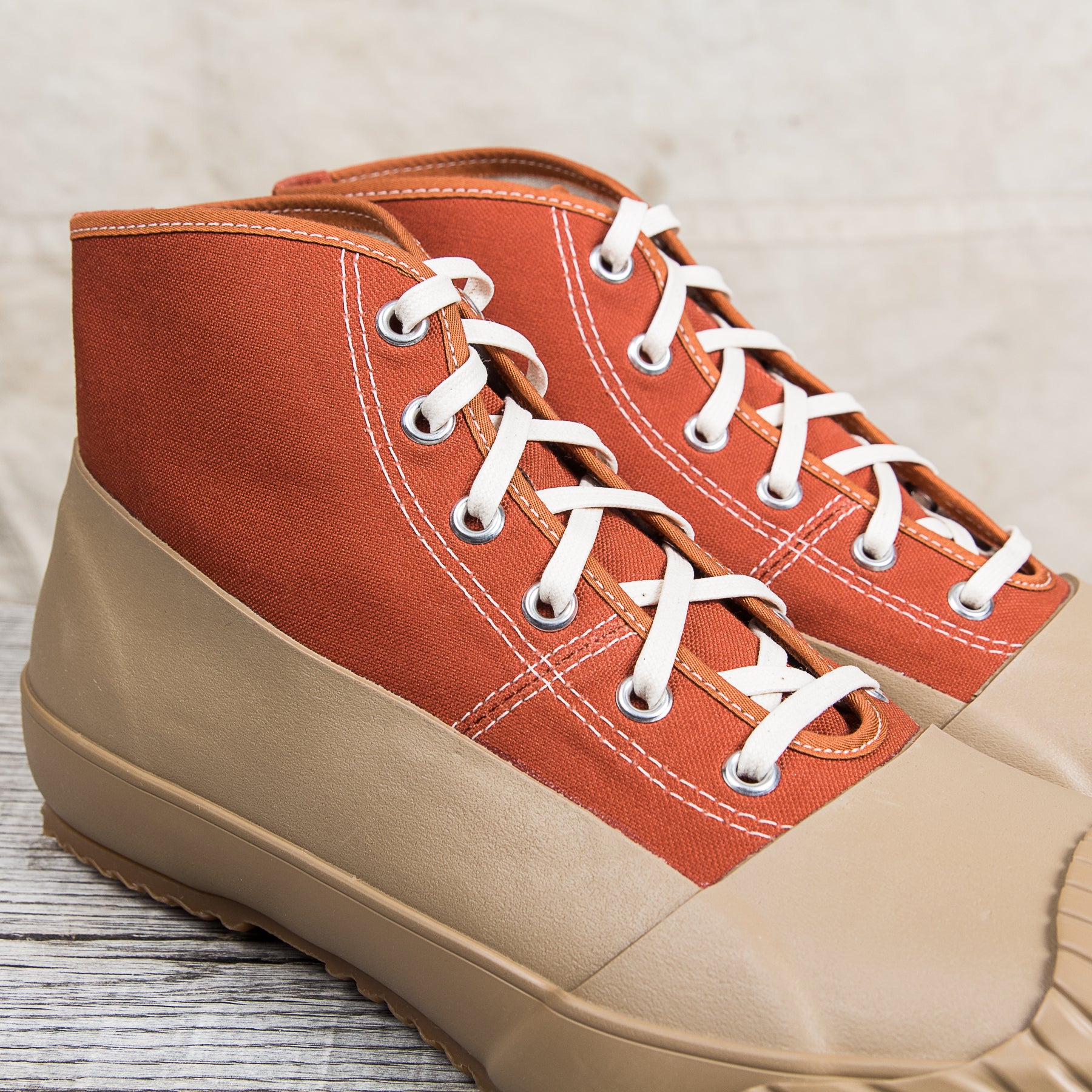 These waterproof All-Weather Sneakers are sewn and assembled completely by hand in the Moonstar's Kurume factory located in western Japan. The factory has been up and running since 1873 and takes pride in making durable and long lasting sneakers! These shoes are produced using a so called “kay-ryu“ method, a traditional vulcanization process in which natural rubber is used.