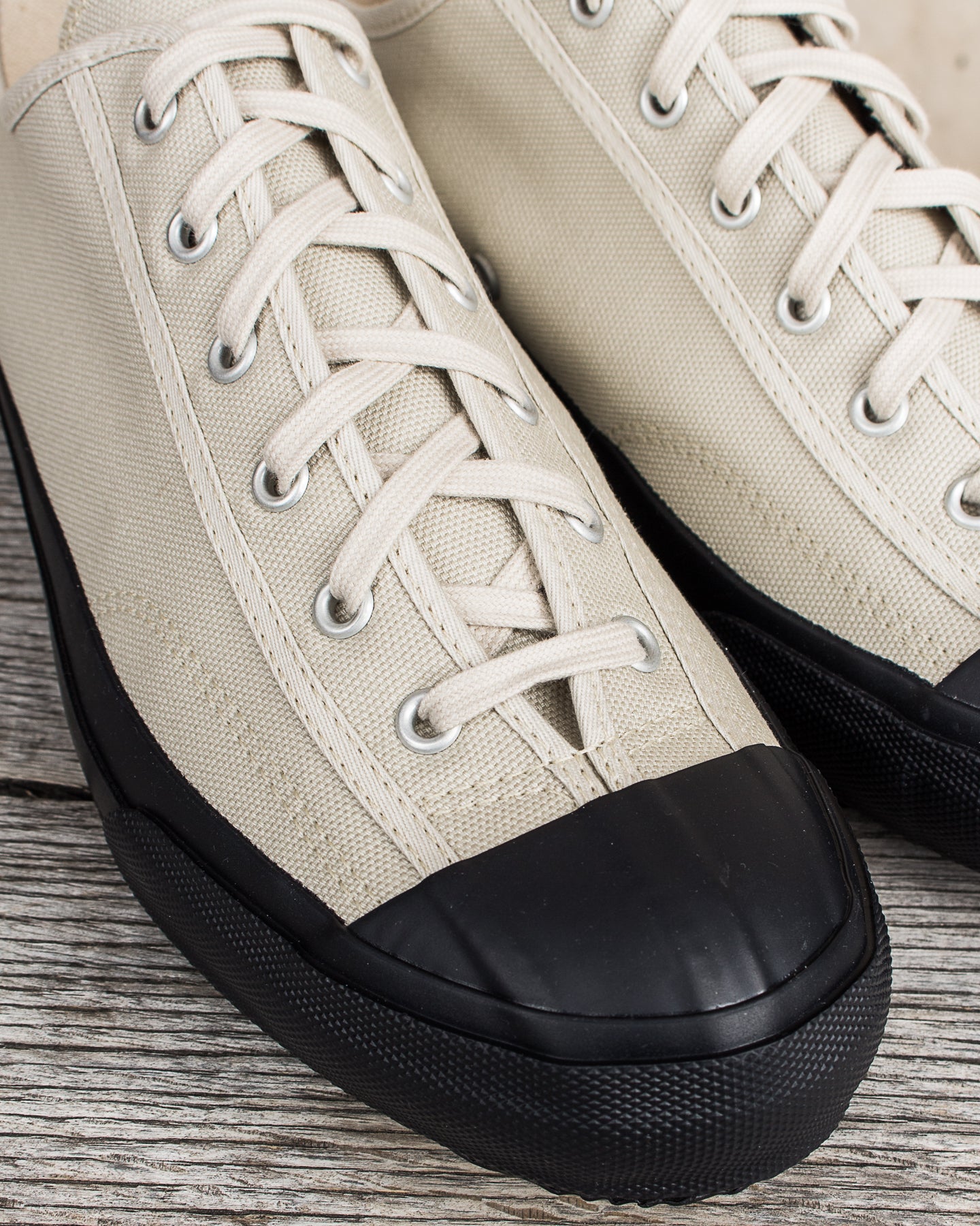 The thick canvas fabric is made of 100% cotton. They’re also finished off with an extra thick rubber toe cap that serves as a toe guard for added safety and durability.