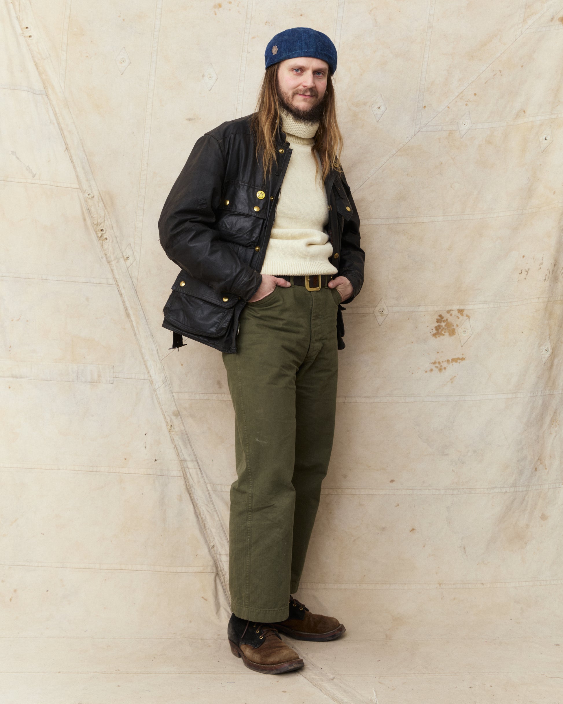 Douglas is 180 cm tall, weighs 85 kg and wears size 44. Combining the knit with a pair of well loved Orslow Herringbone Trousers, White's Semi Dress boots and in the last pictures a vintage Barbour international jacket from the 1950s.