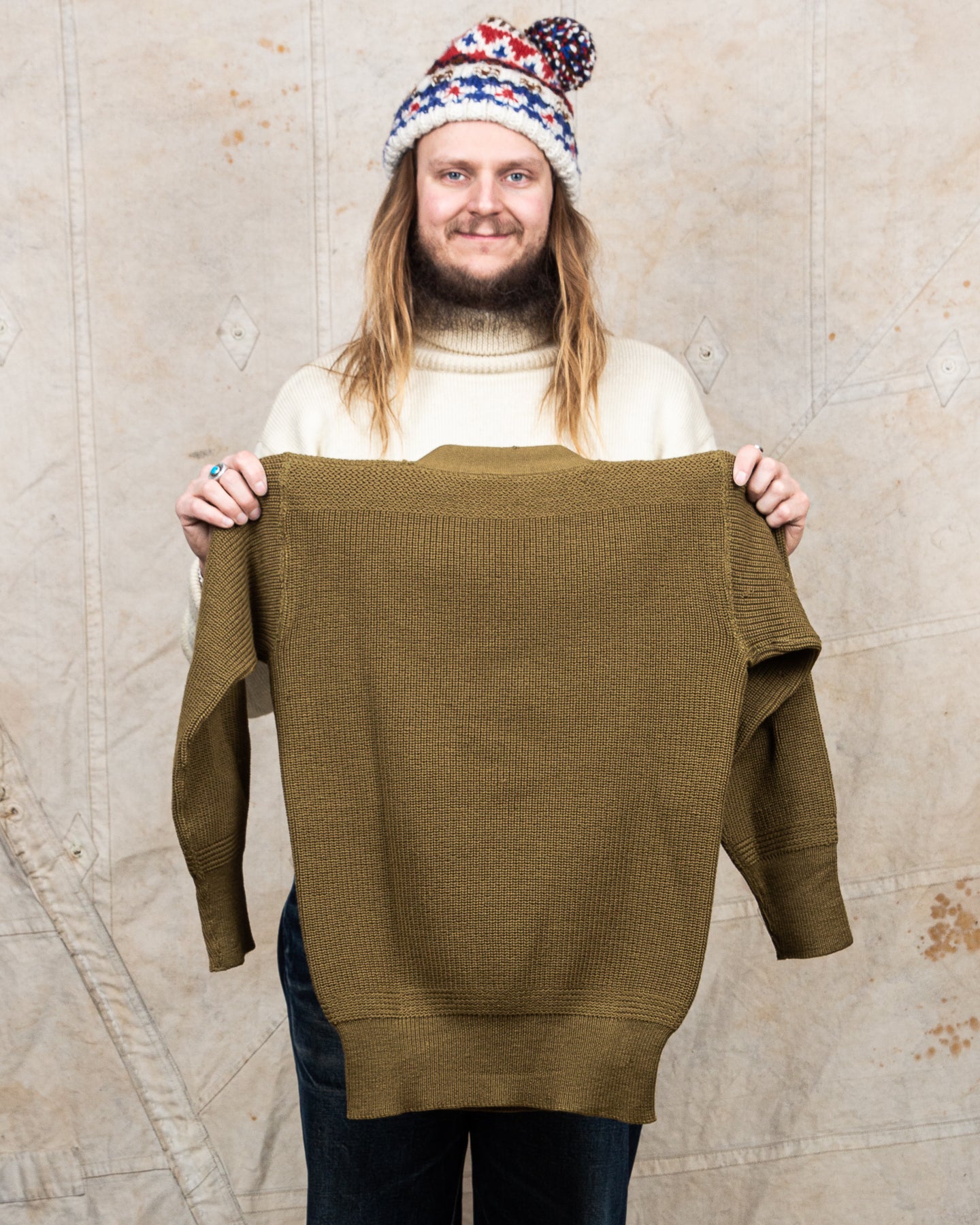 This is an original vintage US Army Wool Sweater from the 40s. The quality and feel of this garment is outstanding, and would be very hard to find in a garment produced today. The overall condition is good, with a few holes that are easily mended and the level of details is just amazing considered that this is a simple army garment that would have been made by the thousands. The extra strong knitting over the shoulders and by the cuffs tells us that a lot of thought has gone into the design of this sweater in order to ensure that it would be as durable as it was possible to make it.