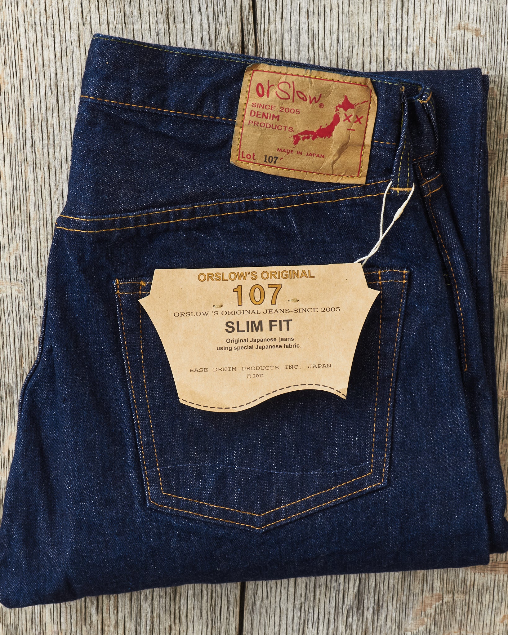 The 107 fit made by OrSlow is also referred to as the "Ivy Fit" since it has a normal rise and a slim tapered leg. These jeans are made in Japan using Japanese denim with the intent to feel like and look like vintage jeans from the 60s.