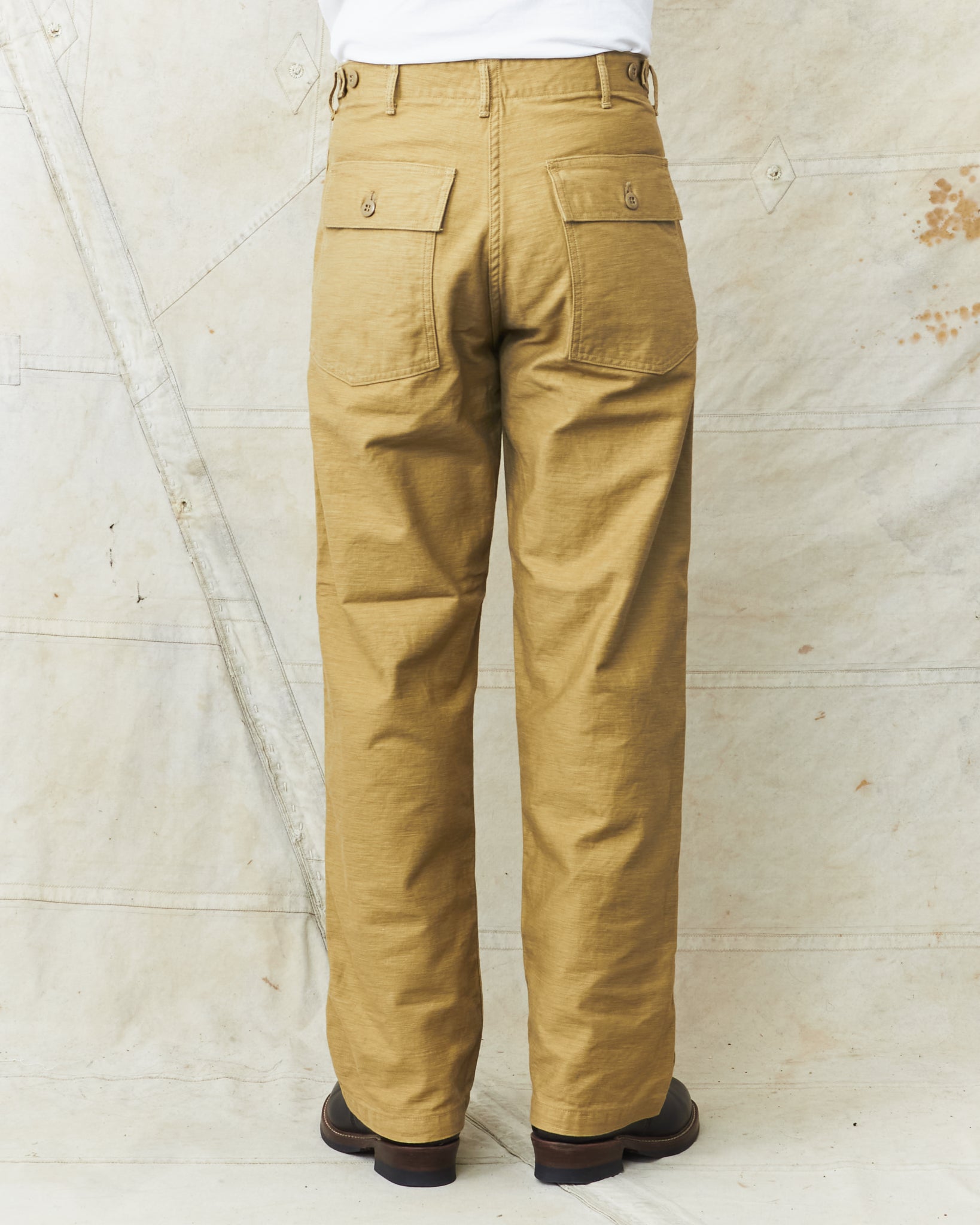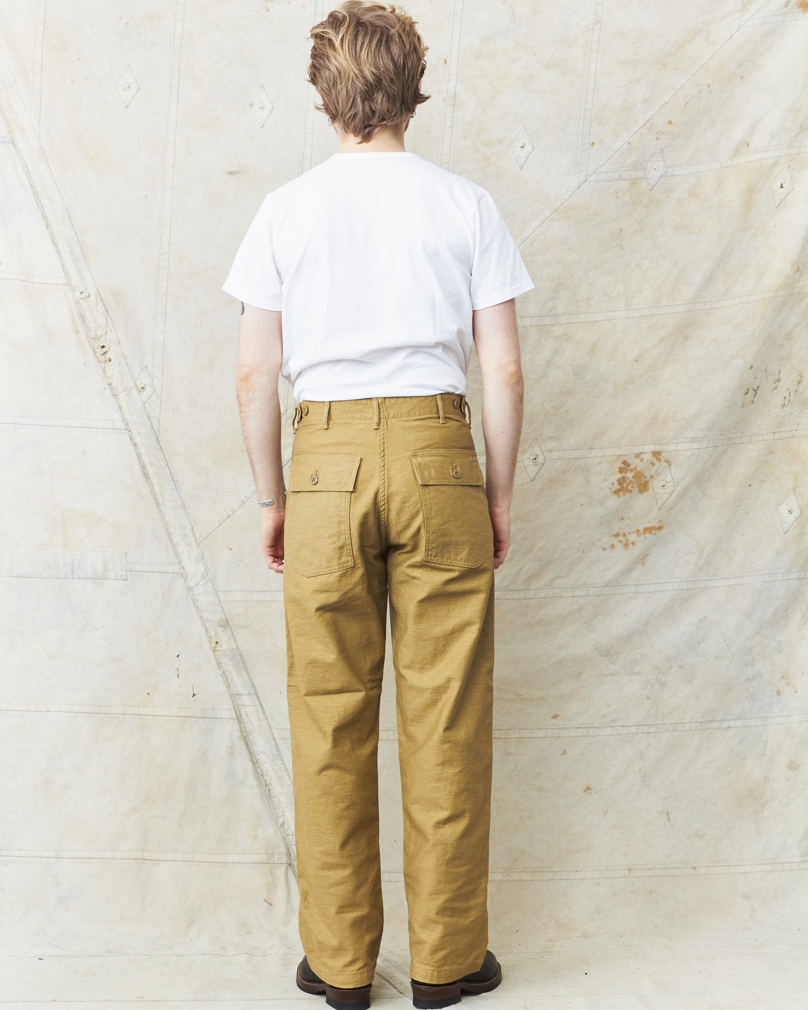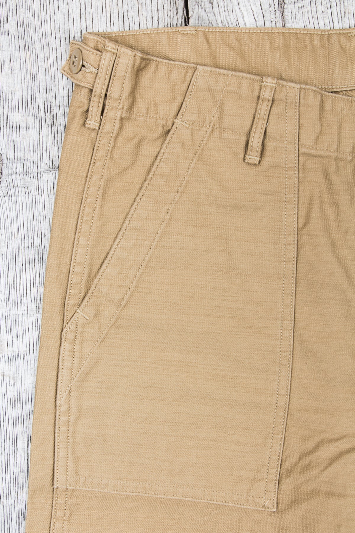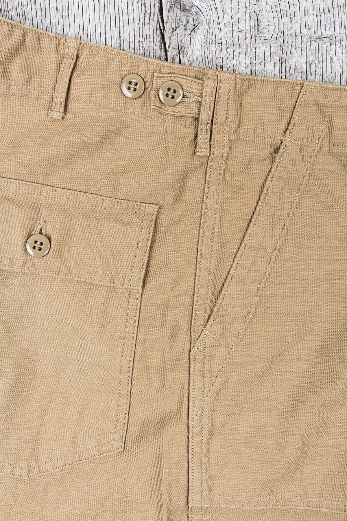 This is OrSlow's version of a classic fatigue pant, inspired by the cotton sateen pants used by the US Army in the middle of the last century. Fatigue pants are synonymous with patch pockets on the front and the square shaped pocket flaps covering the back pockets. These pants also have belt loops and adjusters on the side of the hips.