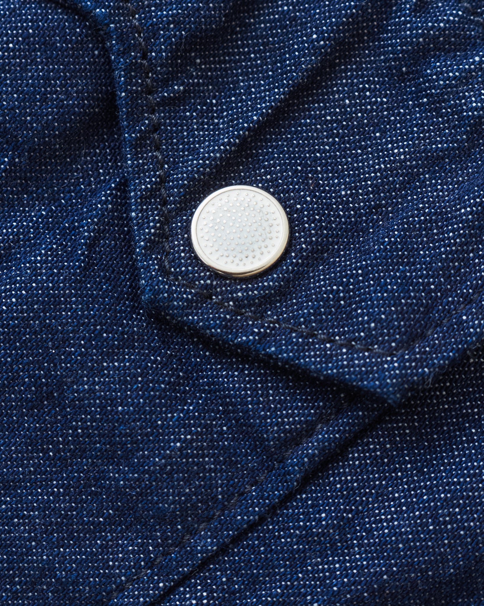 This is jacket/blouson is inspired by the snap buttoned western inspired jackets, that Levi's produced in the mid 50's. The cut of the jacket is short and boxy and the cotton fabric is light and very comfortable. The snap buttons looks great and gives that great looking western style.
