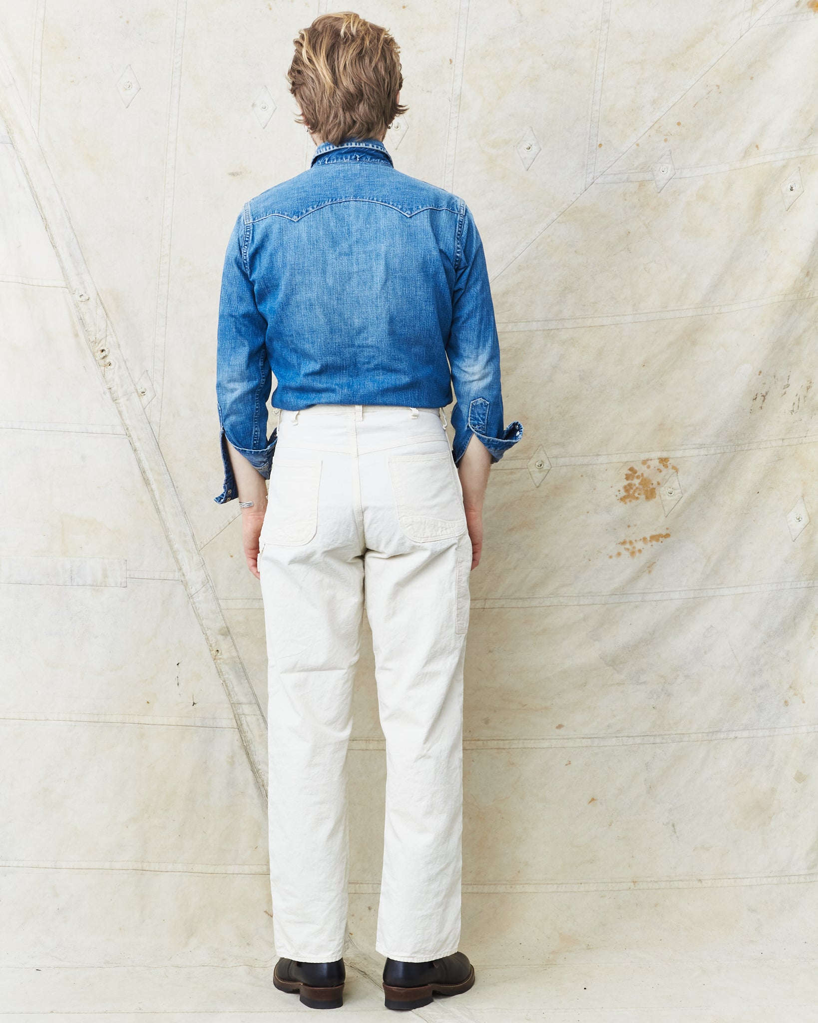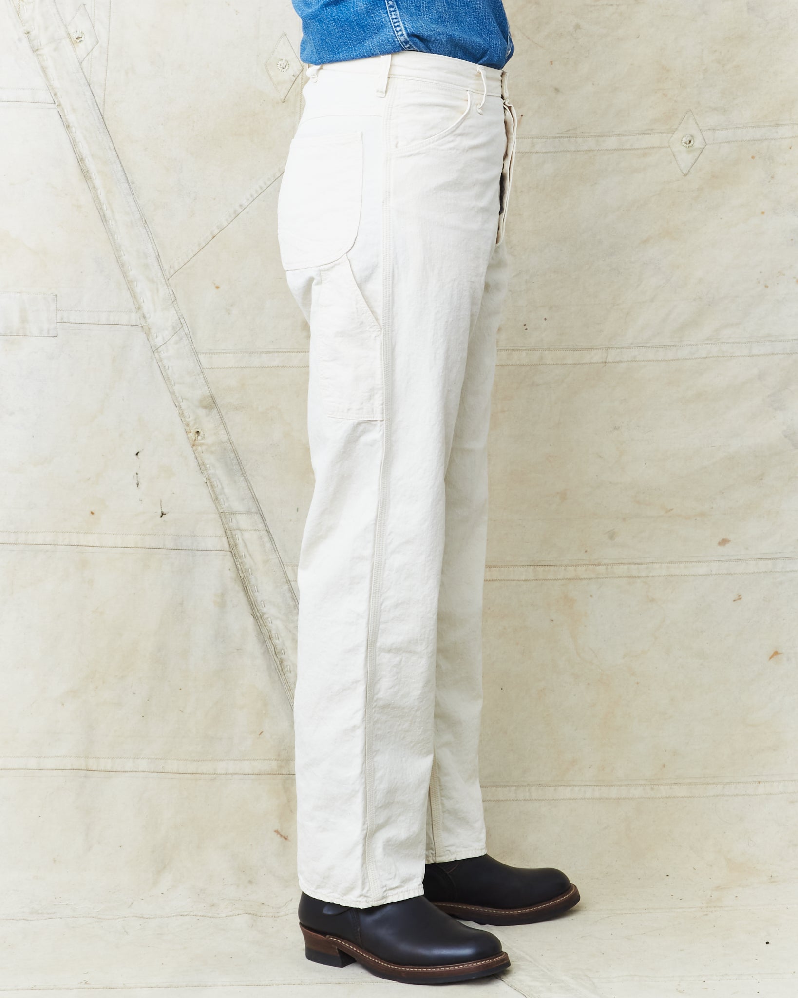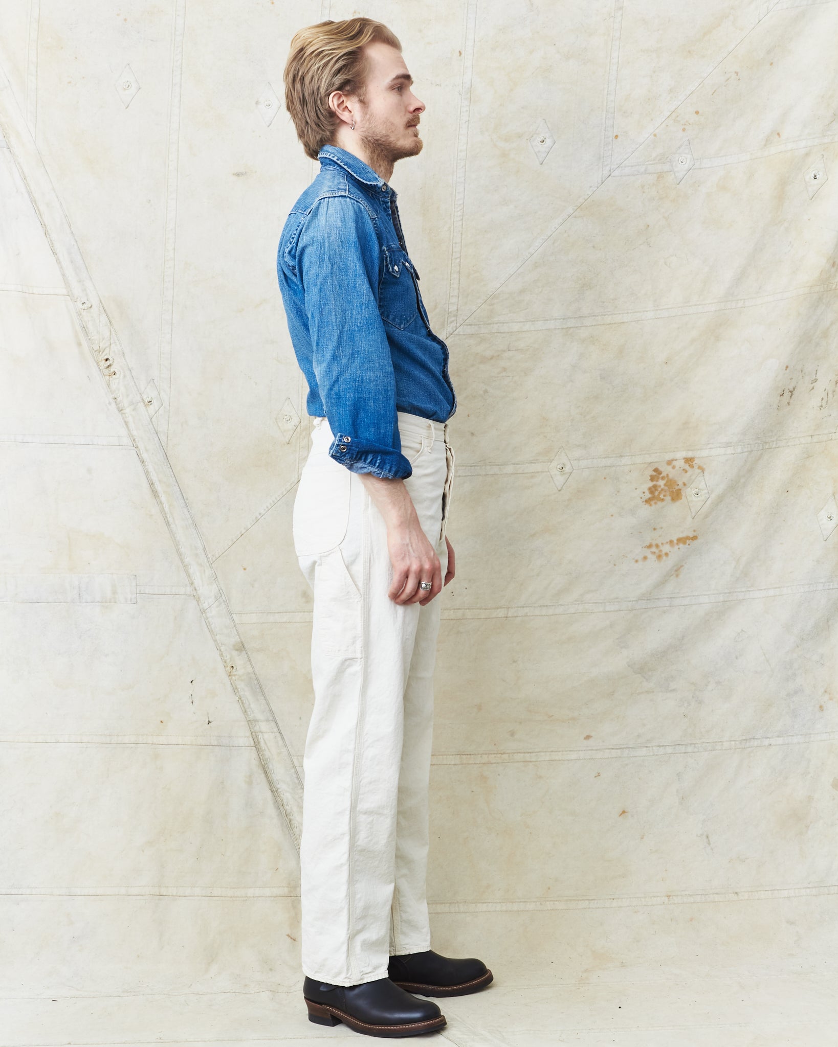 These pants finds their inspiration in carpenter pants from the middle of the last century. A high waist, wide legs and many functional pockets makes them a pair of perfect and comfortable everyday pants. The fabric is made to resemble the so called Jelt denim from the 30's. This thin but densely woven fabric is durable without being thick and uncomfortable to wear.