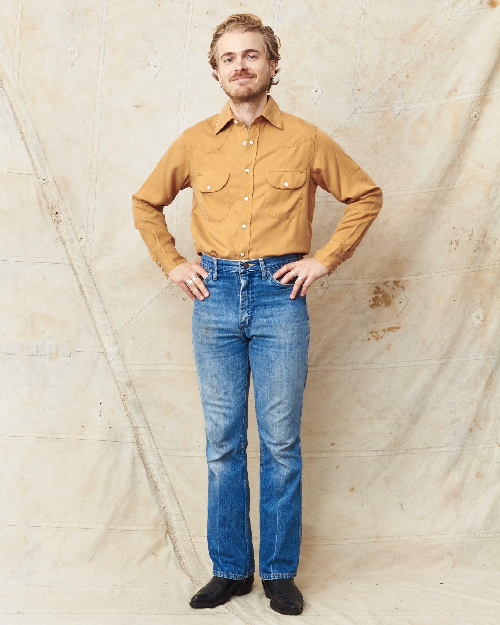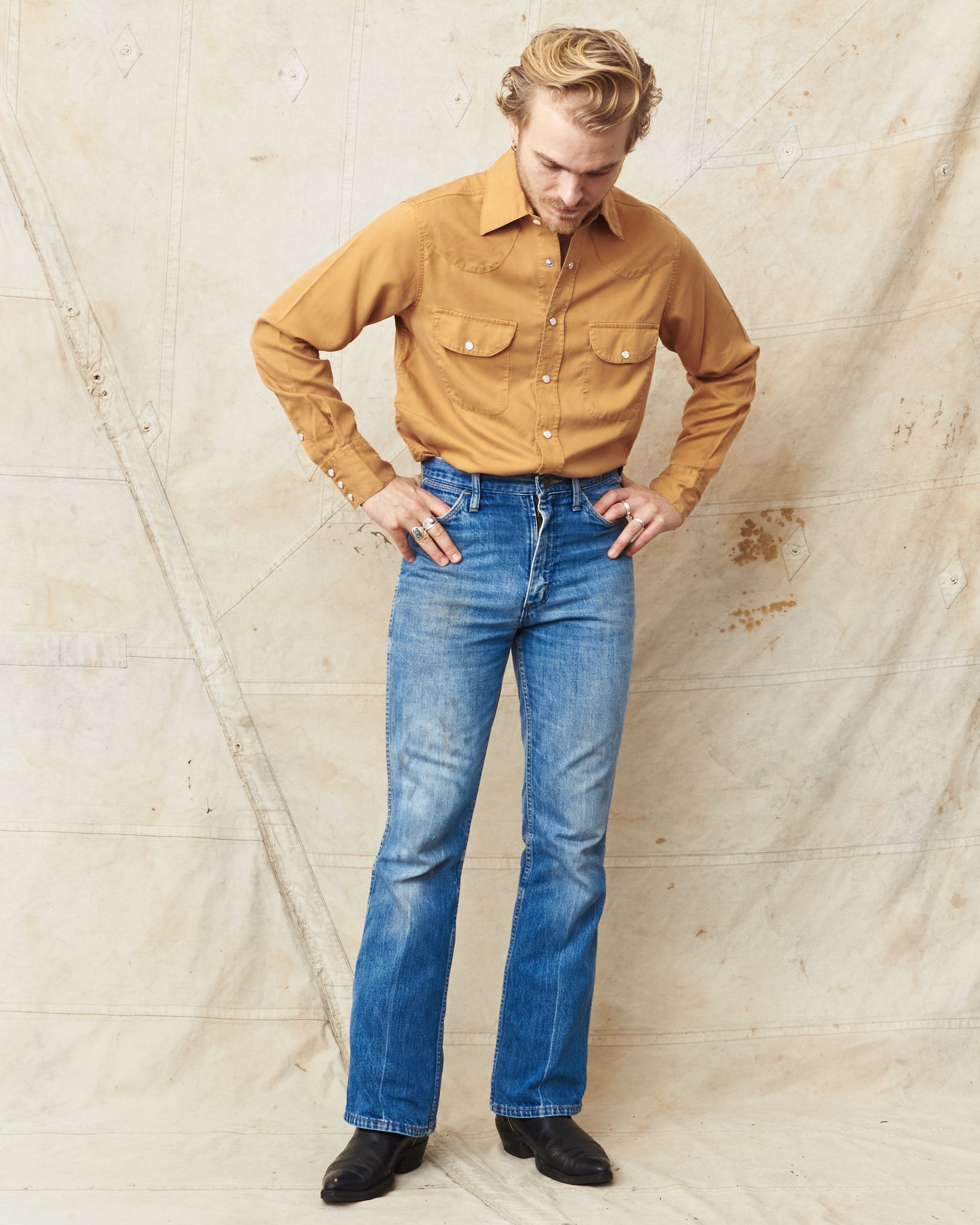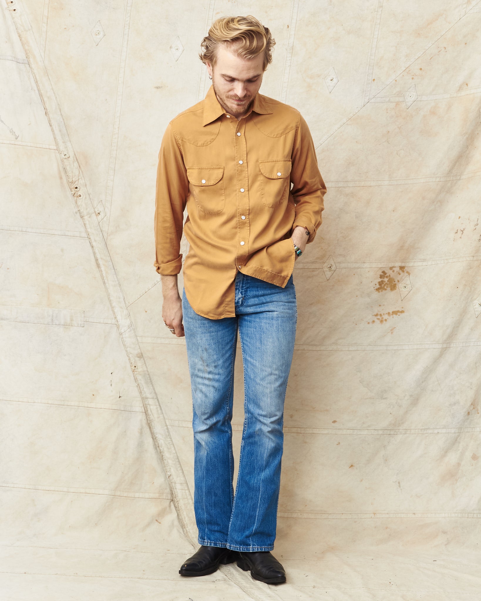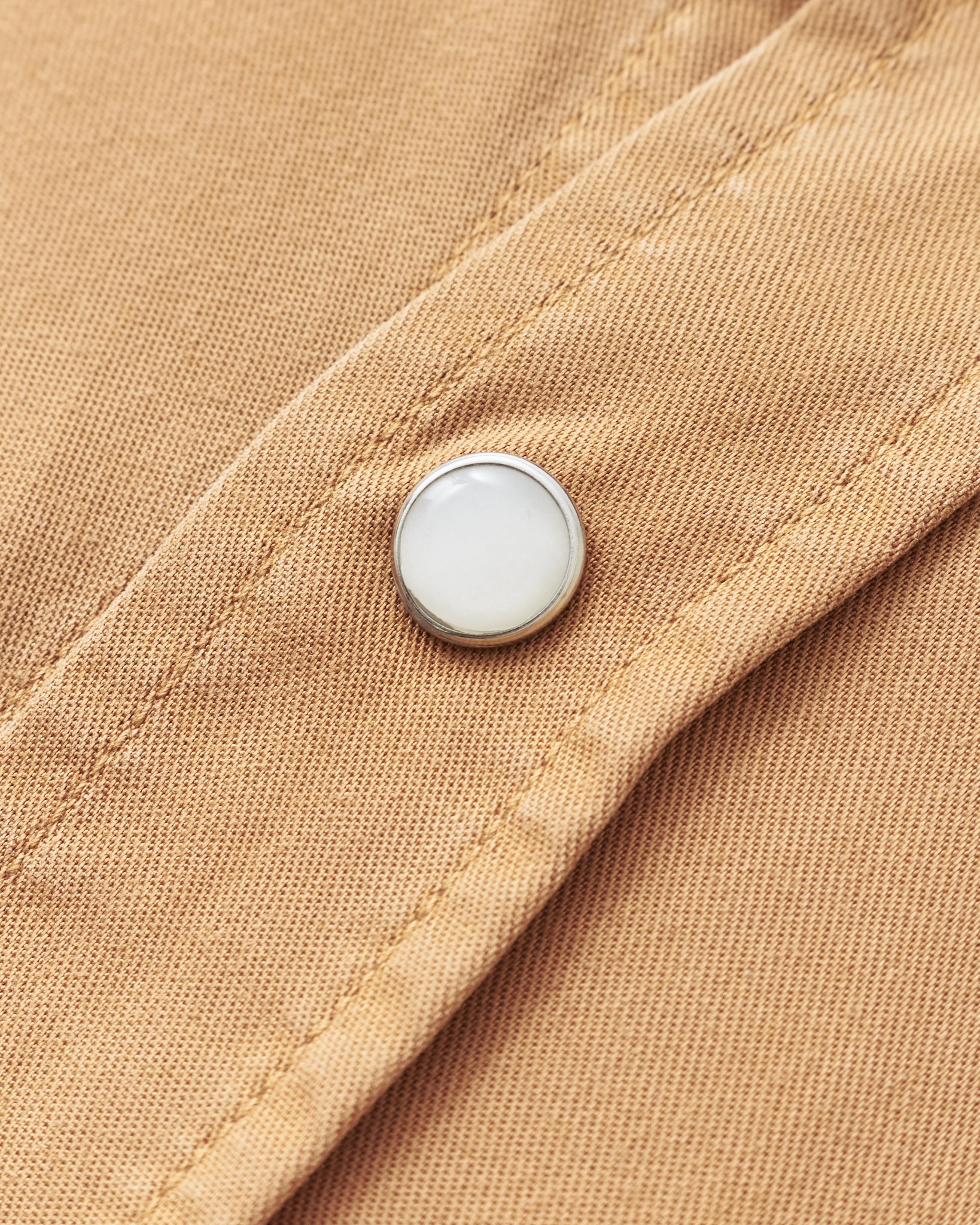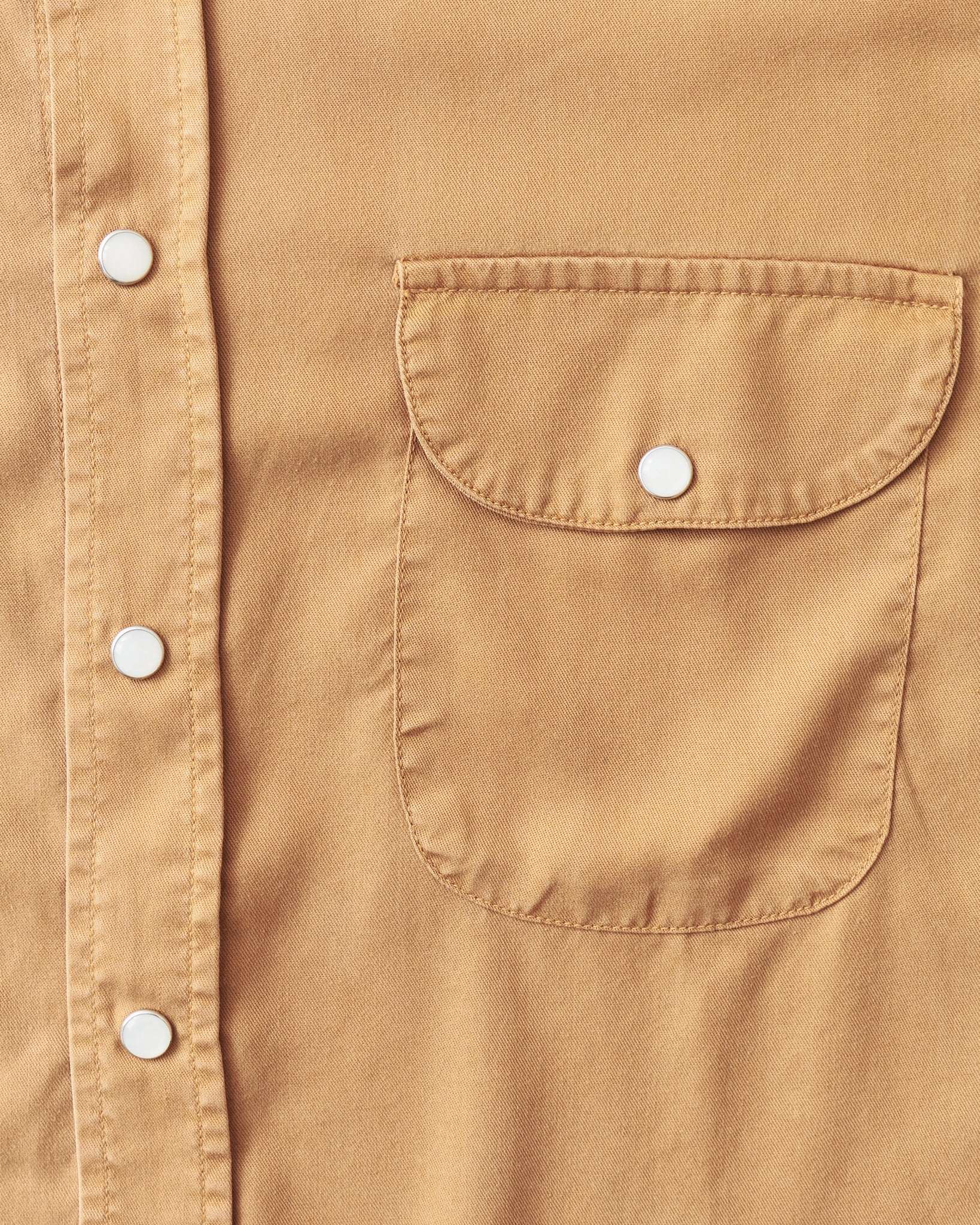 Pals Westerner shirt is made out of Tencel Lyocell fabric. The shirt is garment dyed. It has two chest pockets with flaps, rounded western yokes and of course, Western buttons. The fabric is considered very sustainable and it also has a silky feel that drapes nicely. Since being garment dyed, the shirt has a slightly faded color, reminiscent of days spent under the southwestern sun.