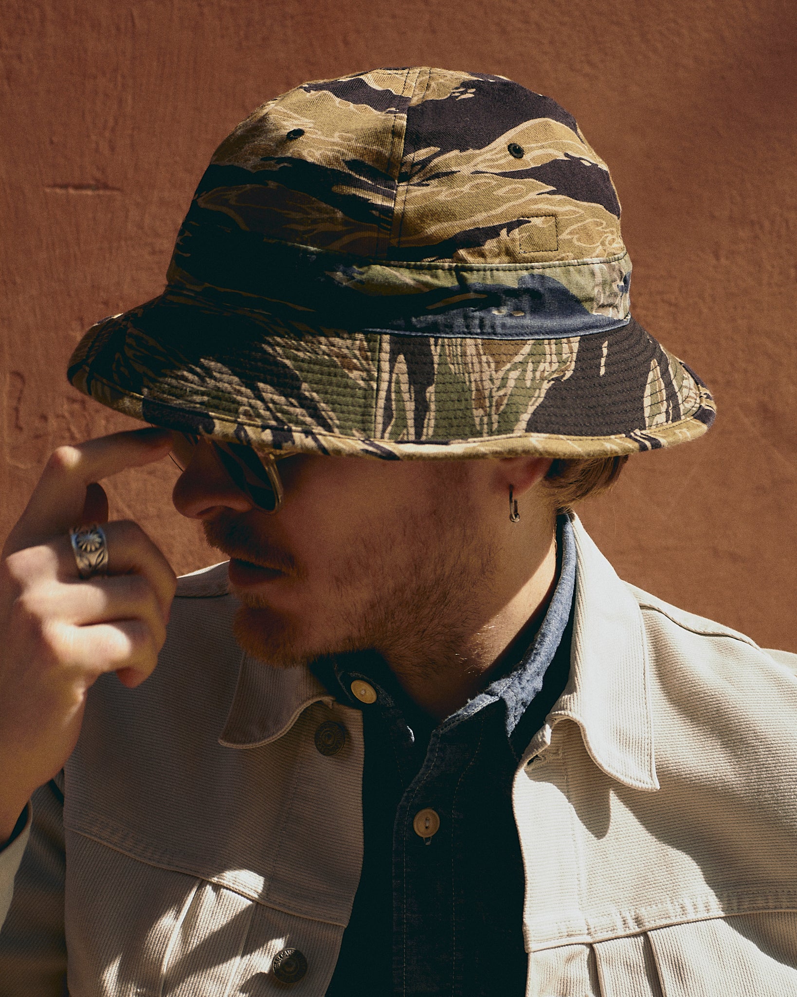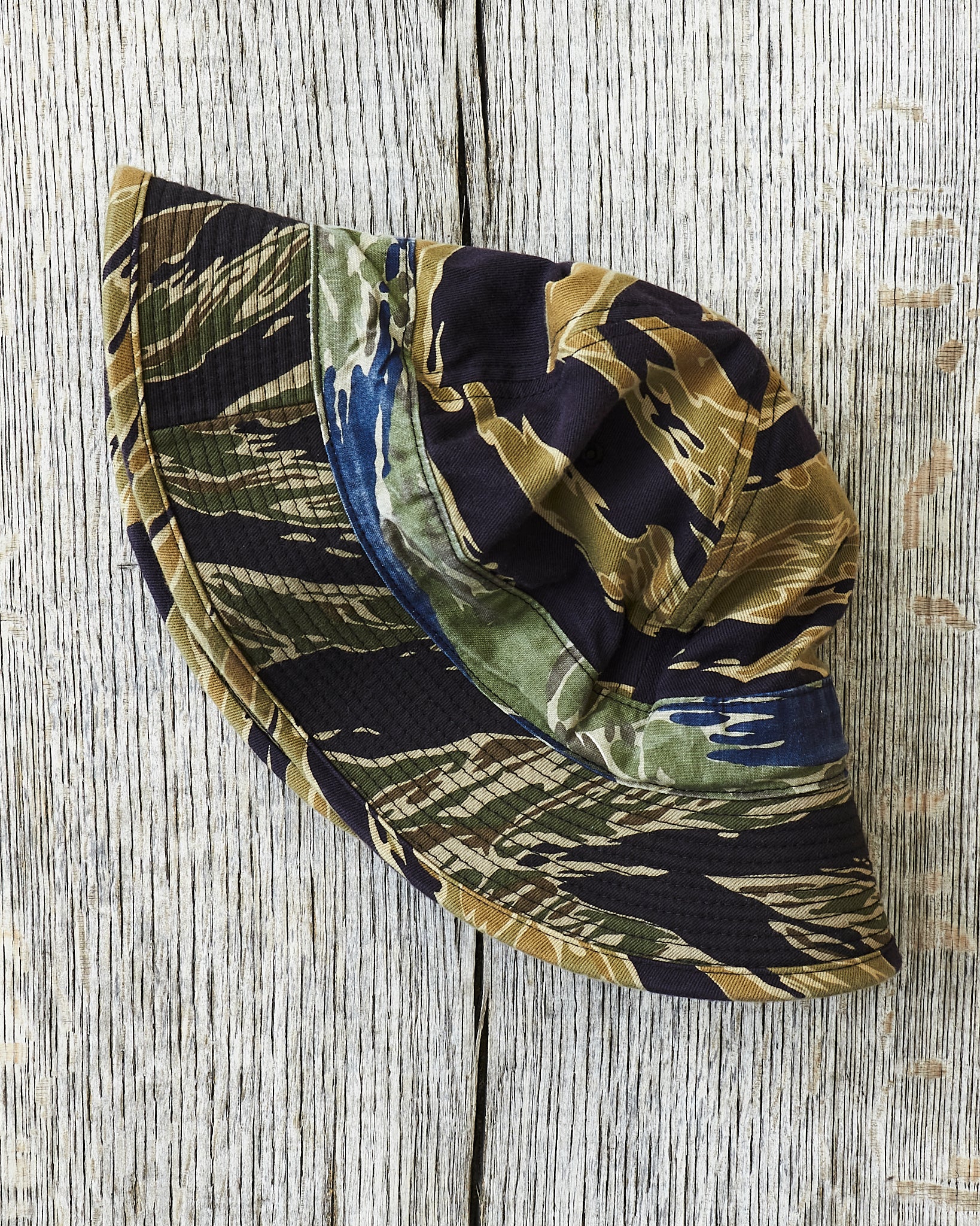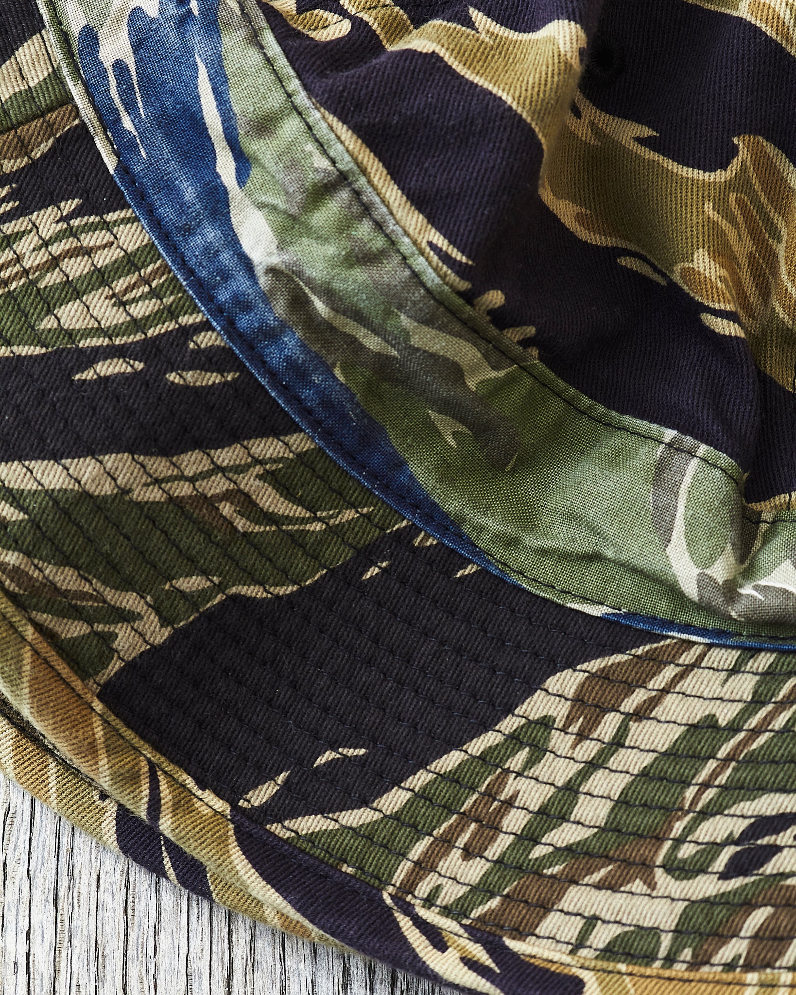 The Crazy Tiger Boonie Hat is based around a daisy mae, with the twist of having three different tiger stripe camo fabrics. One on the four panel head, one on the head band and one on the brim.