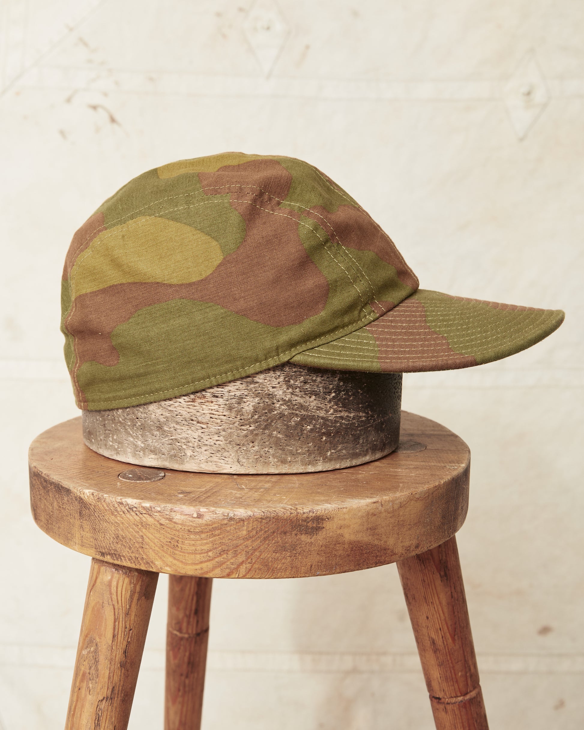 The Papa Nui Cap Co. Hellcat Cap is a special style that draws inspiration from 1940's military caps. The visor is soft yet sturdy enough to form as you like, making the cap easy to pack, not having to worry about breaking the visor. This version comes in a Italian San Marco style camo fabric.