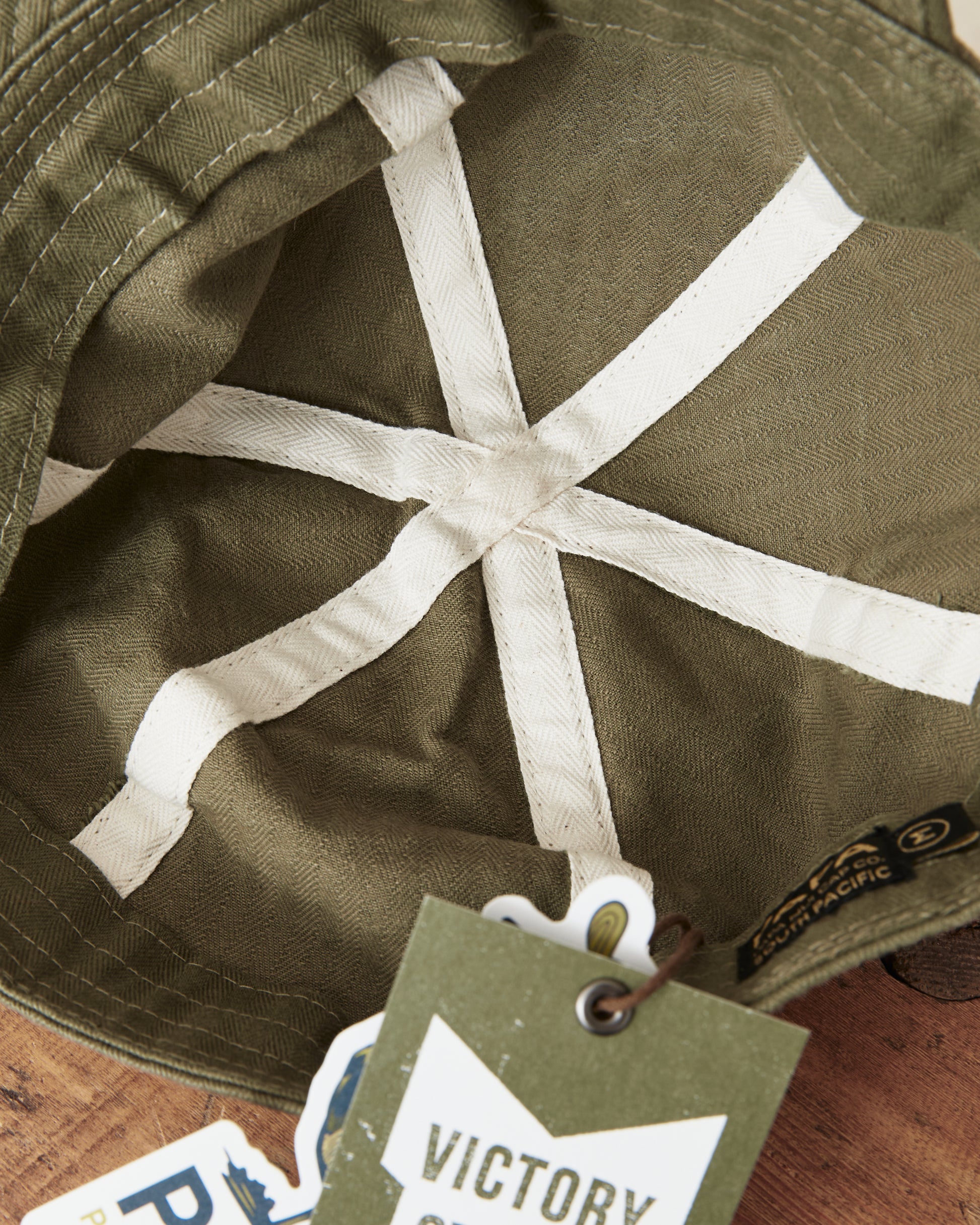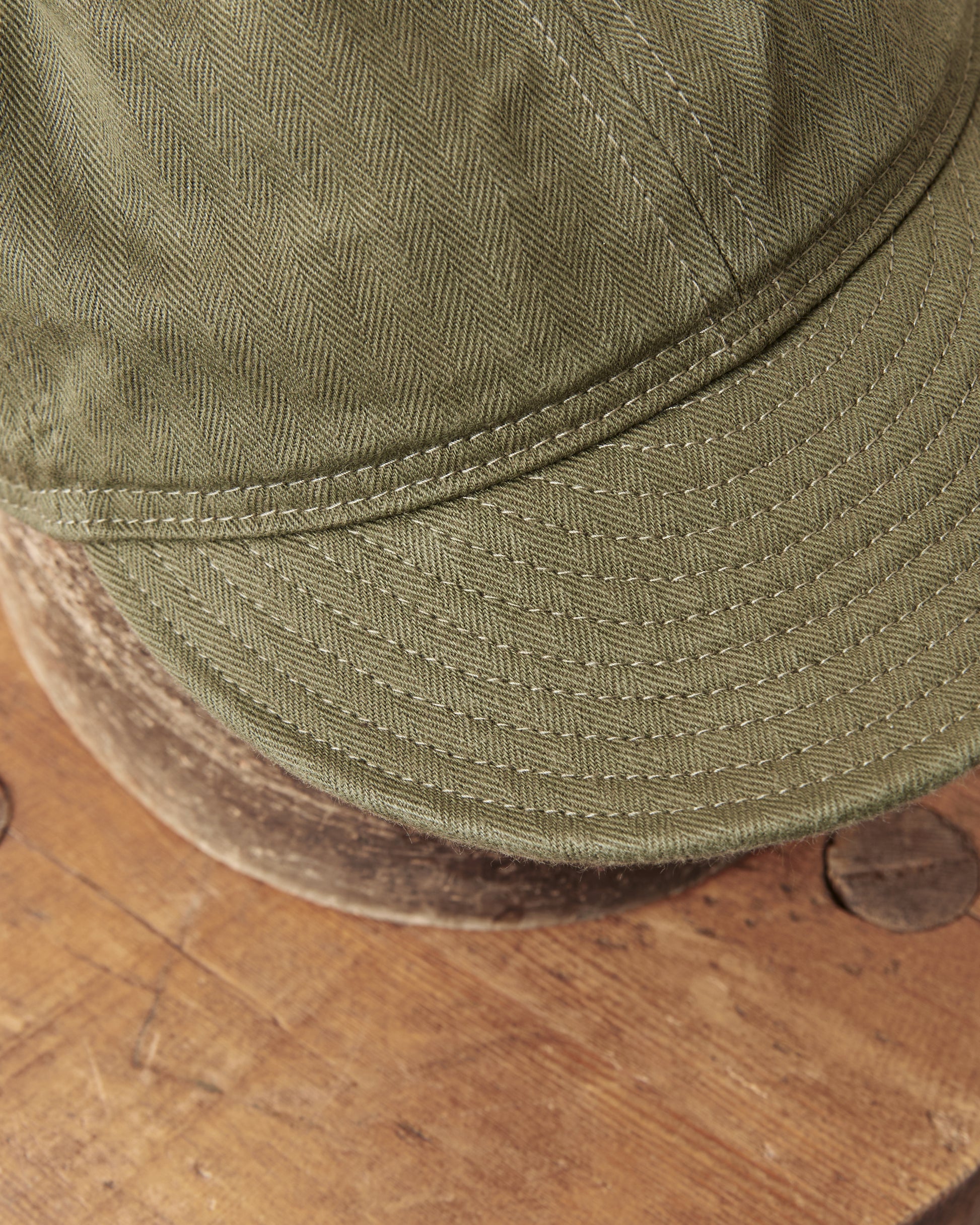 ‘Charlie’ is there! An Angel who’s got your back, twin 50’s pointing towards the sun, covering the sky, covering your ass. The Papa Nui Cap Co. Research division presents after a long fascination with the ubiquitous A-3 Mechanics Cap, an essential addition to your flight kit, The Tail End Charlie Cap. Following the premise that gun turrets are tightly cramped spaces, the Papa has created a HBT cap that is better suited for issue to ball turret and tail gunners. A cap that captures all the history and romance of the A-3 but offers up a re-designated visor shape that provides less obstacle and more freedom of movement in a tighten environment. This cap is built solid and is not General Issue!