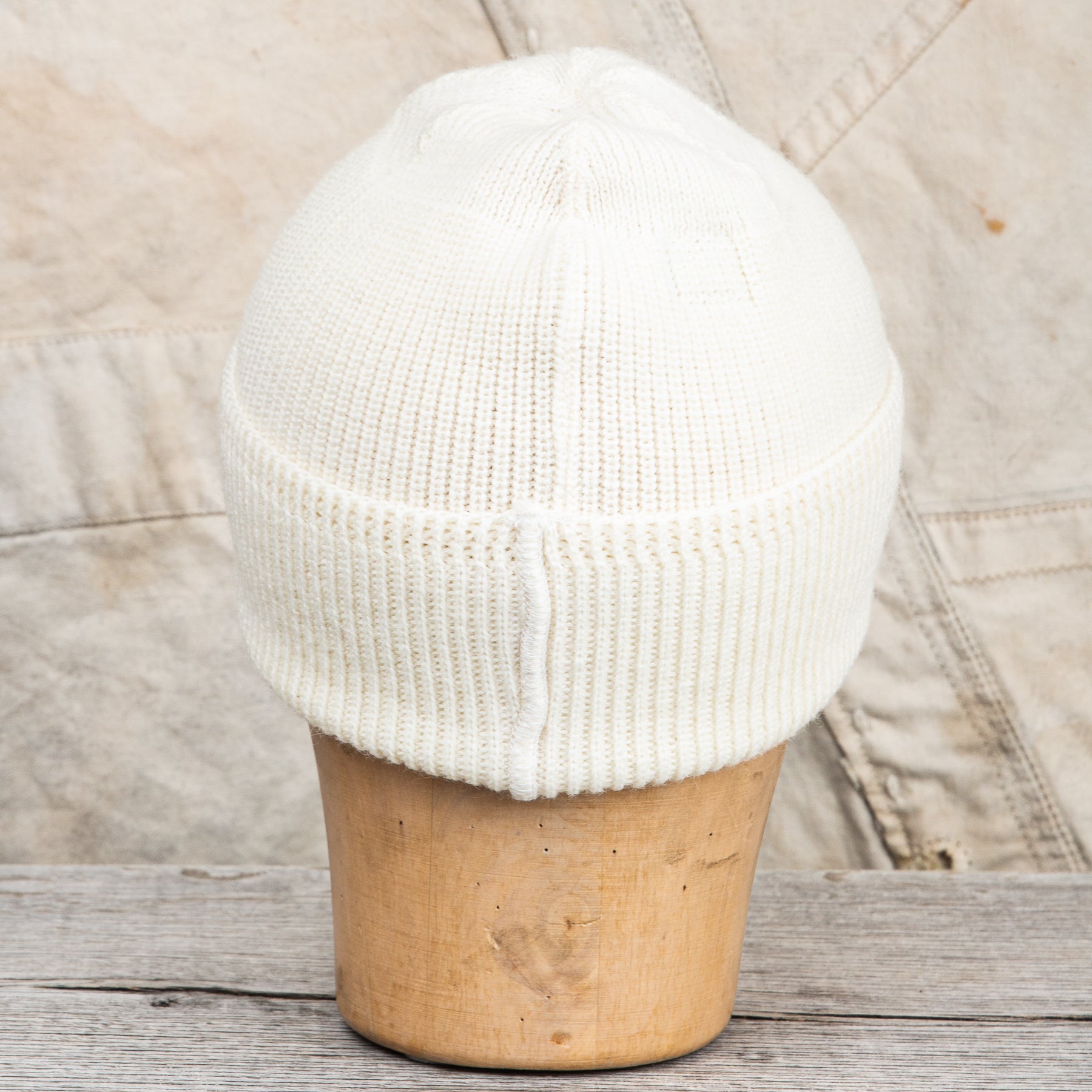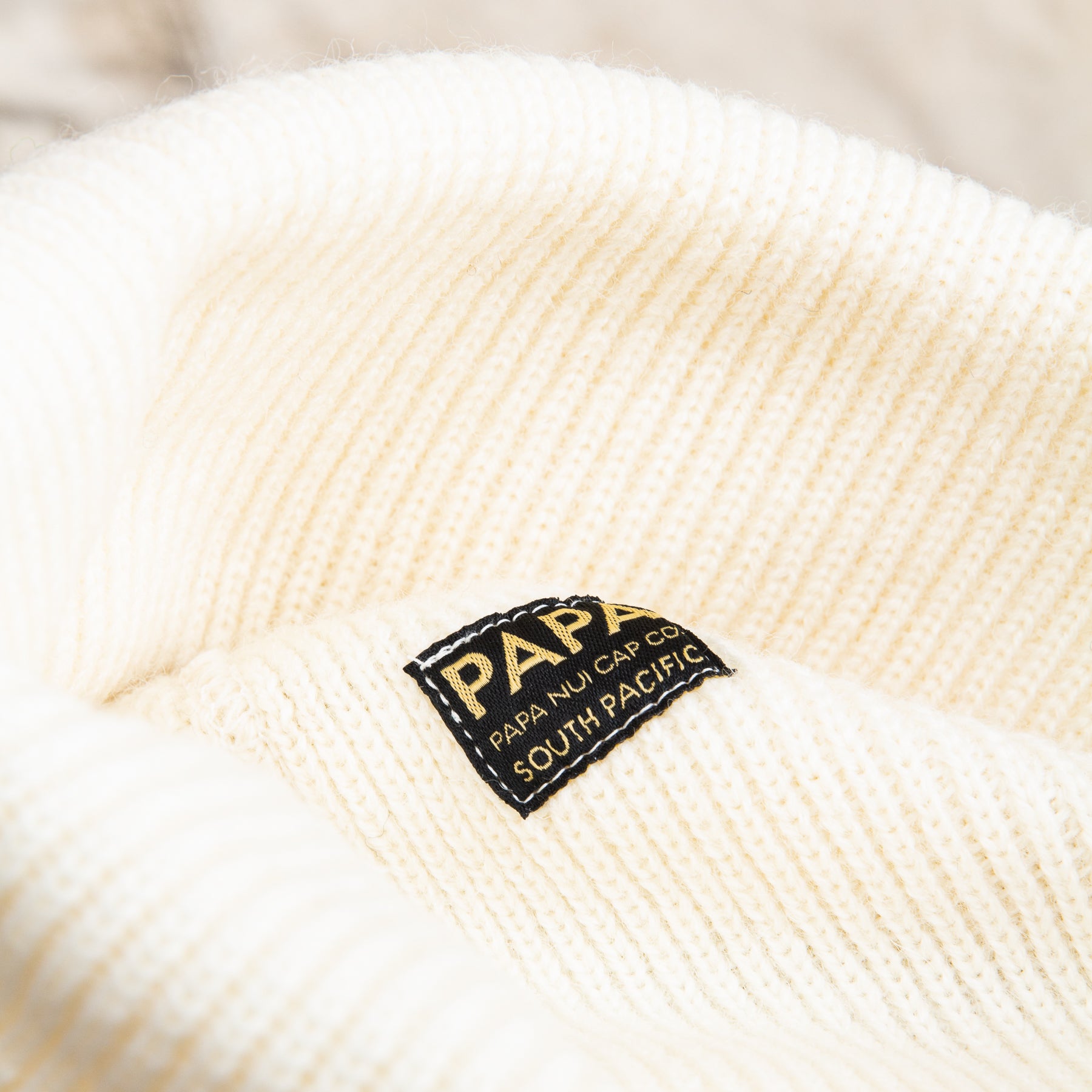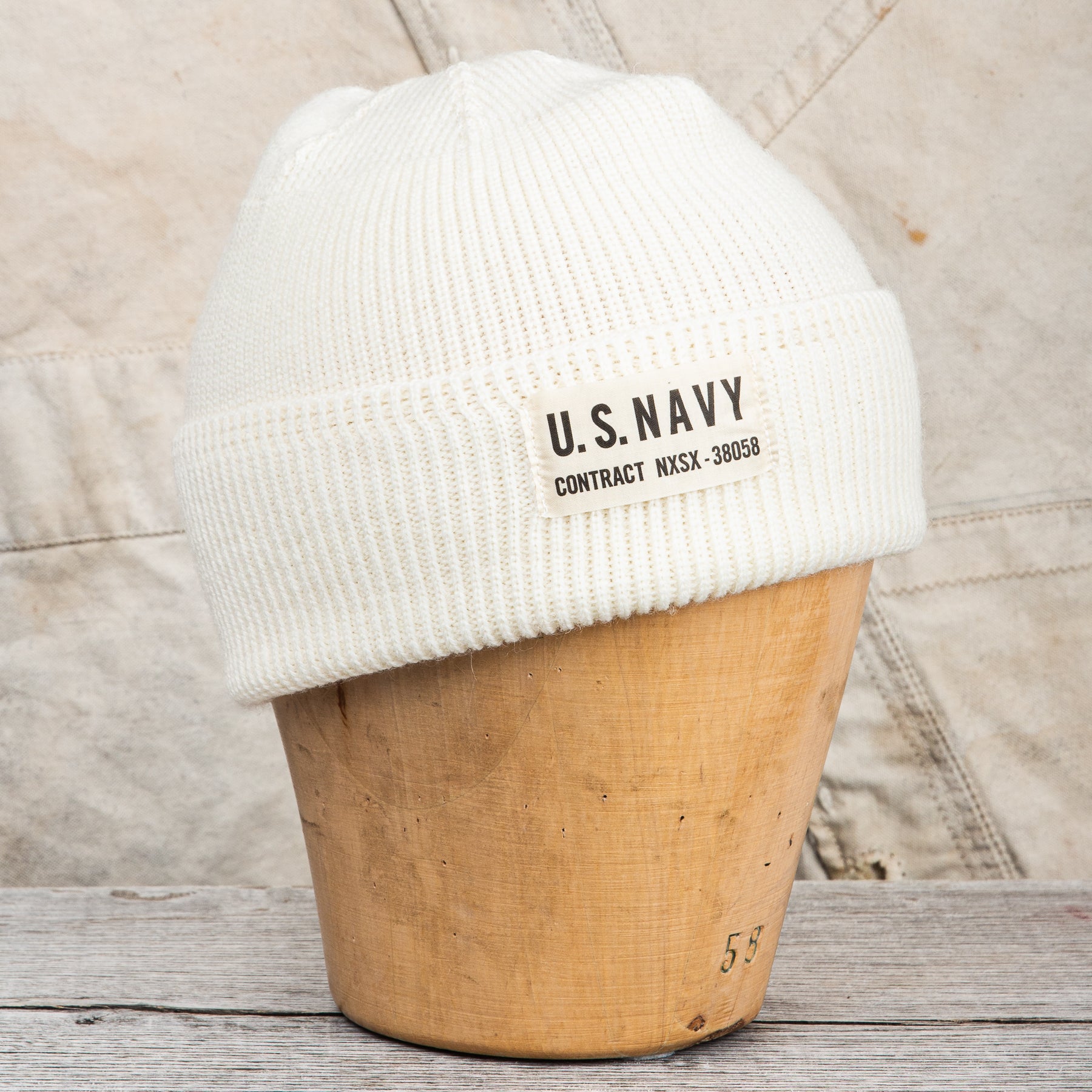 This is a Papa Nui reproduction of the classic USN General Issue Watch Cap. Its a beautiful rendention of the classic WWII Naval knit, fully machined knitted in Japan in pure wool and featuring a USN contract tag. The reason for the US Navy to wear wool is that wool has the natural capacity of keeping the heat even when soaking wet. If one would find oneself in an extreem situation where ones wool clothes are soaked and the weather is cold you should never undress the wool garments because it's ability to keep you warm could actually be a mater of life and death. That's also the reason why wool is our favorite fiber.