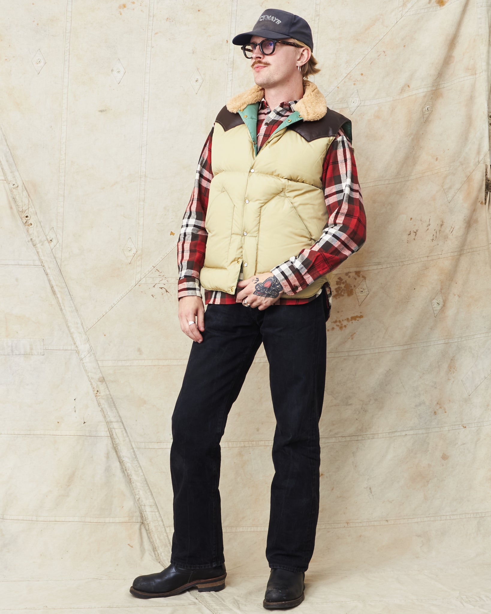 This is a true icon when it comes to the history of functional outdoor clothes. The Rocky Mountain Featherbed vest was originally made back in the 1960's and the idea was to take the traditional western style garments and combine them with the new technical materials to make outdoor garments for a new era to be worn by lovers of the great outdoors. The vest made of sturdy nylon filled with down combined with the Cowboy aesthetic using a typical western shoulder yoke became a hit and could soon be seen in every other ski slope! Today the vintage ones from the 60s/70s are sought after and can fetch a high price on the second hand market!