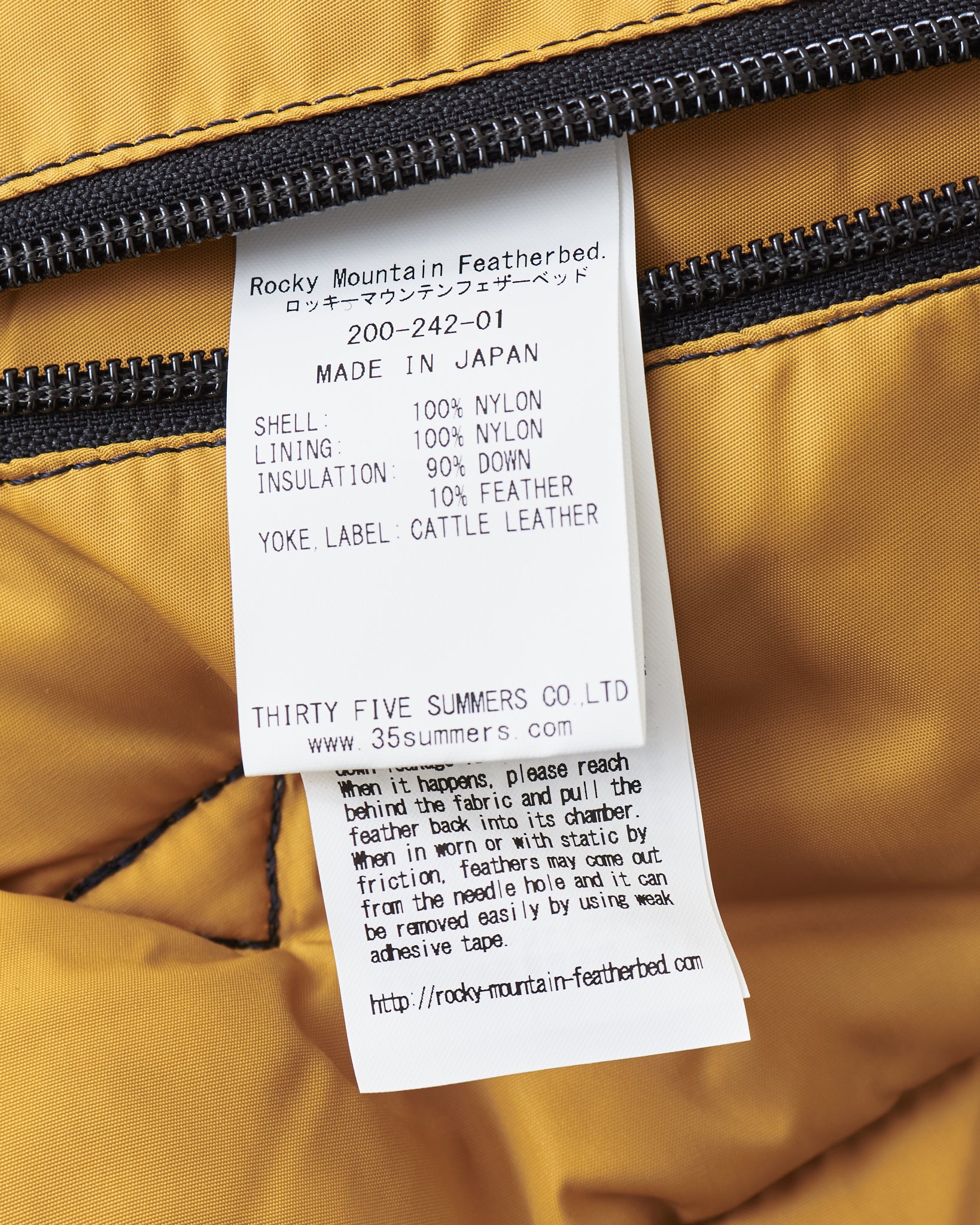 - Insulation 90% down 10% feathers