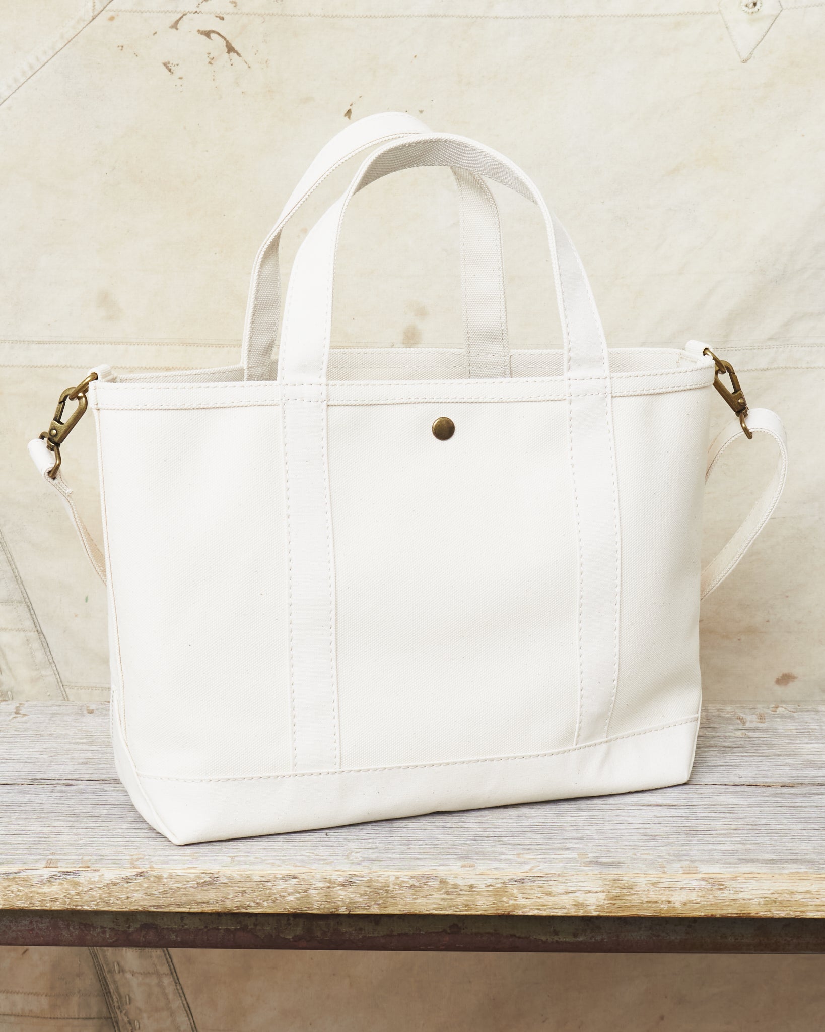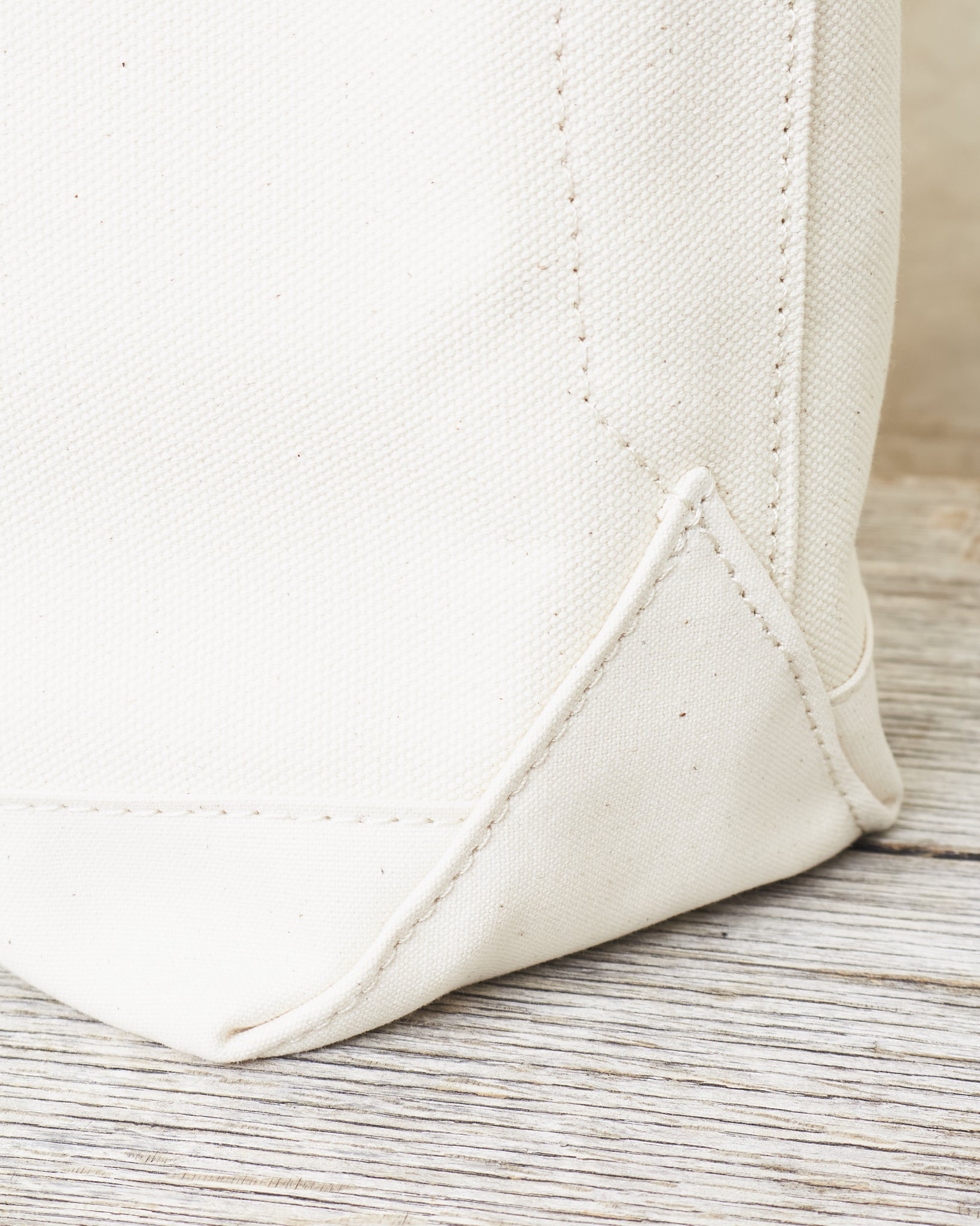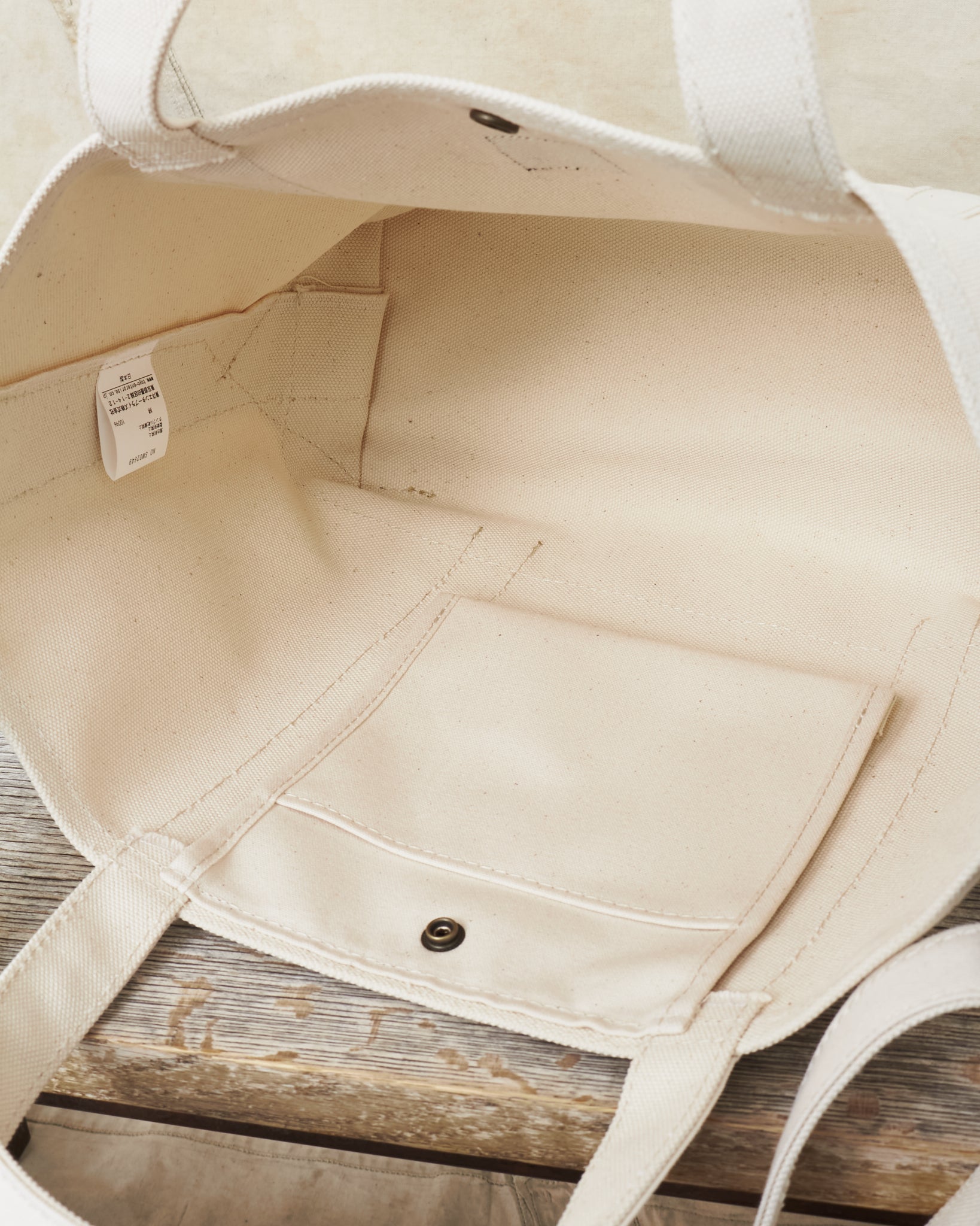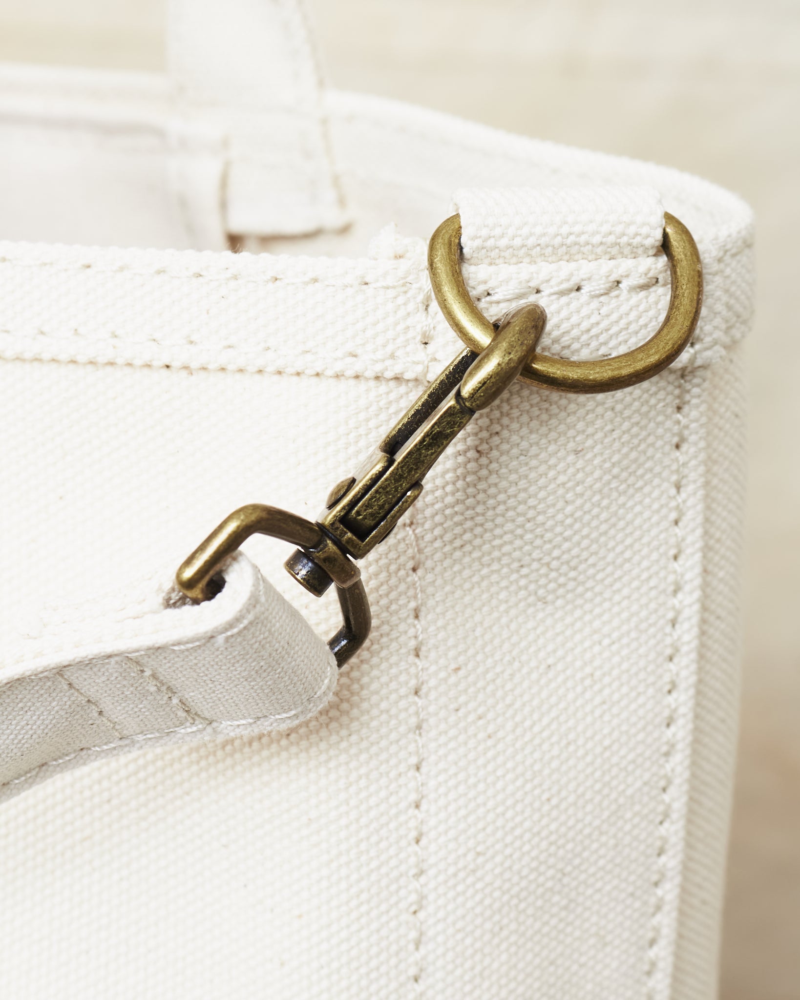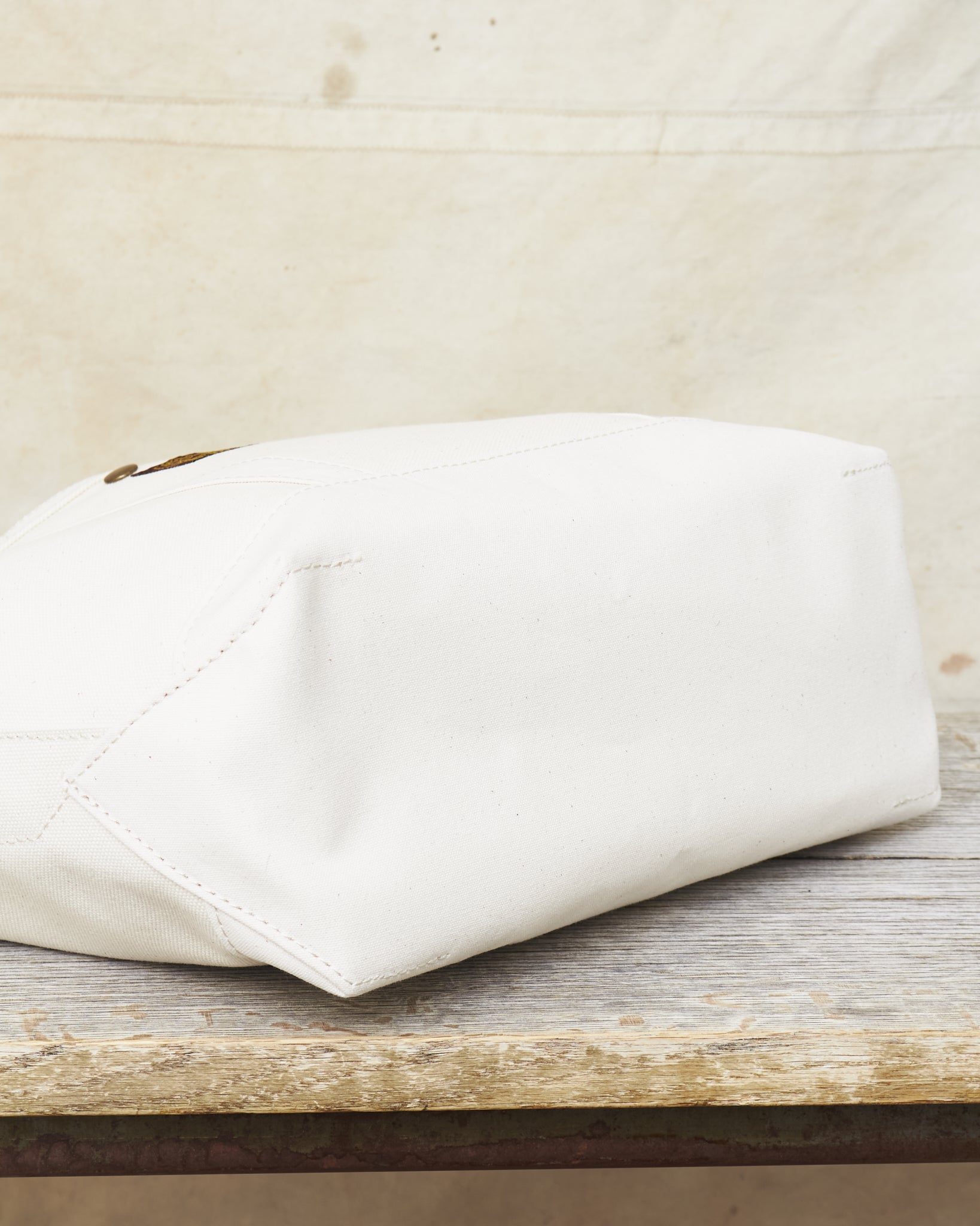 The body of this bag is made out of a 10 oz 100% white cotton duck fabric, the handles are made of heavy cotton fabric. Equipped with D-rings on each side of the bag and a sturdy shoulder strap.