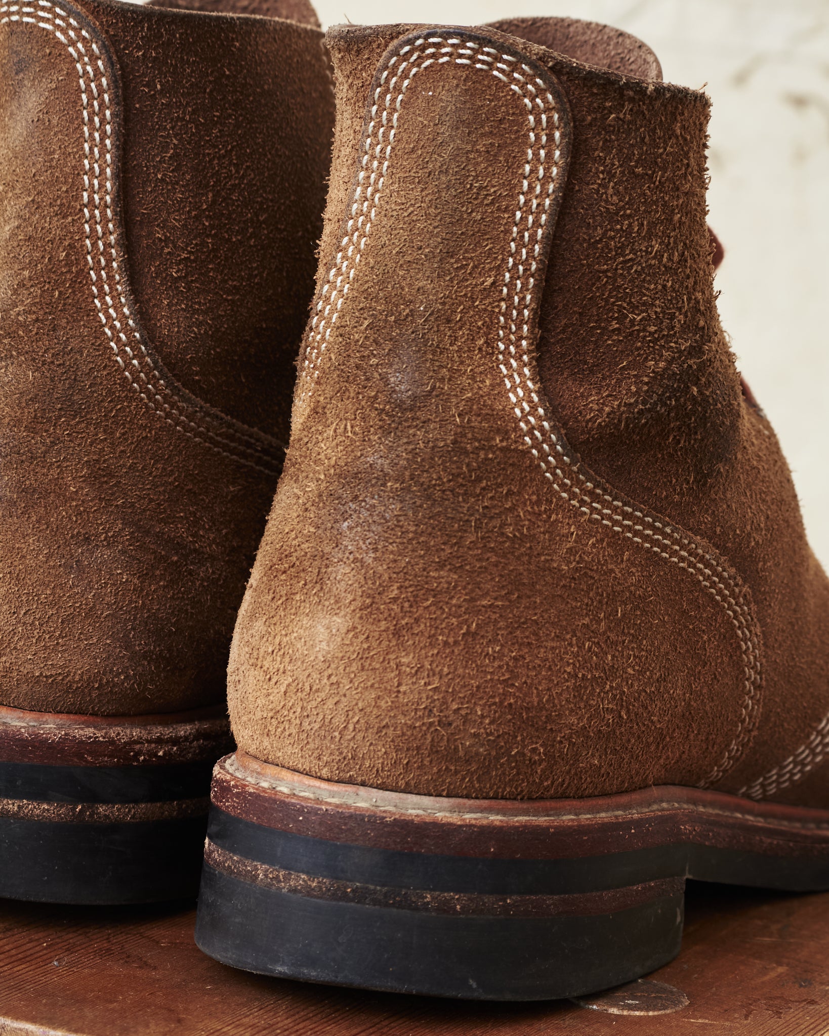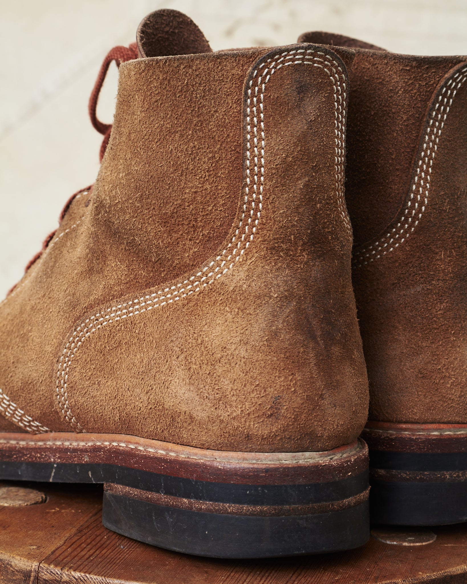 These boots are made from start to finish by experienced craftsmen in Japan with no expenses spared in the sourcing of materials. The uppers are made from the highest grade Horween Chromexcel natural rough out leather which is famous for it's beautiful aging properties and long lasting durability.