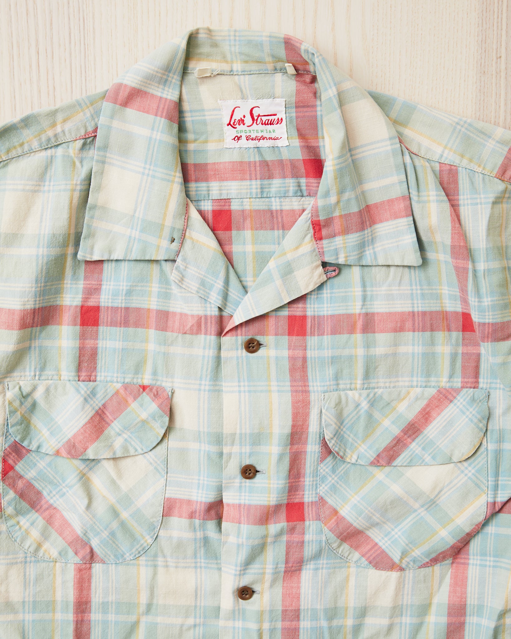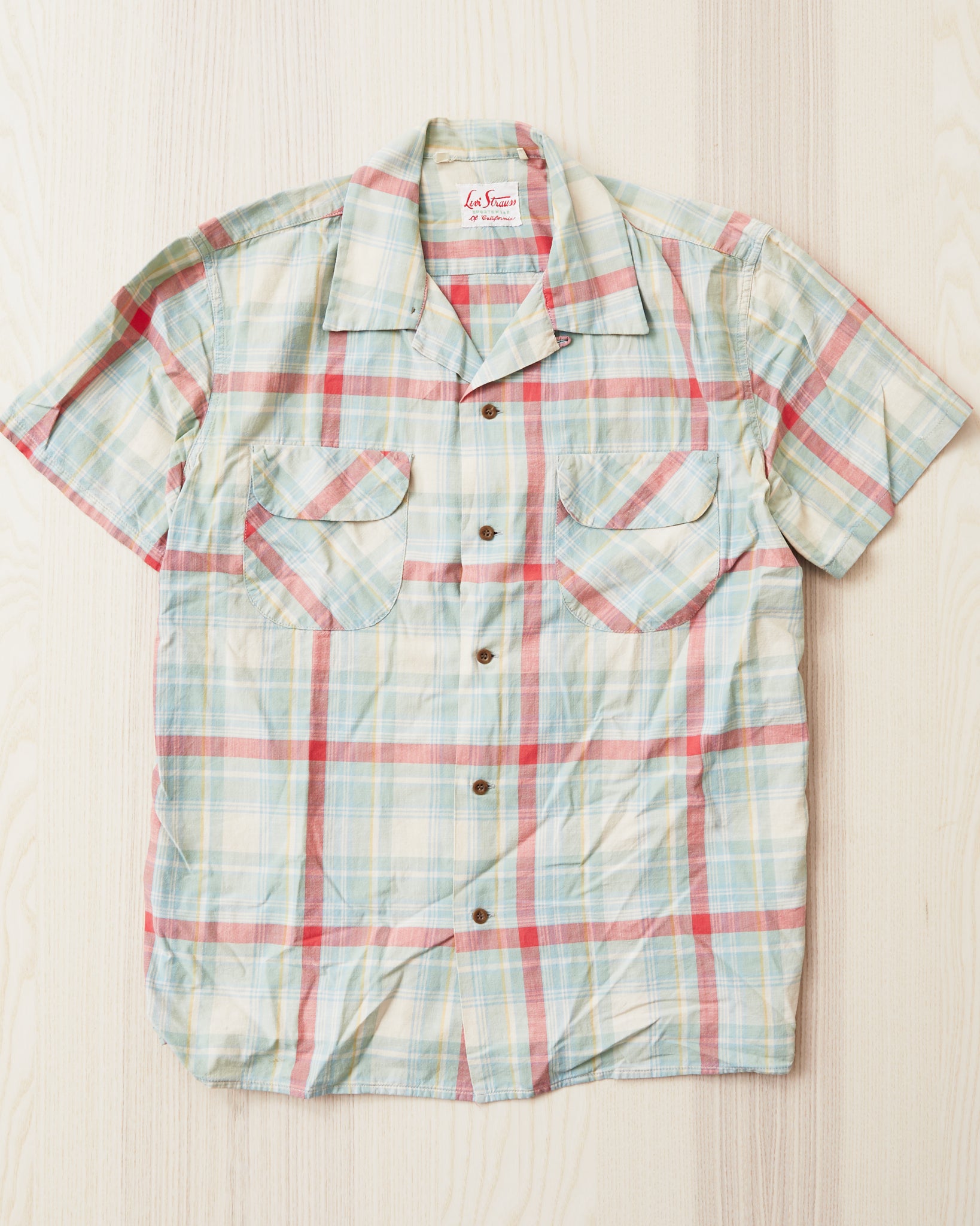 This shirt is a Second Hand Levi's Vintage Clothing checkered cotton fabric shirt in size M. It's a reproduction of a 40's/50's Levi's shirt and if we're not mistaken.