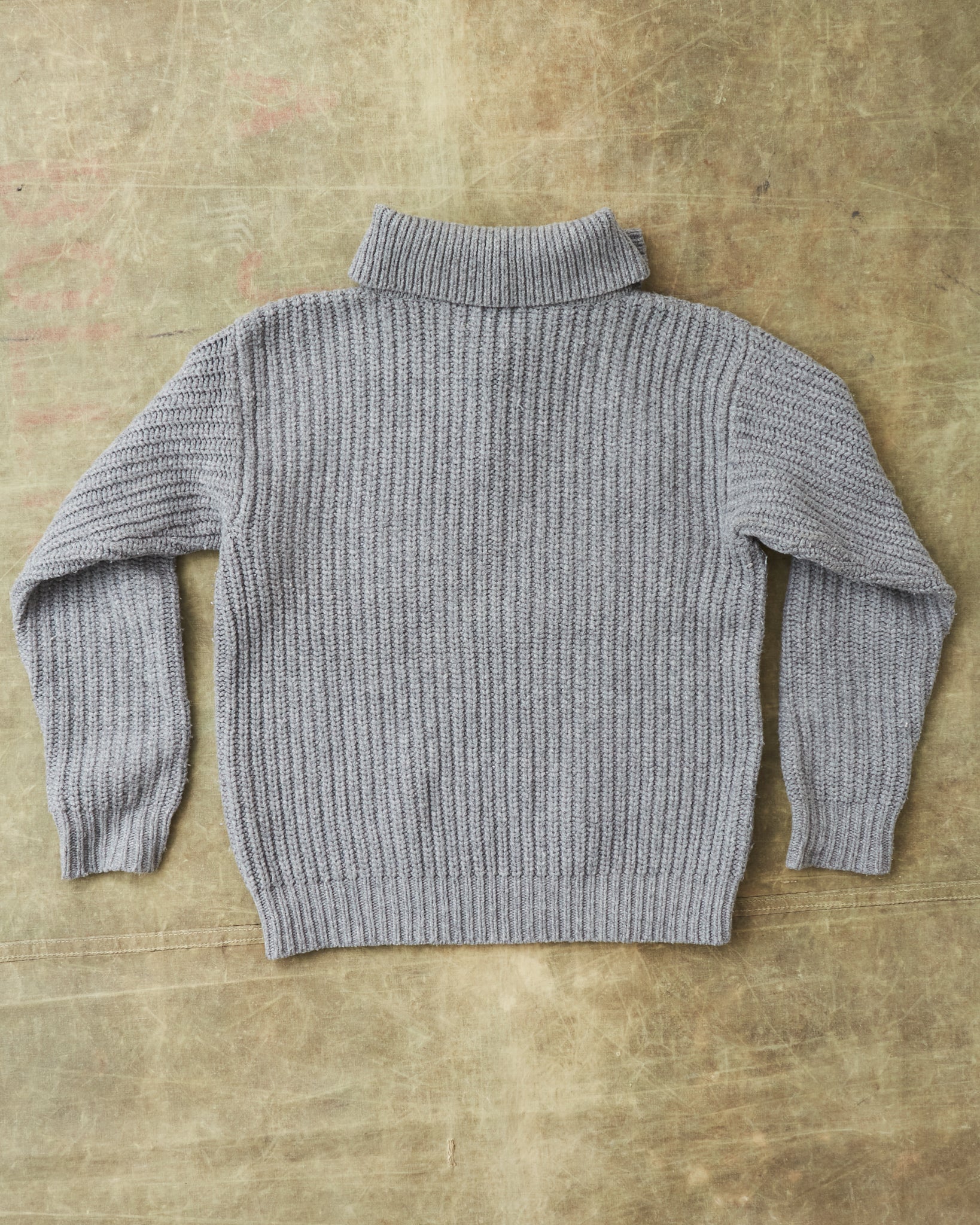 This is a Second Hand LVC cable knit sweater. Inspired by 1930's varsity sweaters, it comes with a shawl collar for extra protection against the cold and a cable knit body. The label says this piece was made as a sample garment.
