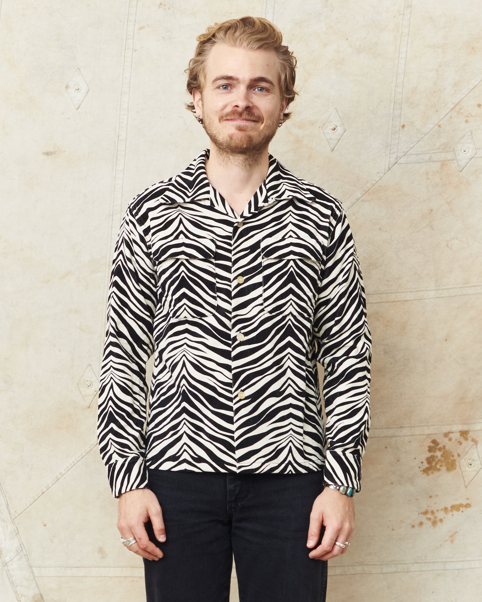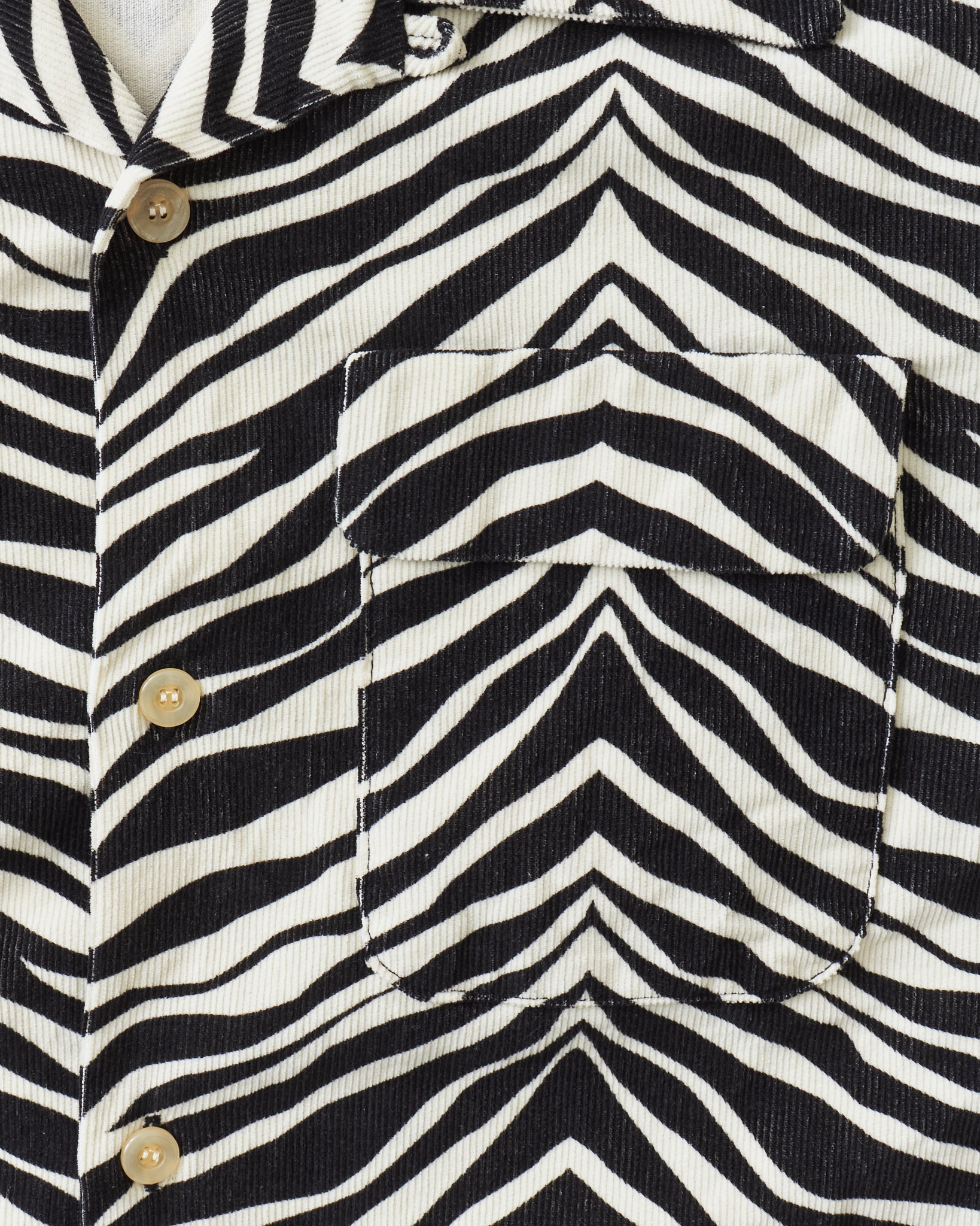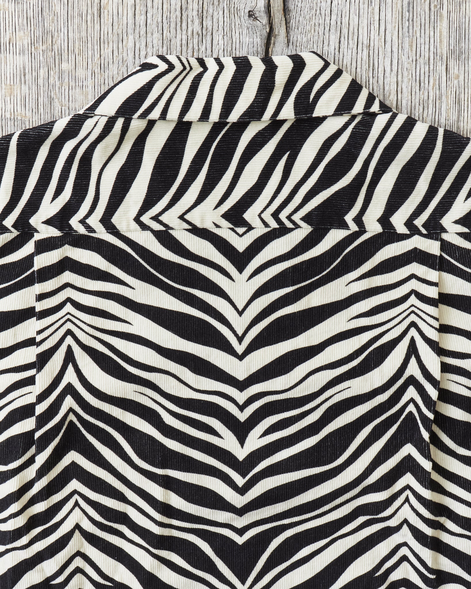 The shirt is made in a zebra printed cotton corduroy quality and the texture is made to feel and look like vintage garments from the middle of the last century. The perfect shirt if you just like us, are looking to dress like Cisse Häkkinen.