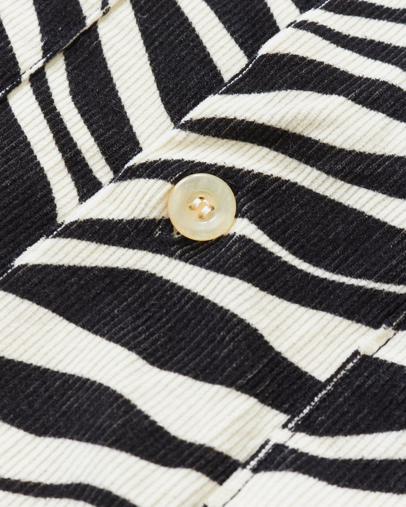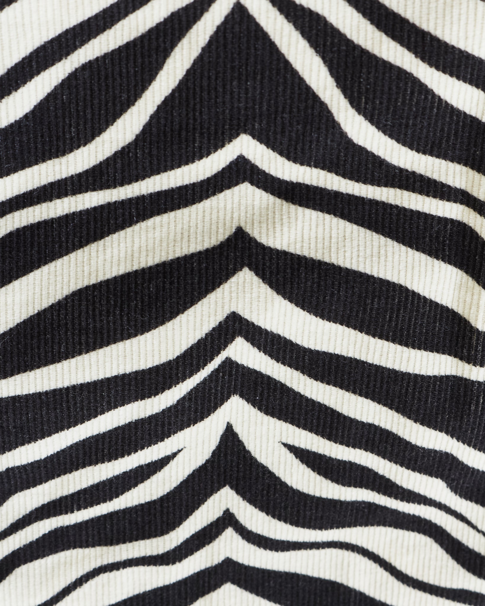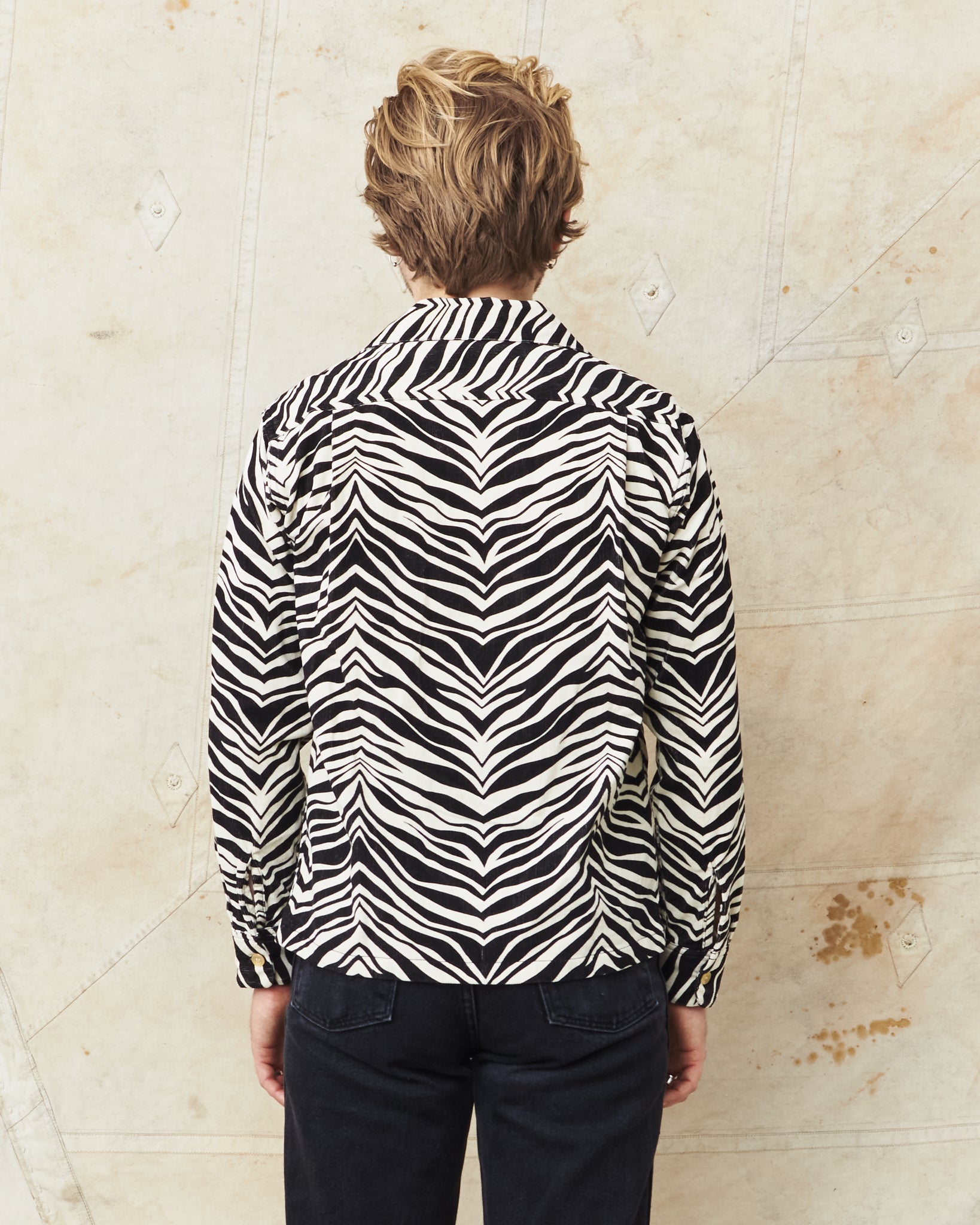 The shirt is made in a zebra printed cotton corduroy quality and the texture is made to feel and look like vintage garments from the middle of the last century. The perfect shirt if you just like us, are looking to dress like Cisse Häkkinen.
