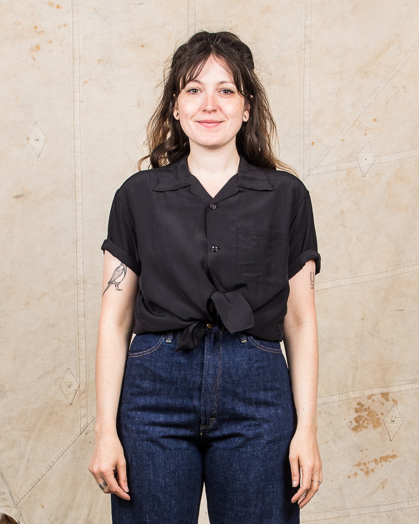 This is a reproduction of a vintage bowling shirt produced in the mid 20th century. The rayon fabric used has a nice drape and is carefully reproduced to see the standard of vintage originals.