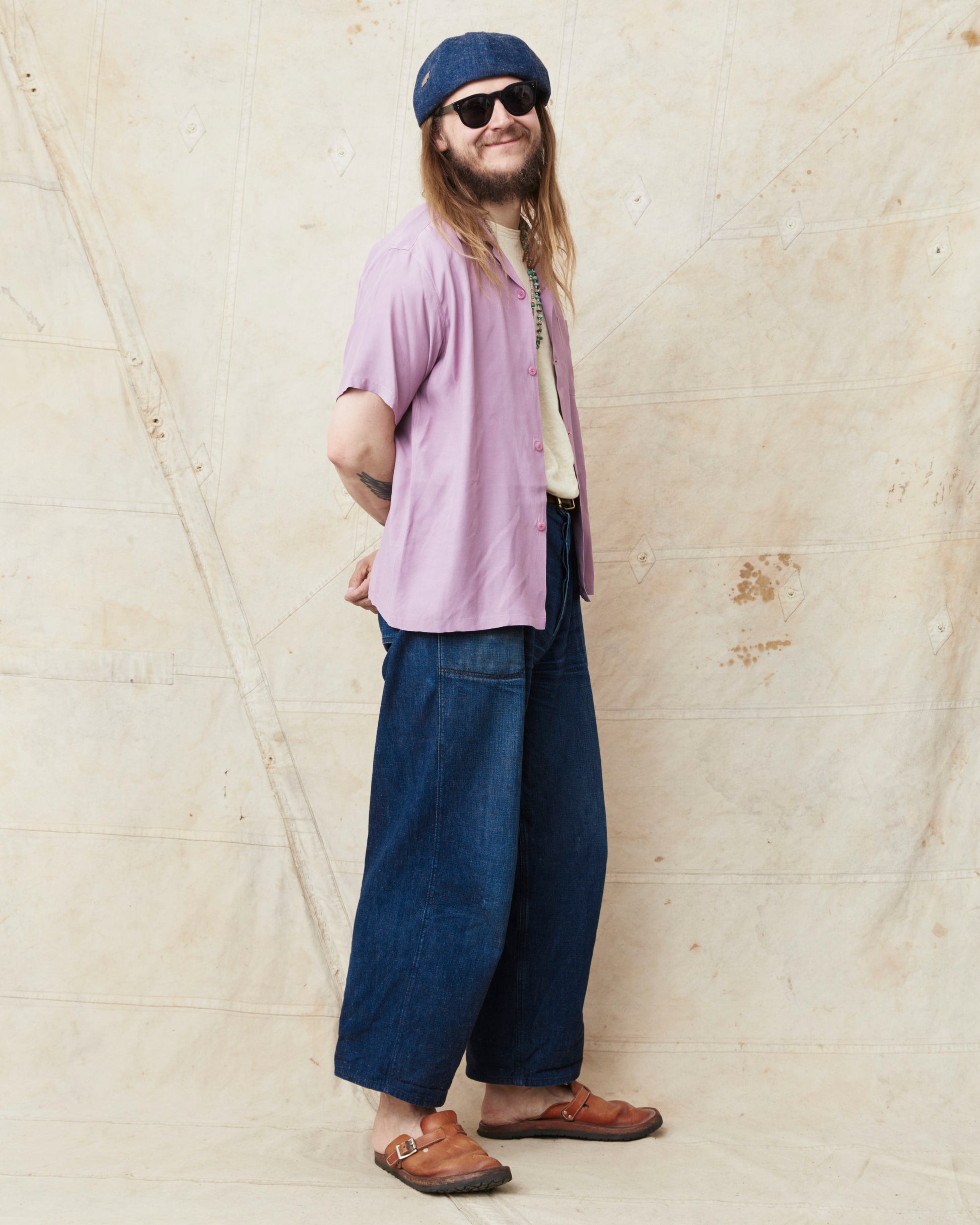 This is a reproduction of a vintage bowling shirt produced in the mid 20th century. The rayon fabric used has a nice drape and is carefully reproduced to see the standard of vintage originals.
