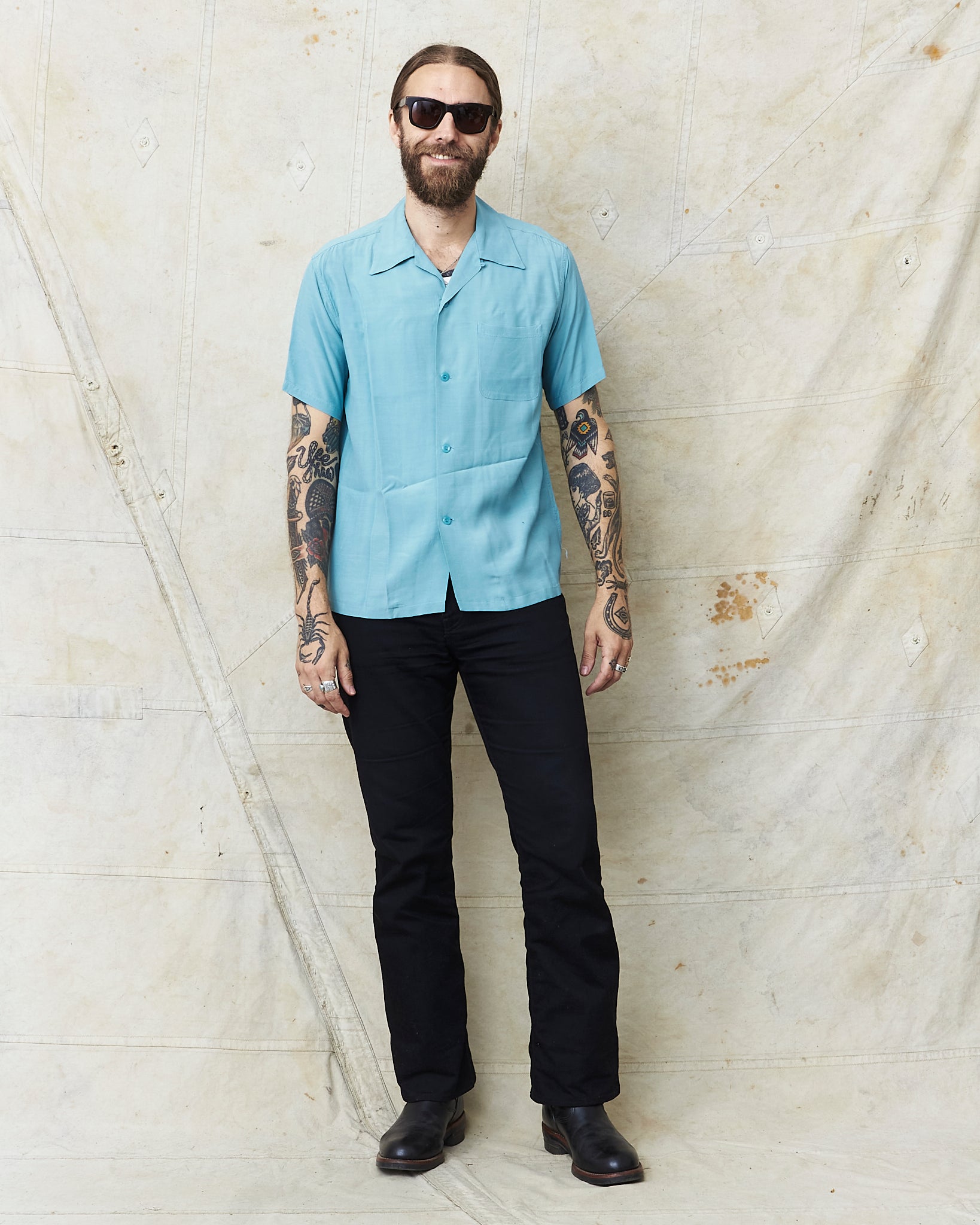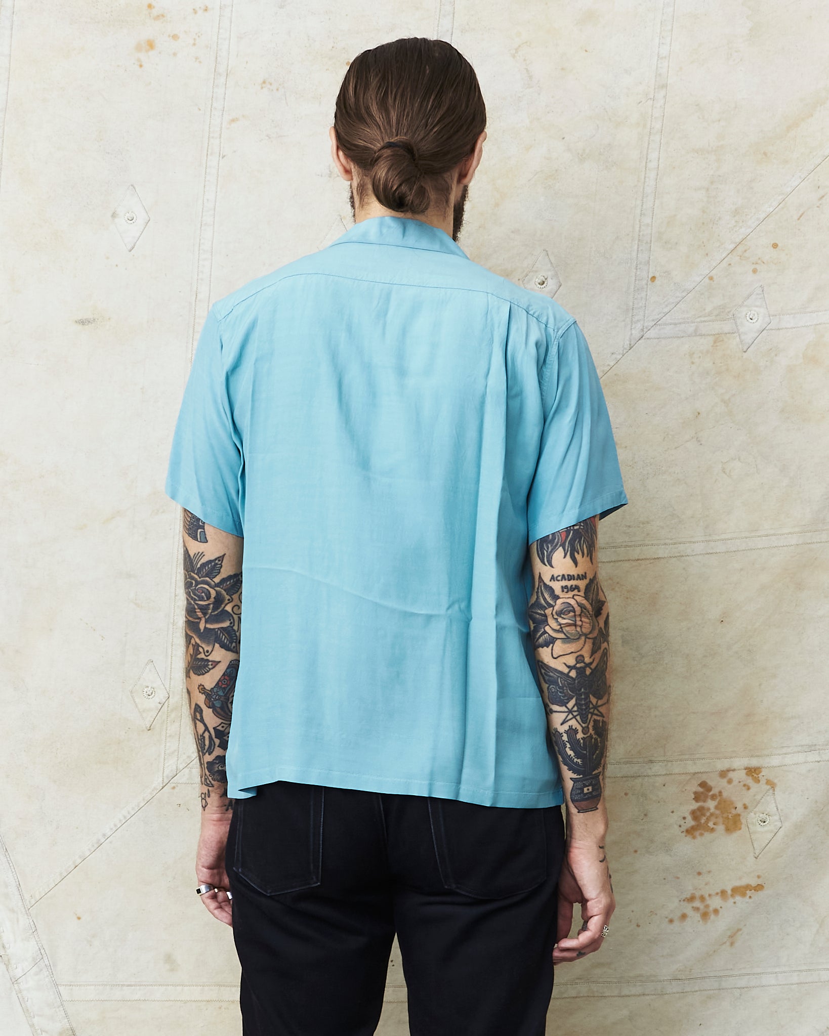 Style Eyes Short Sleeve Rayon Bowling Shirt Light Blue SE39259
