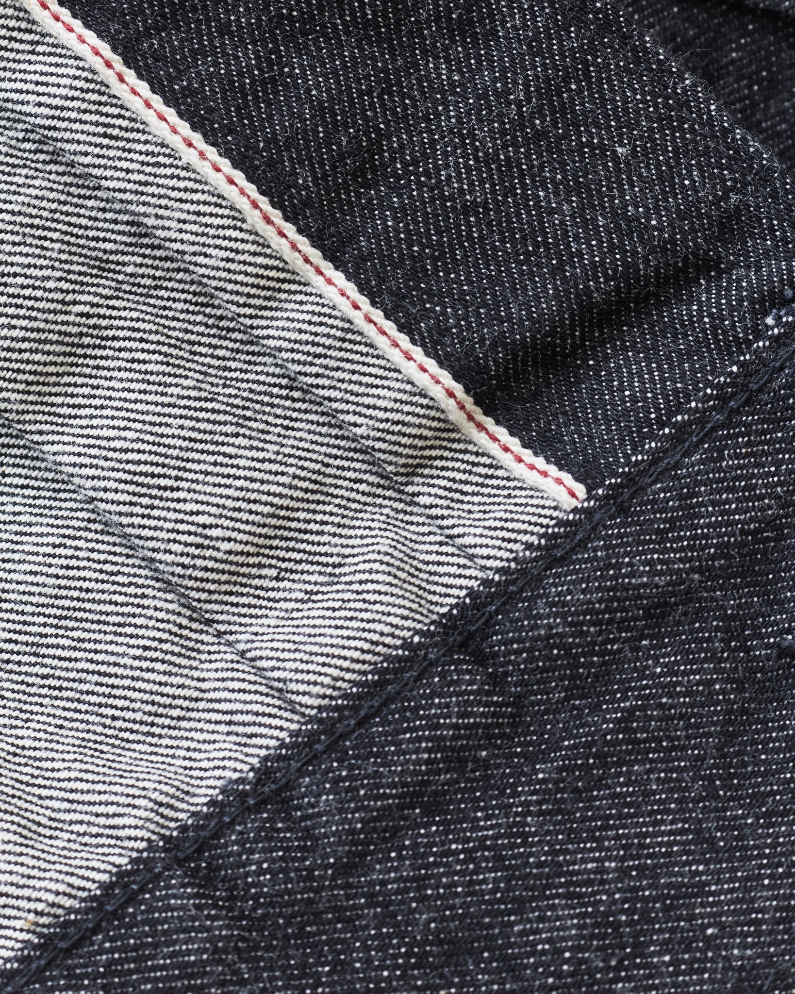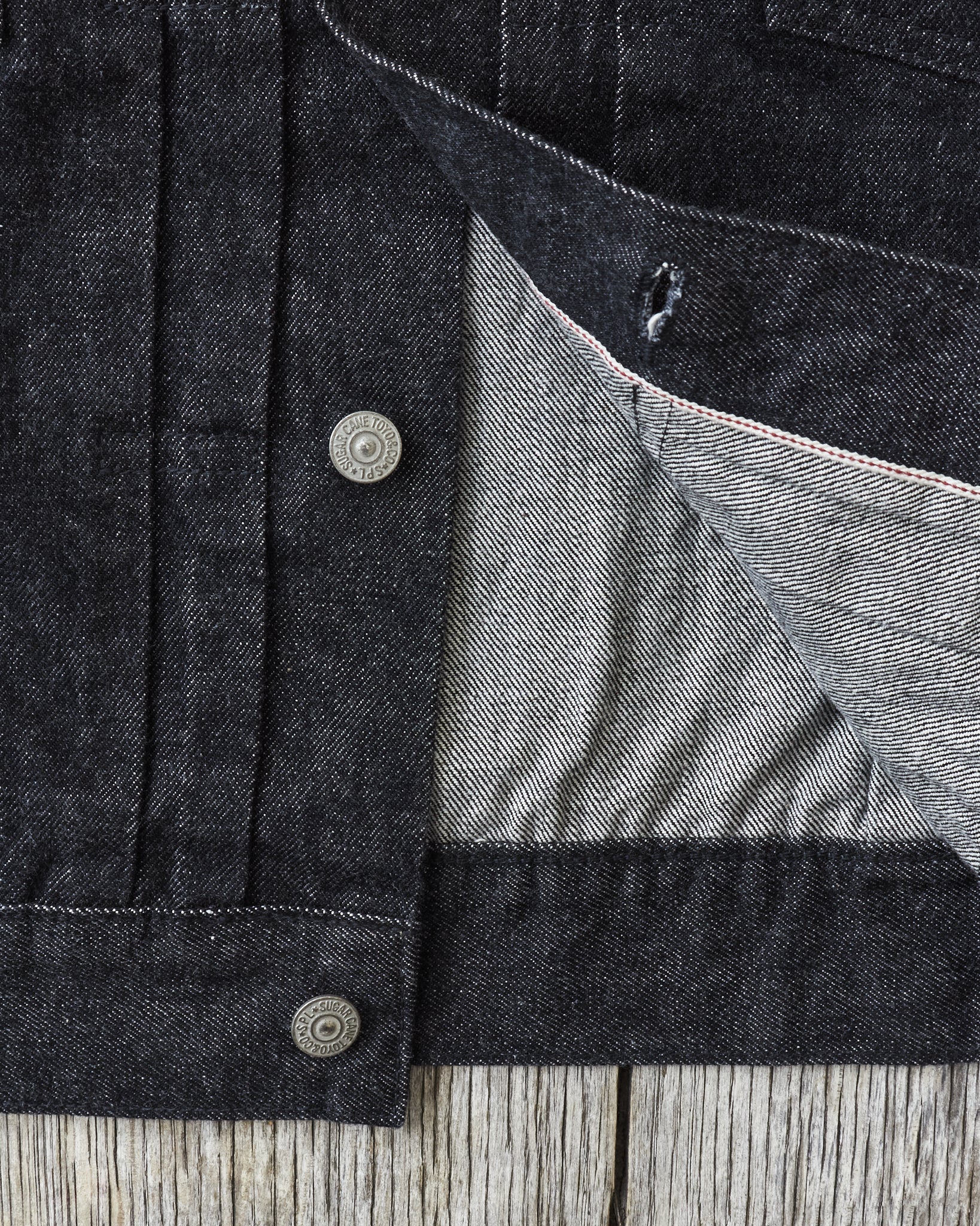 The fit stays true to the original 1950's cut, boxy and short. Just how we like it! The fabric used is a 14,5 OZ Japanese selvedge black denim that has been pre-washed so that the jacket will be soft to wear from the start and it won't shrink when washed for the first time.