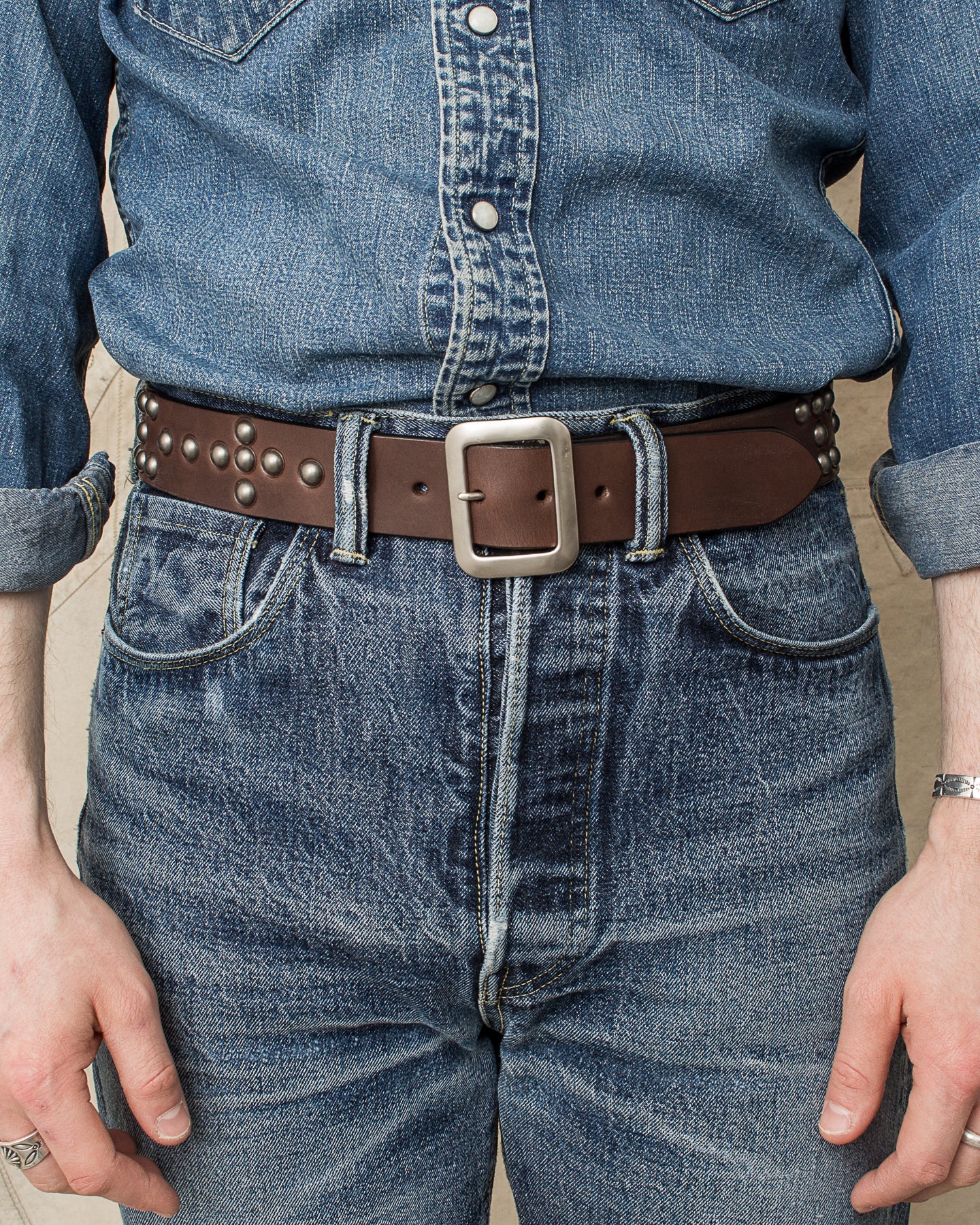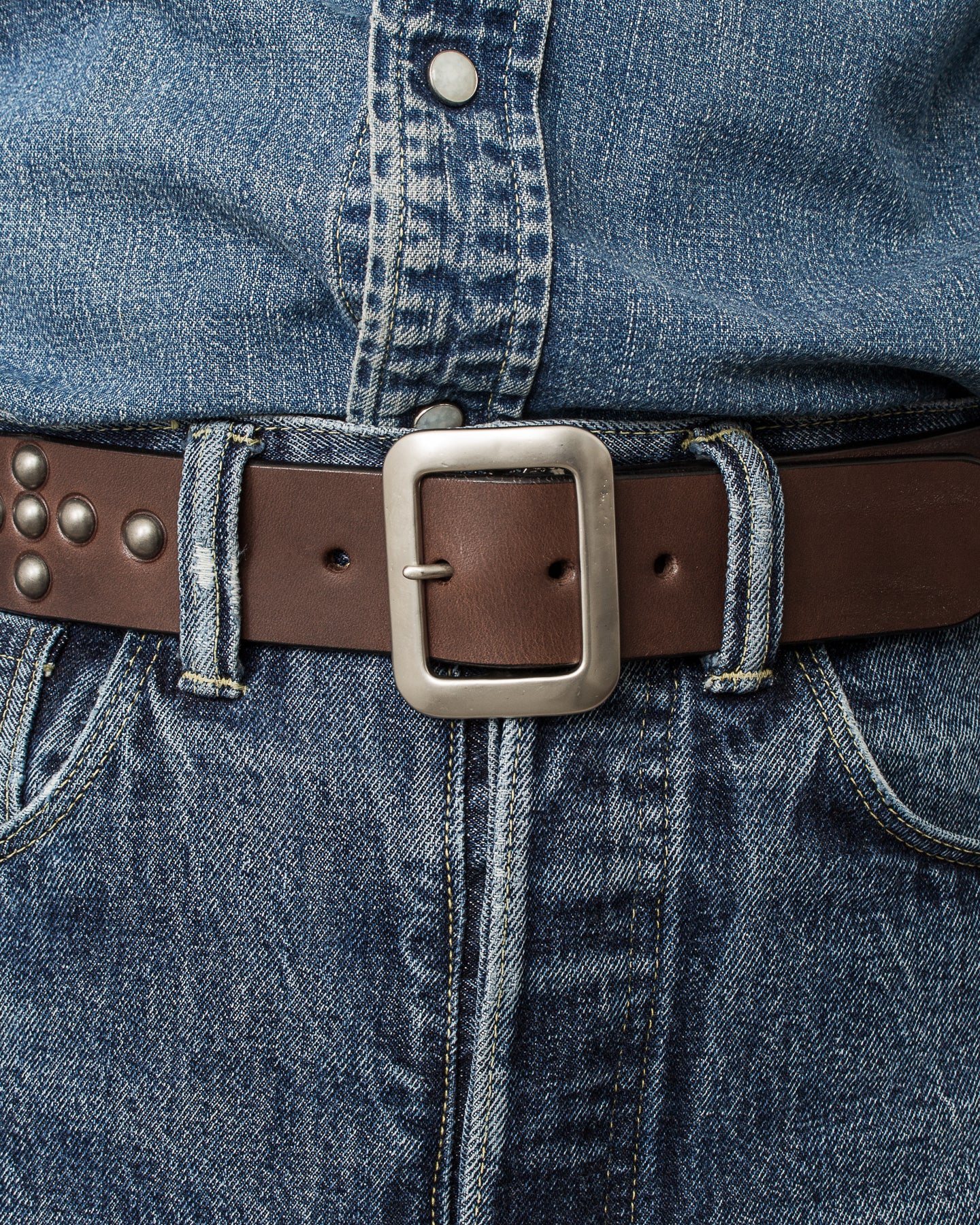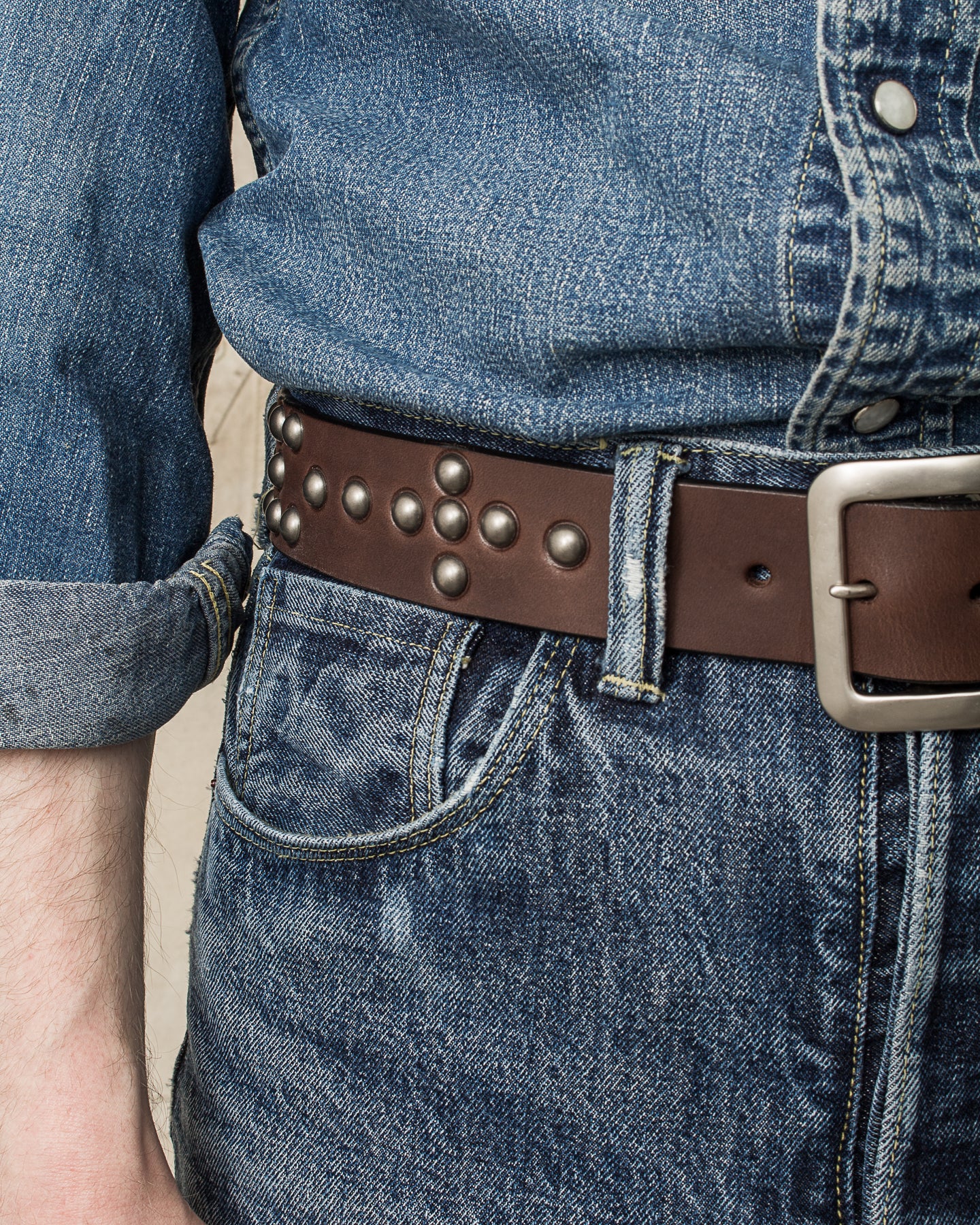 - Sugar Cane & Co. Brown Studded Leather Belt