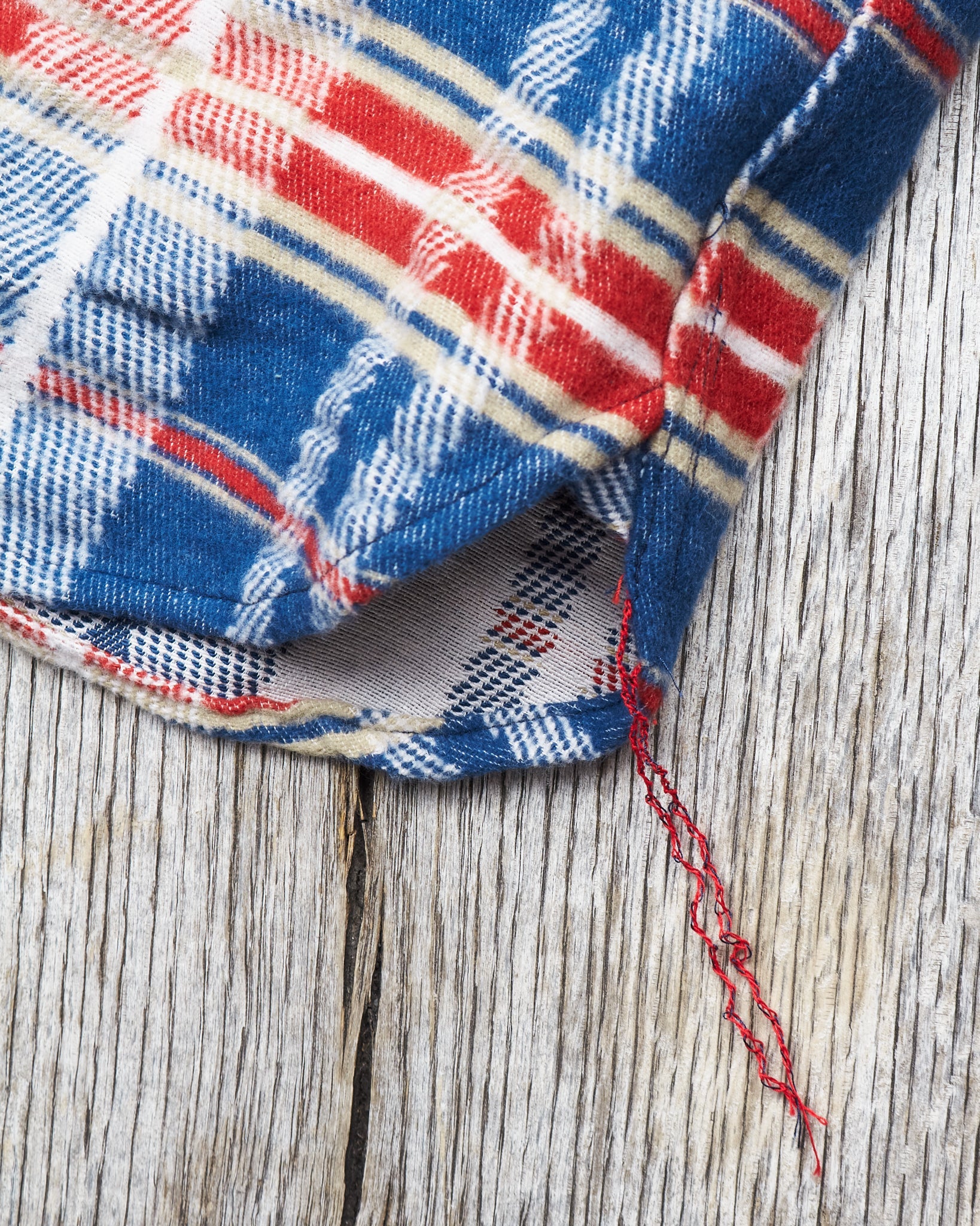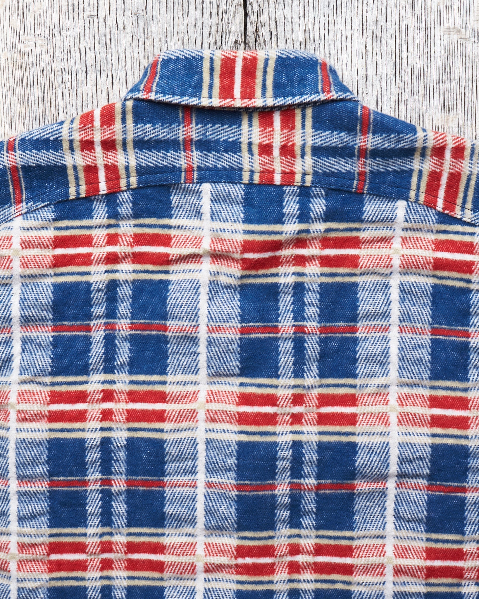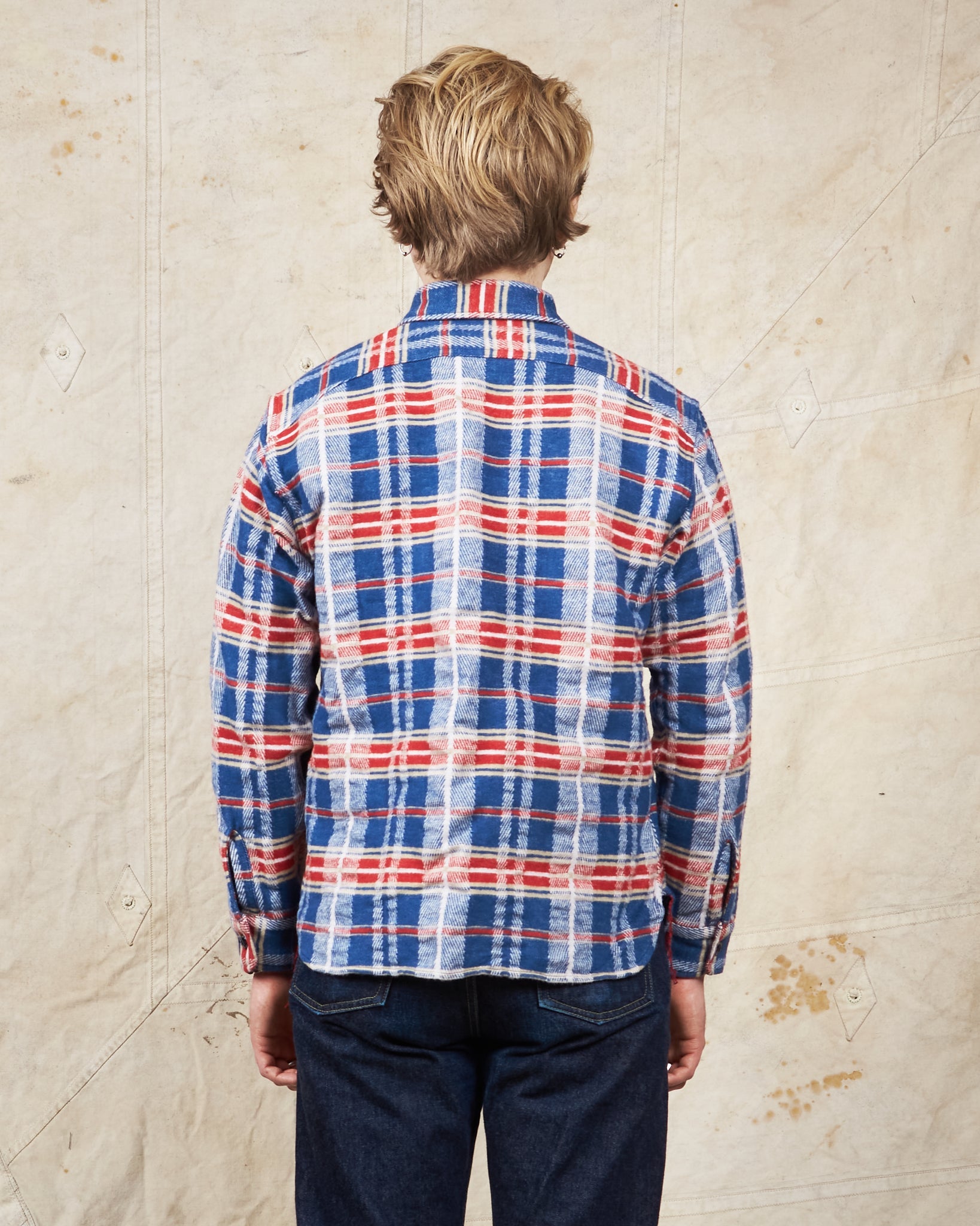 This is Sugar Cane's version of a classic work shirt, The inspiration comes from a vintage 50's work shirt. Sugar Cane have studied the original vintage shirt and tried to reproduce the fabric in the best possible way. It's a complex fabric structure consisting of a French twill with 1 color warp, 4 color wefts and a blanket weave with double weave stripes. The result is an incredibly nice flannel and the fabric makes it one of the softest and warmest cotton shirts we have had in our store.