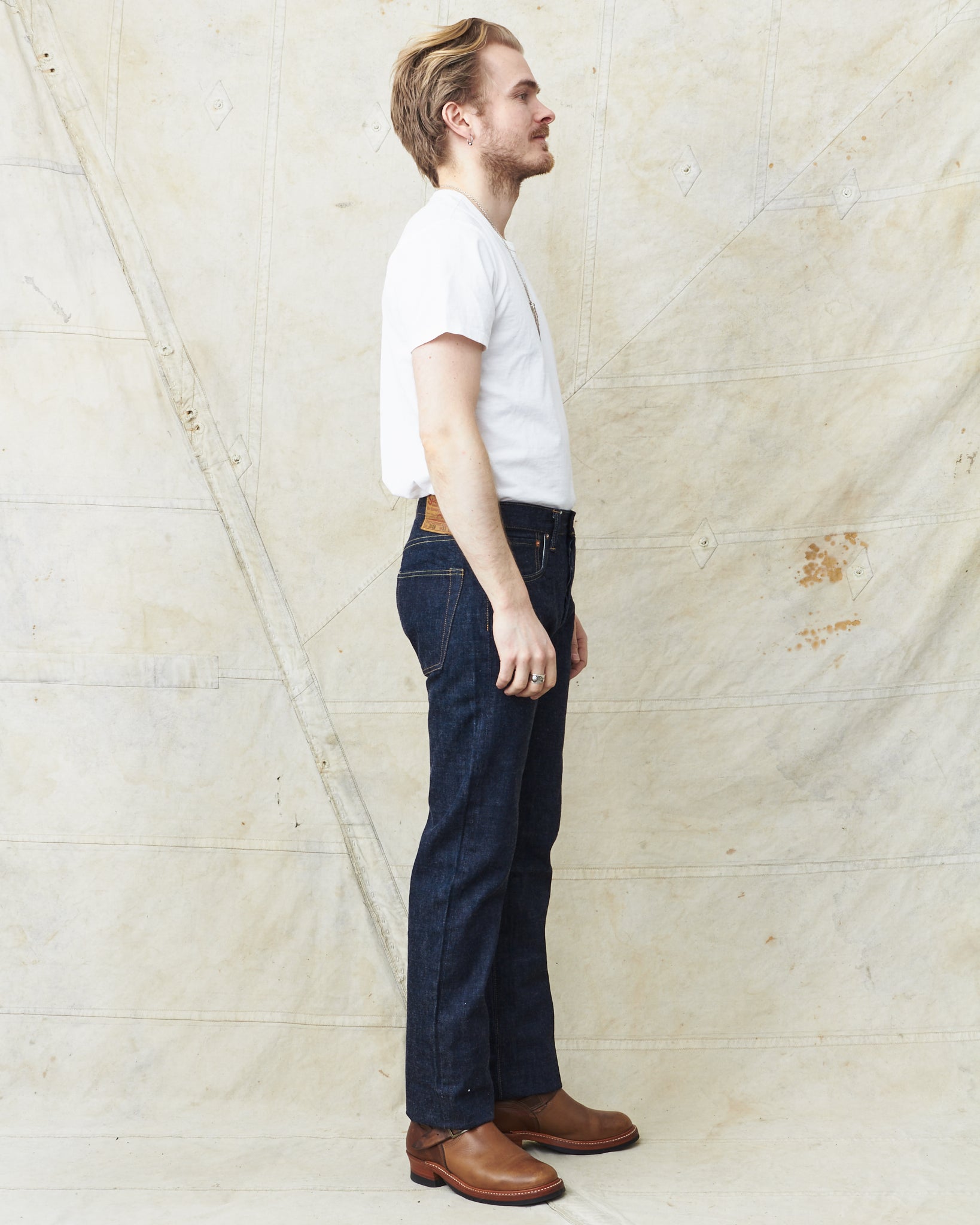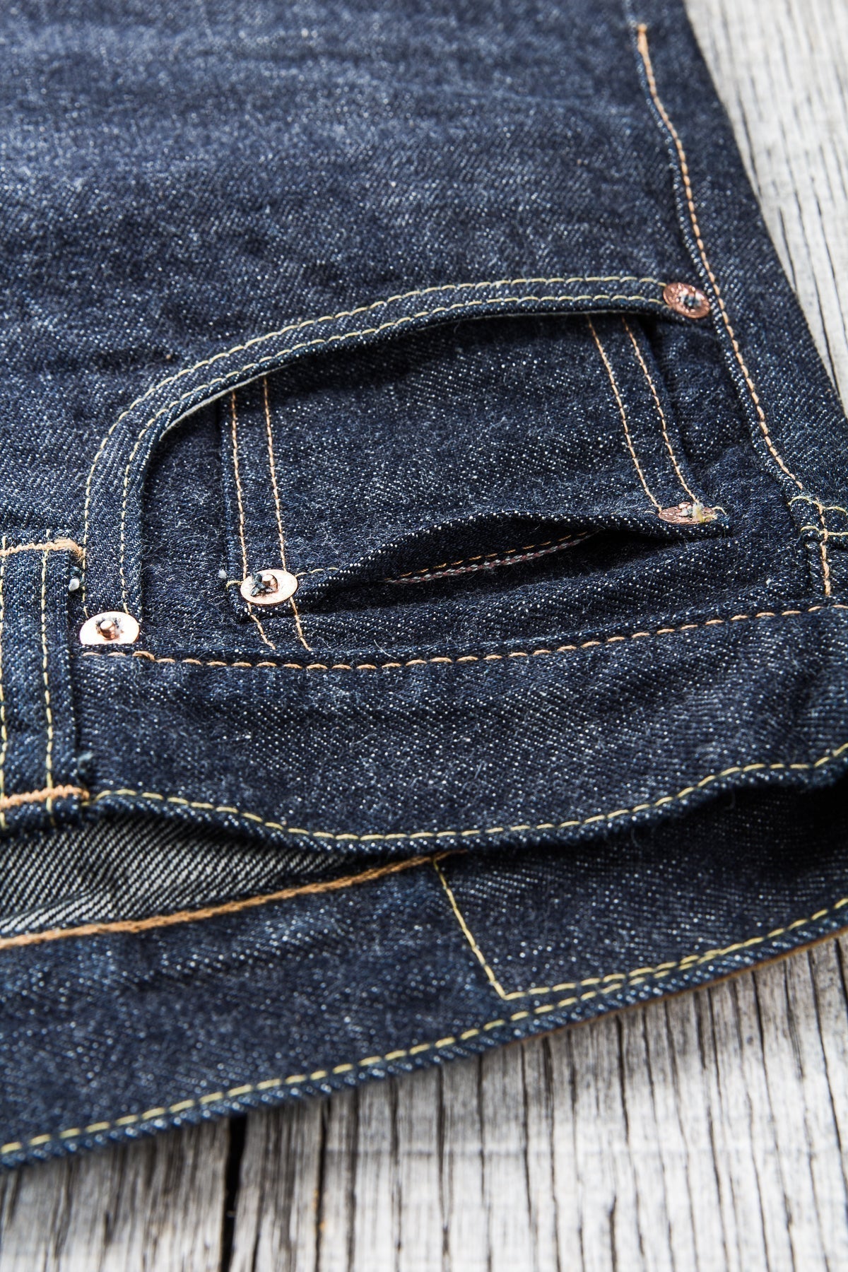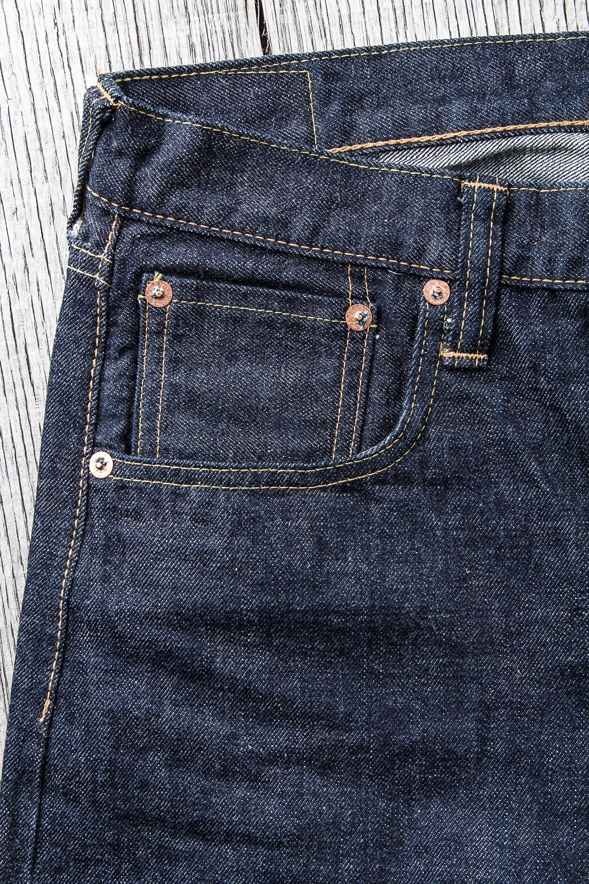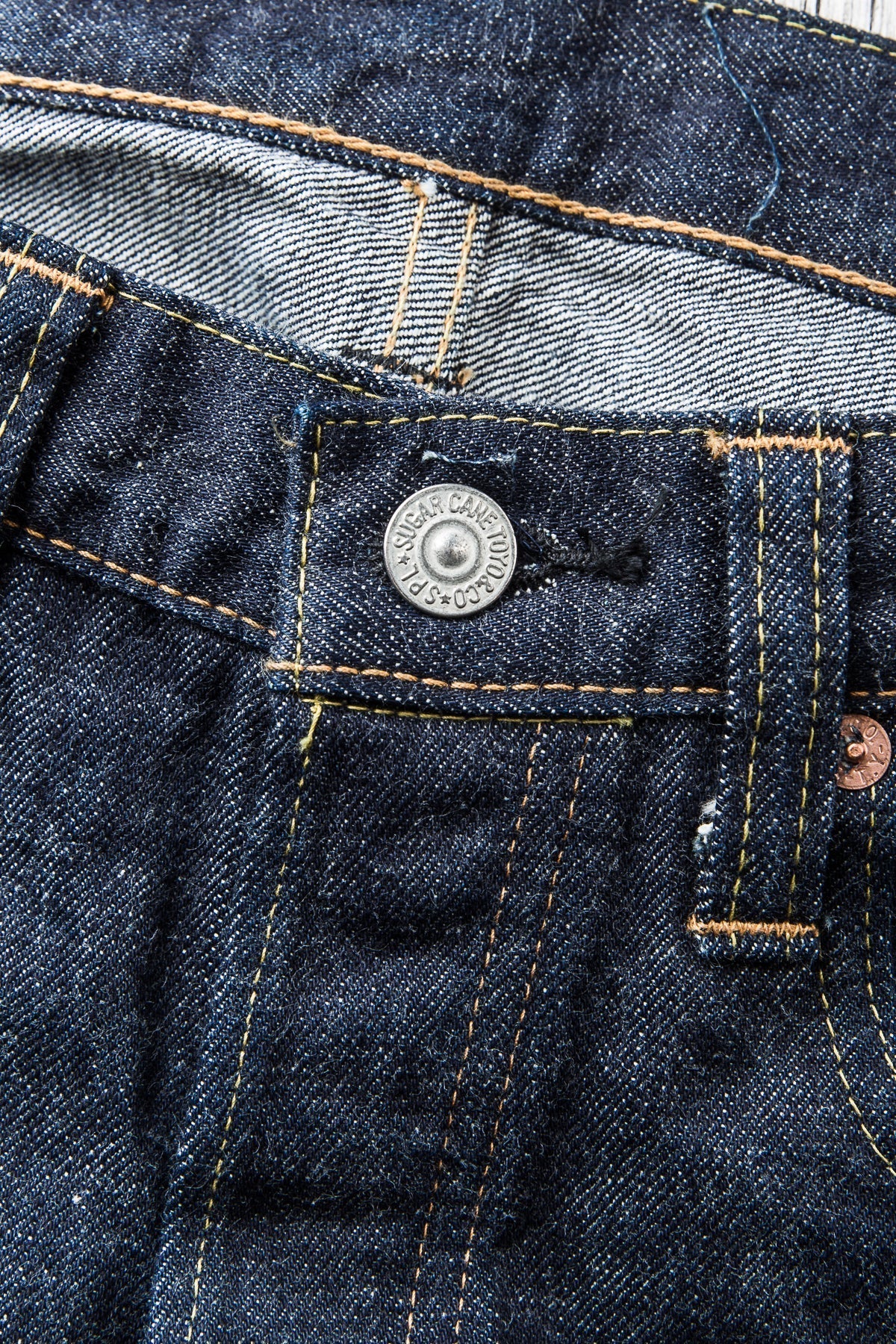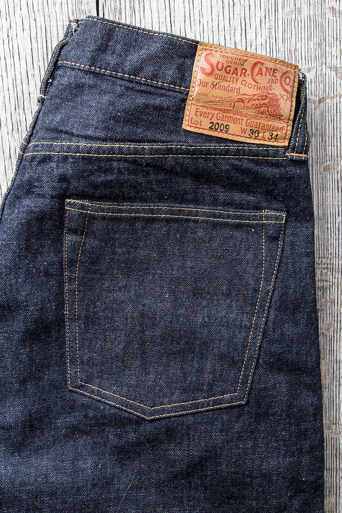 This fit is called 2009 and it's Sugar Cane's way of creating a pair of contemporary jeans inspired by the history of denim. It's got a low waist and a straight but slim leg. The width is right between 1947 and 2014. A perfect fit if you're looking for a timeless yet modern silhouette. Vintage details such as button fly and hidden rivets adds to the vintage vibes on this beautiful fit.